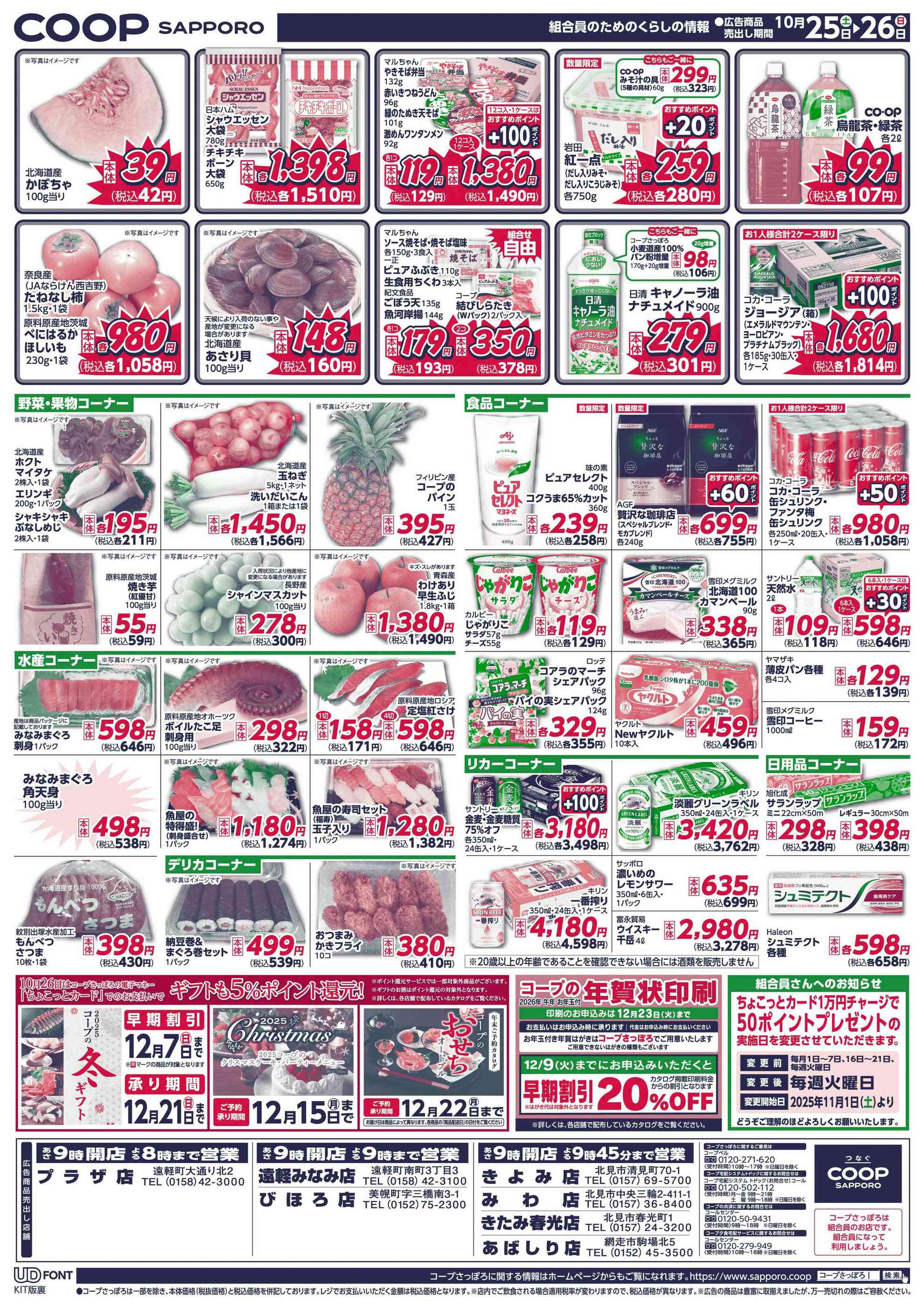 コープさっぽろあばしり店今週のチラシ(2025年10月20日〜10月26日)