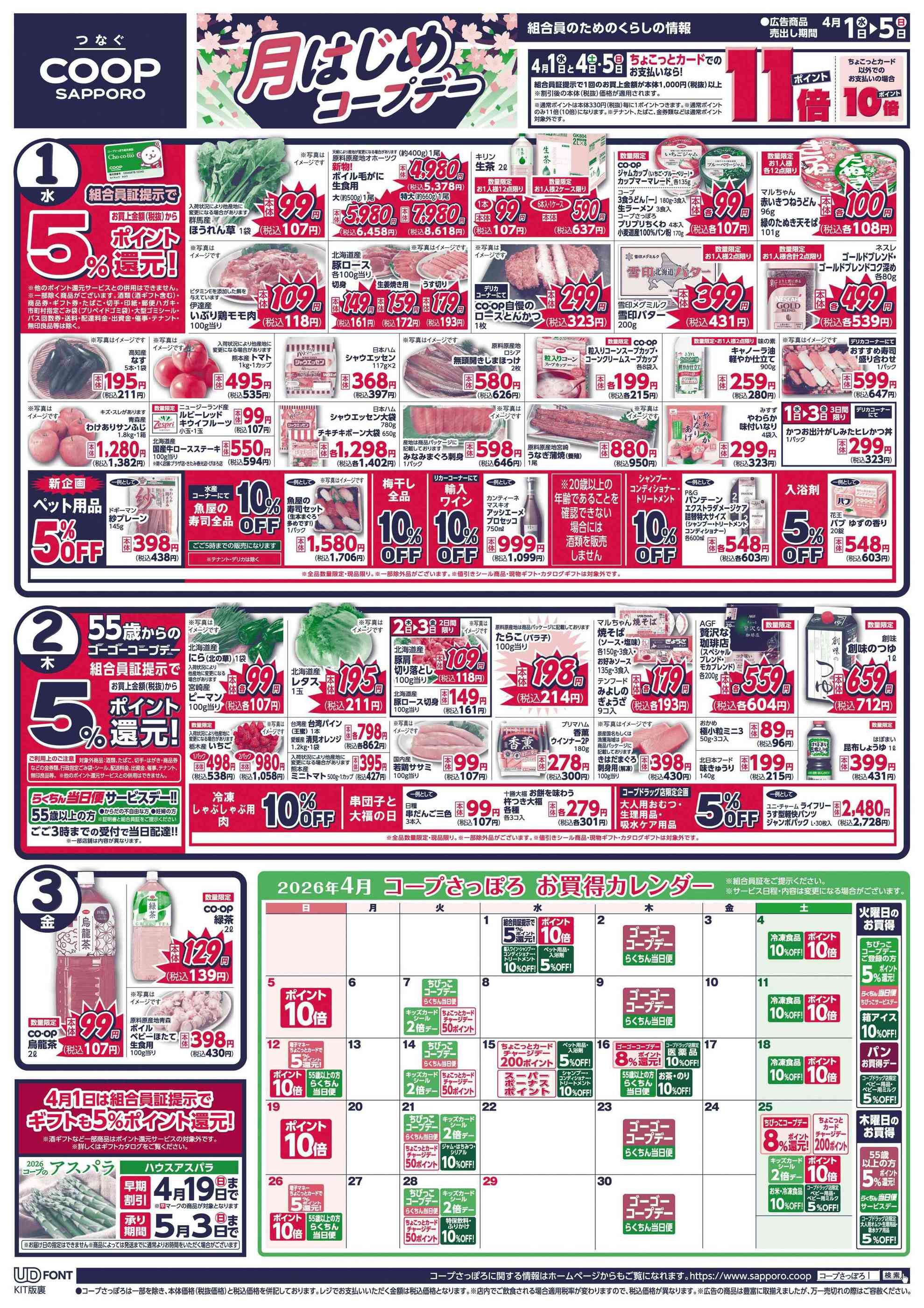 コープさっぽろびほろ店今週のチラシ(2026年3月30日〜4月5日)