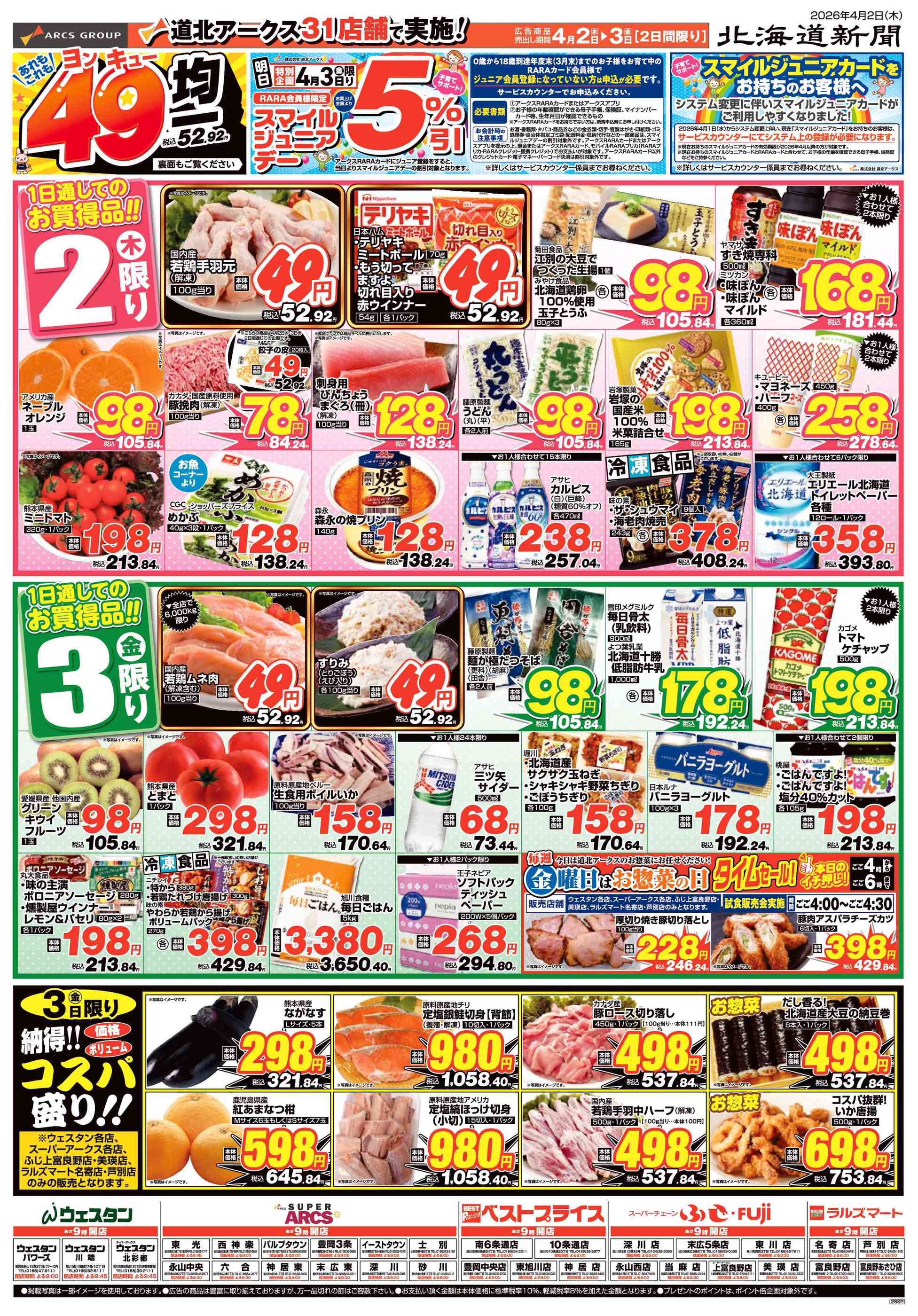 ラルズマート富良野店今週のチラシ(2026年3月30日〜4月5日)
