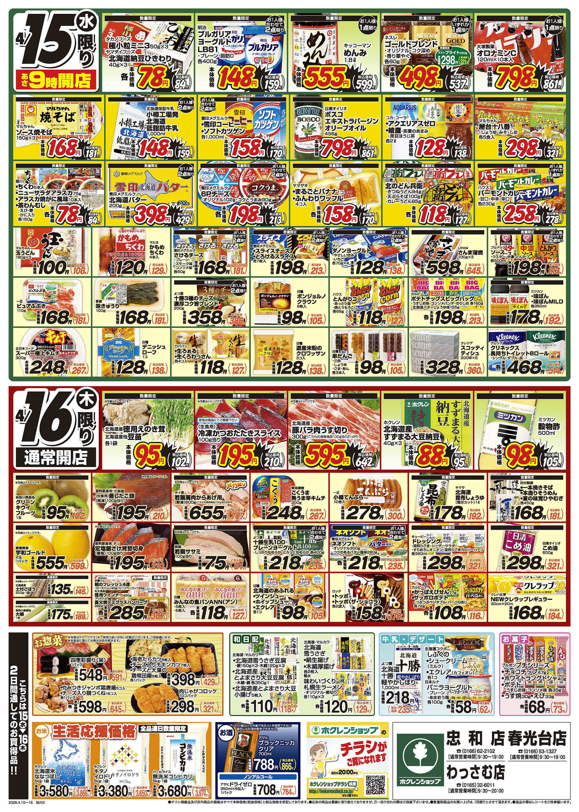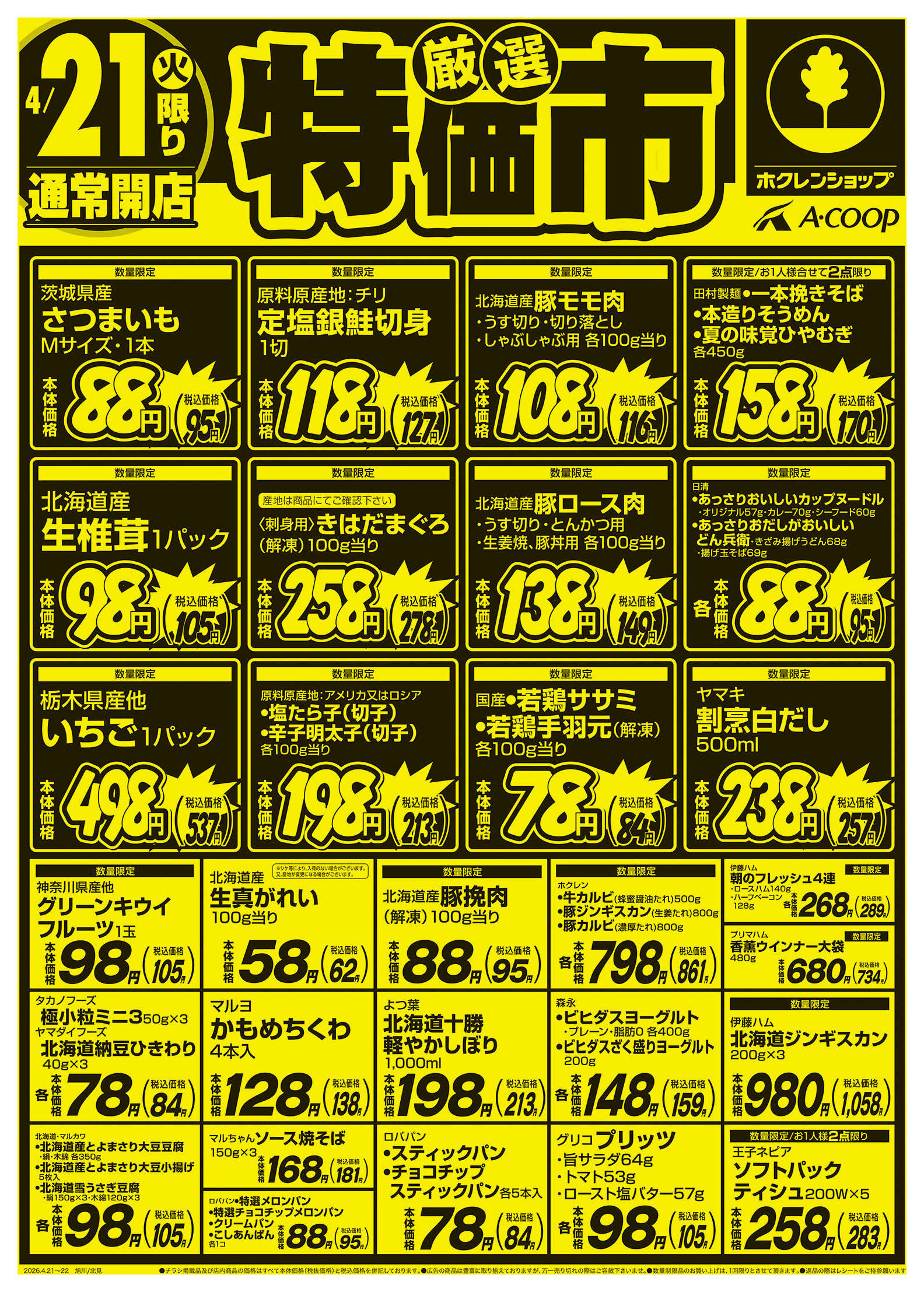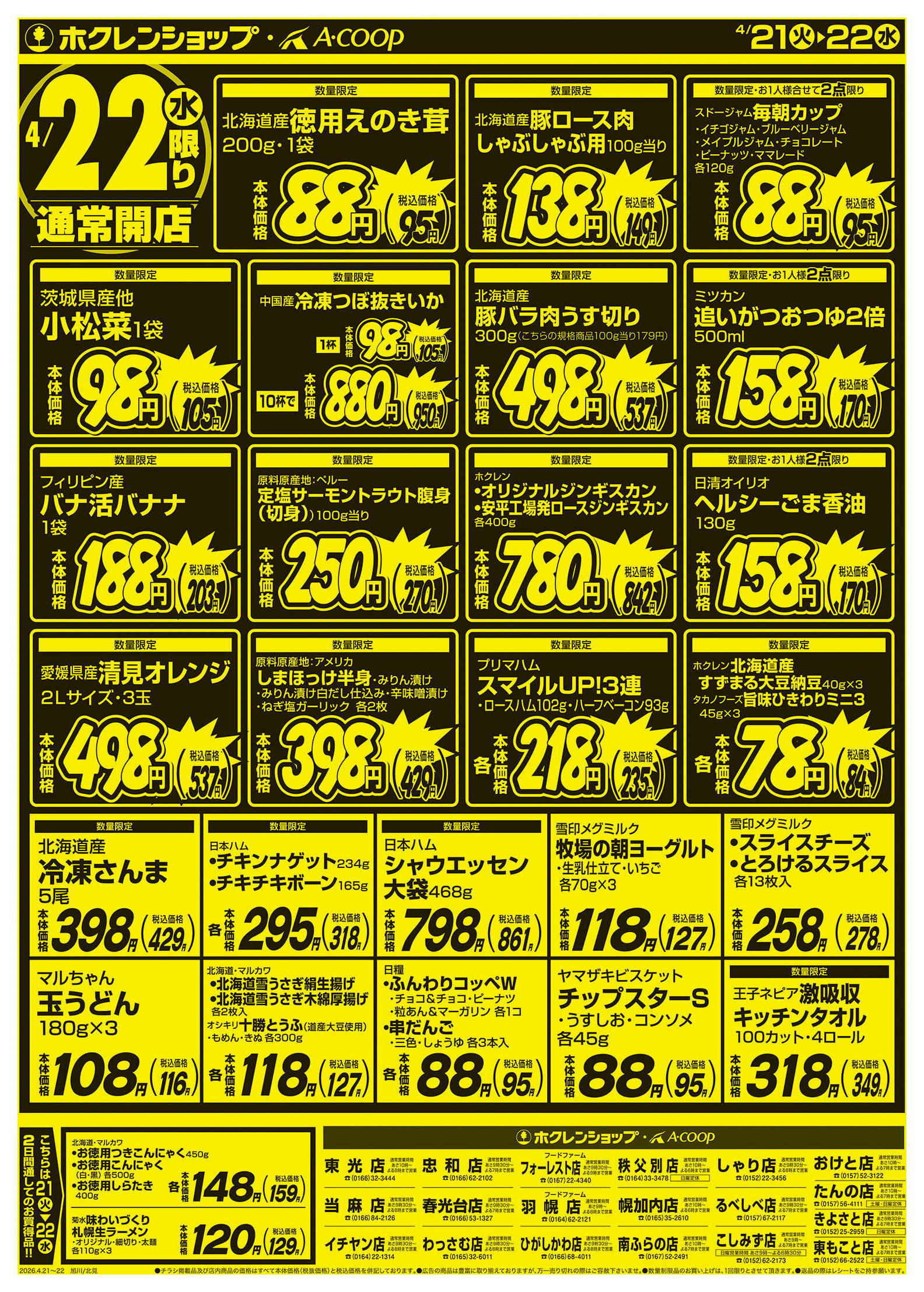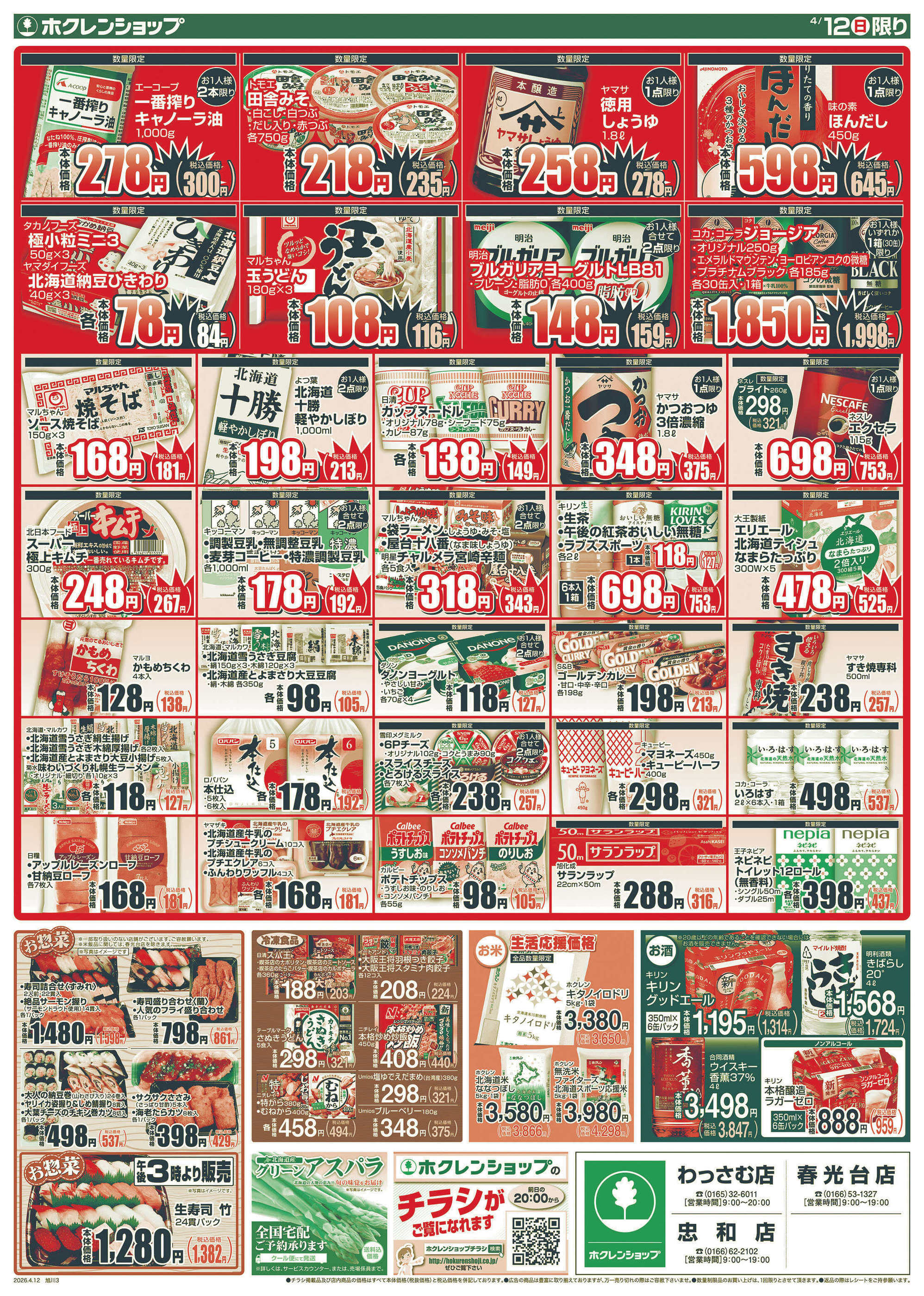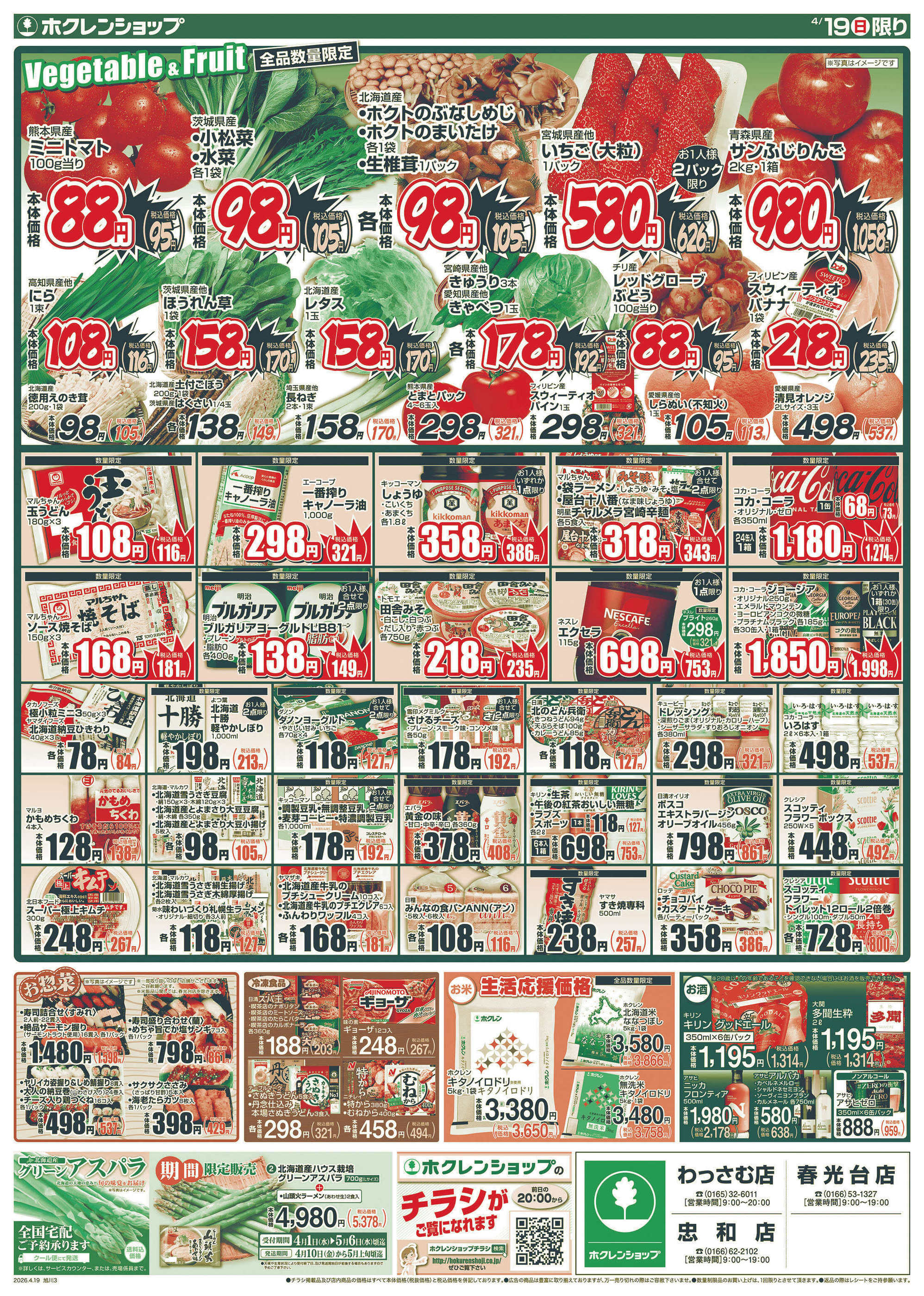 ホクレンショップわっさむ店今週のチラシ(2026年4月20日〜4月26日)