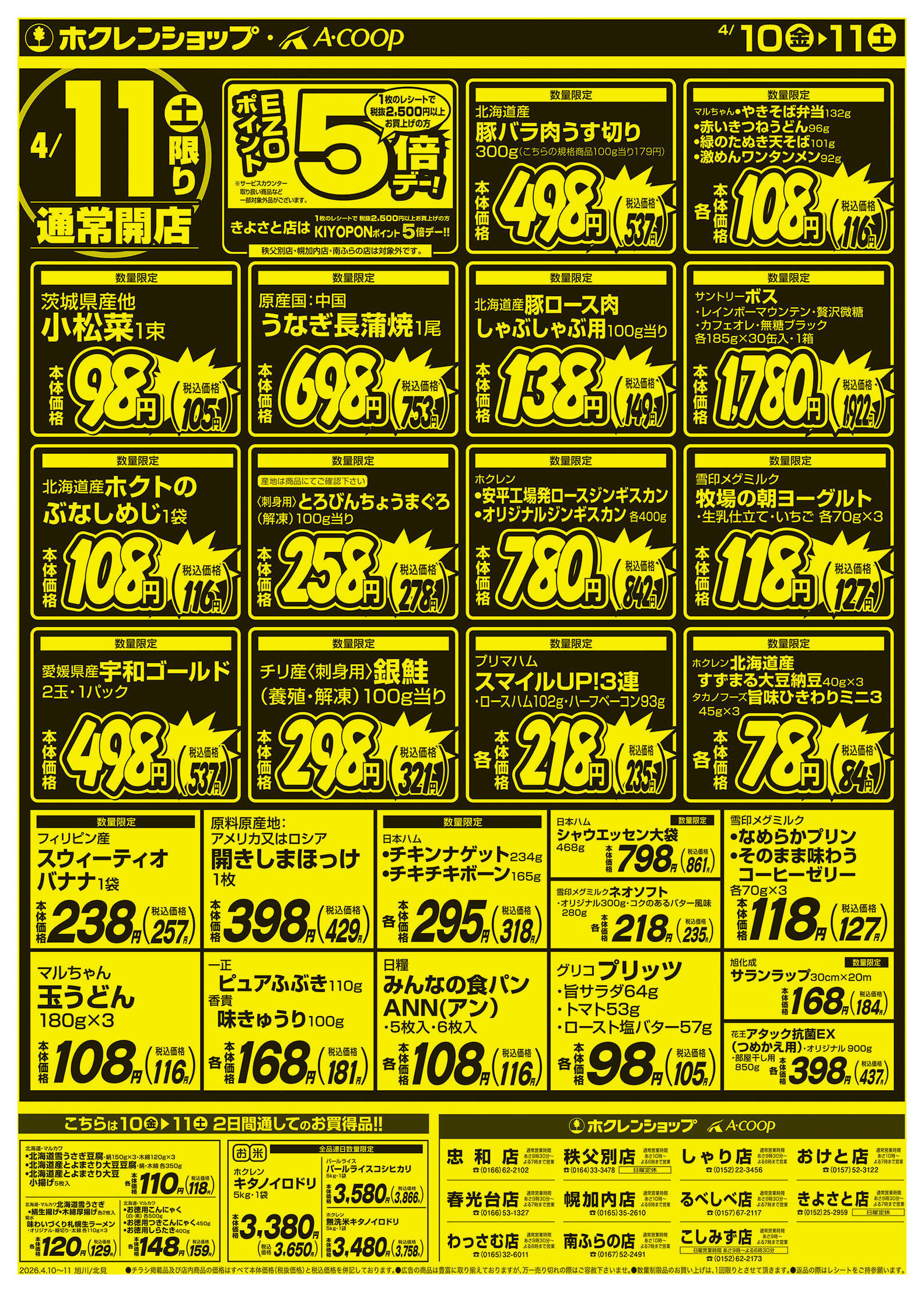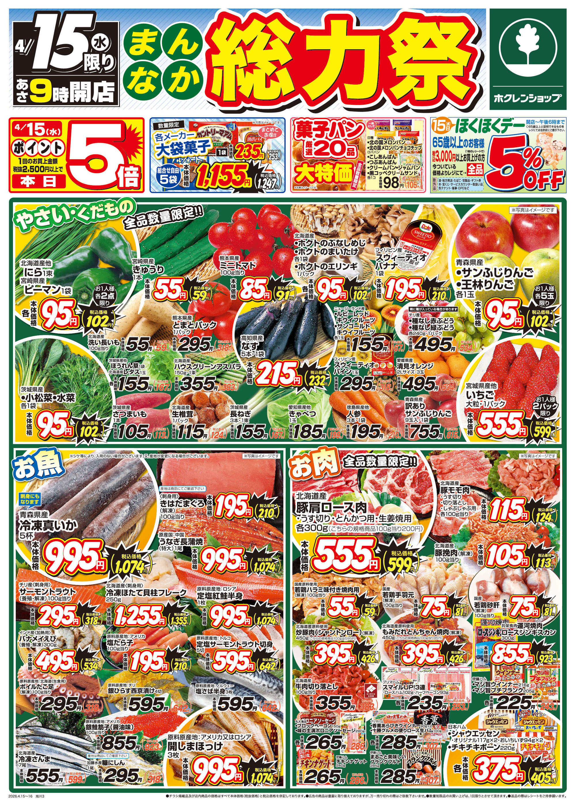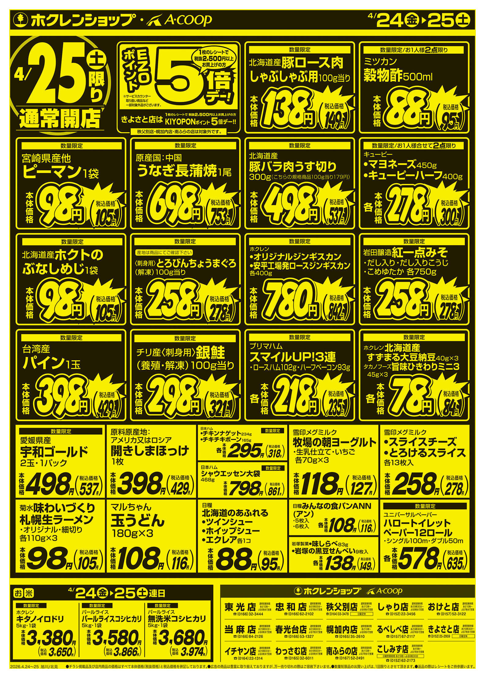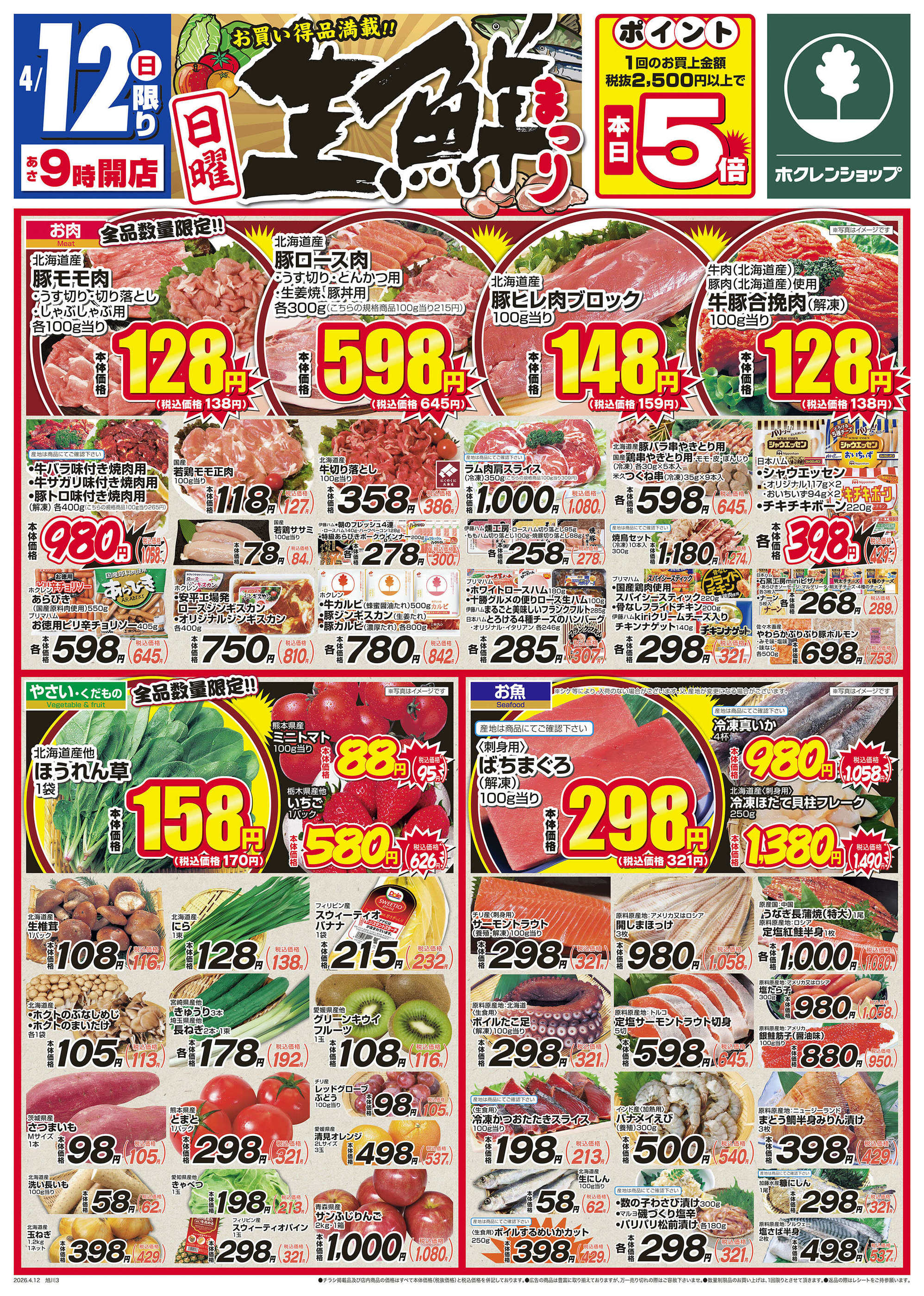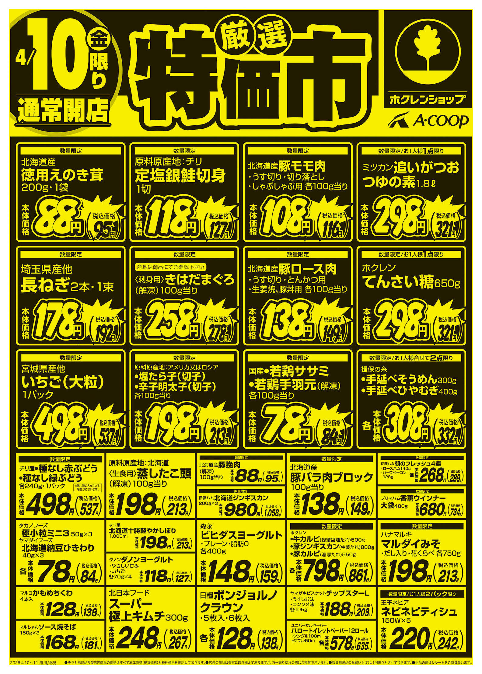 ホクレンショップわっさむ店今週のチラシ(2026年4月20日〜4月26日)