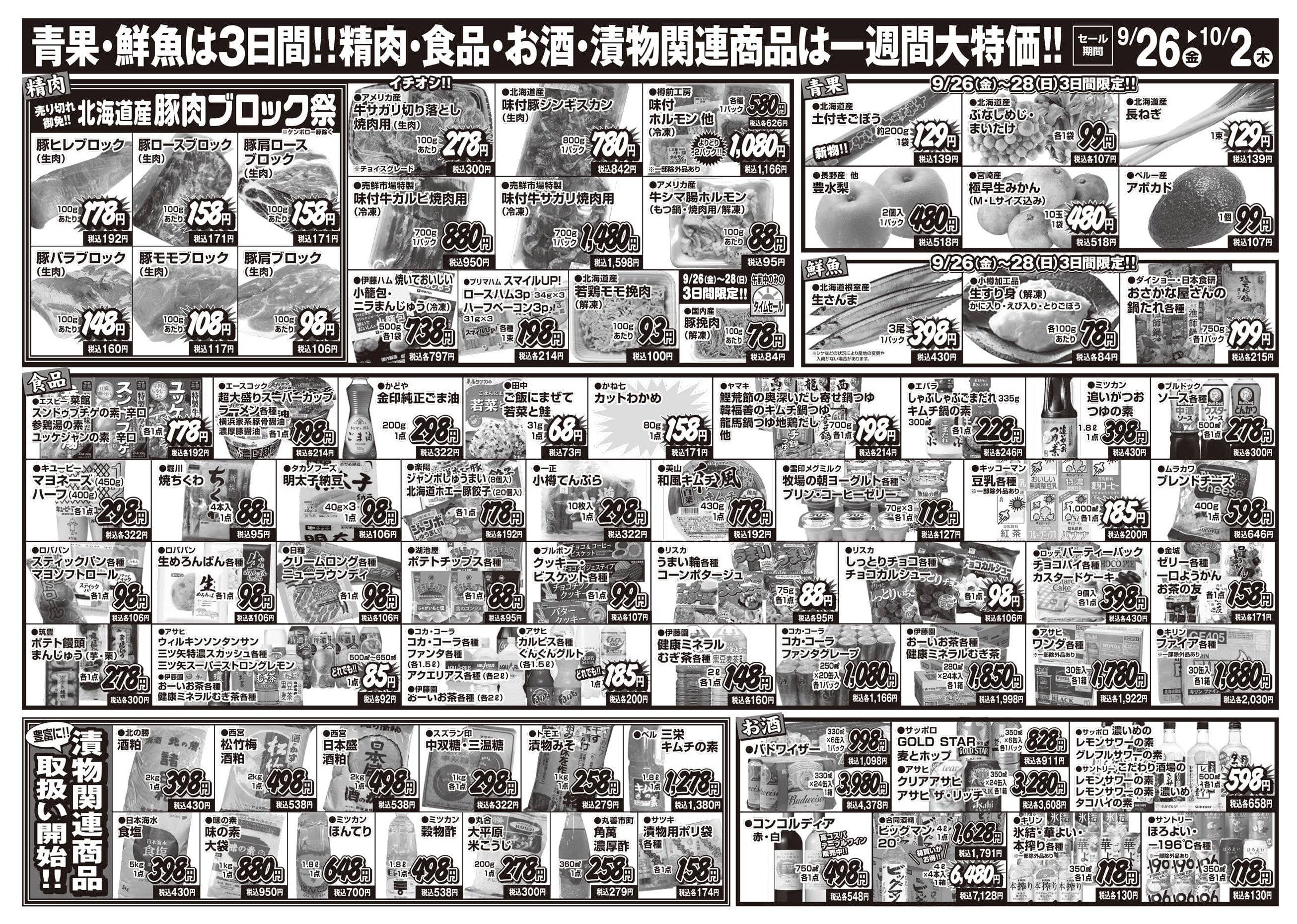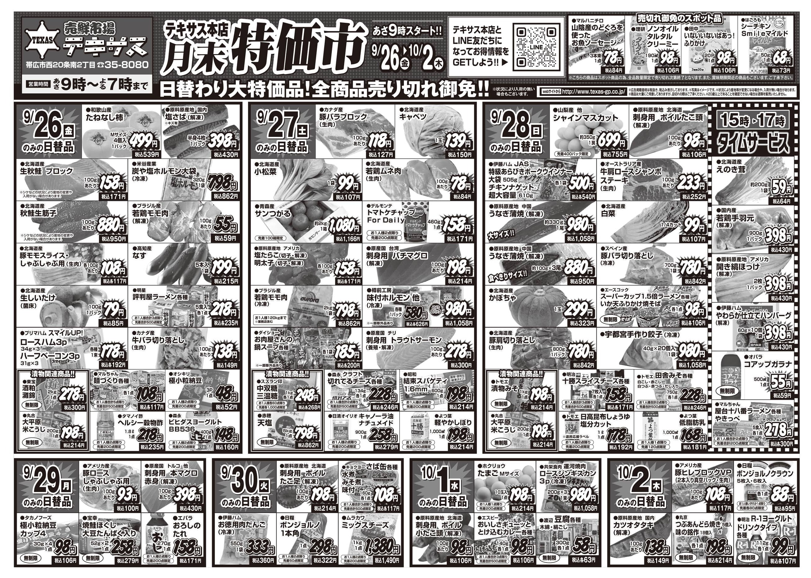 売鮮市場テキサス本店今週のチラシ(2025年10月6日〜10月12日)