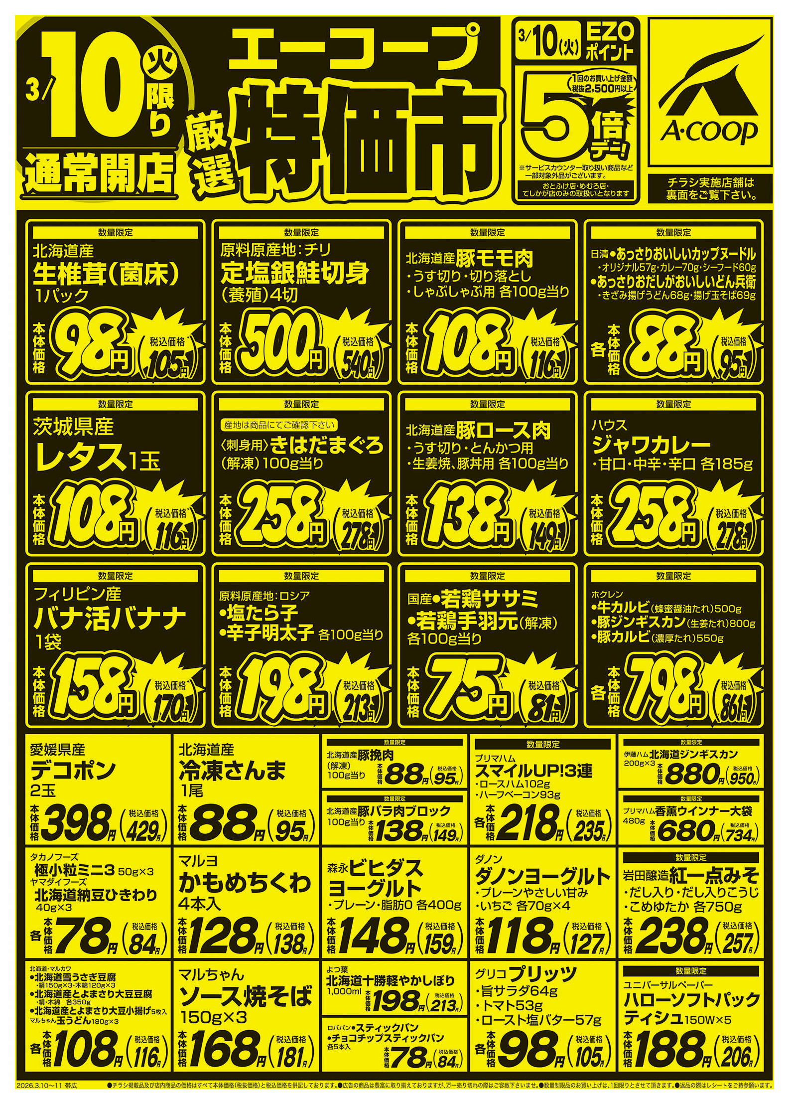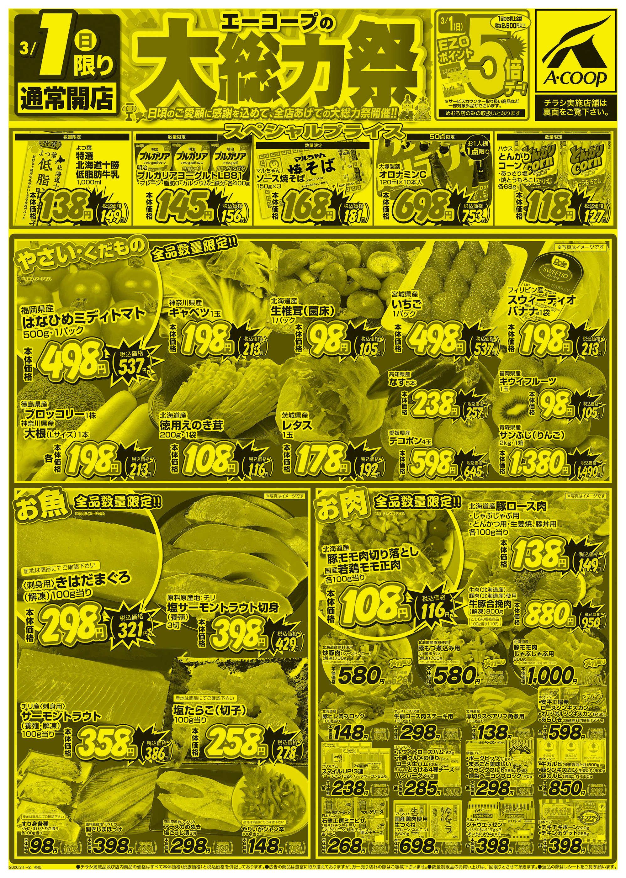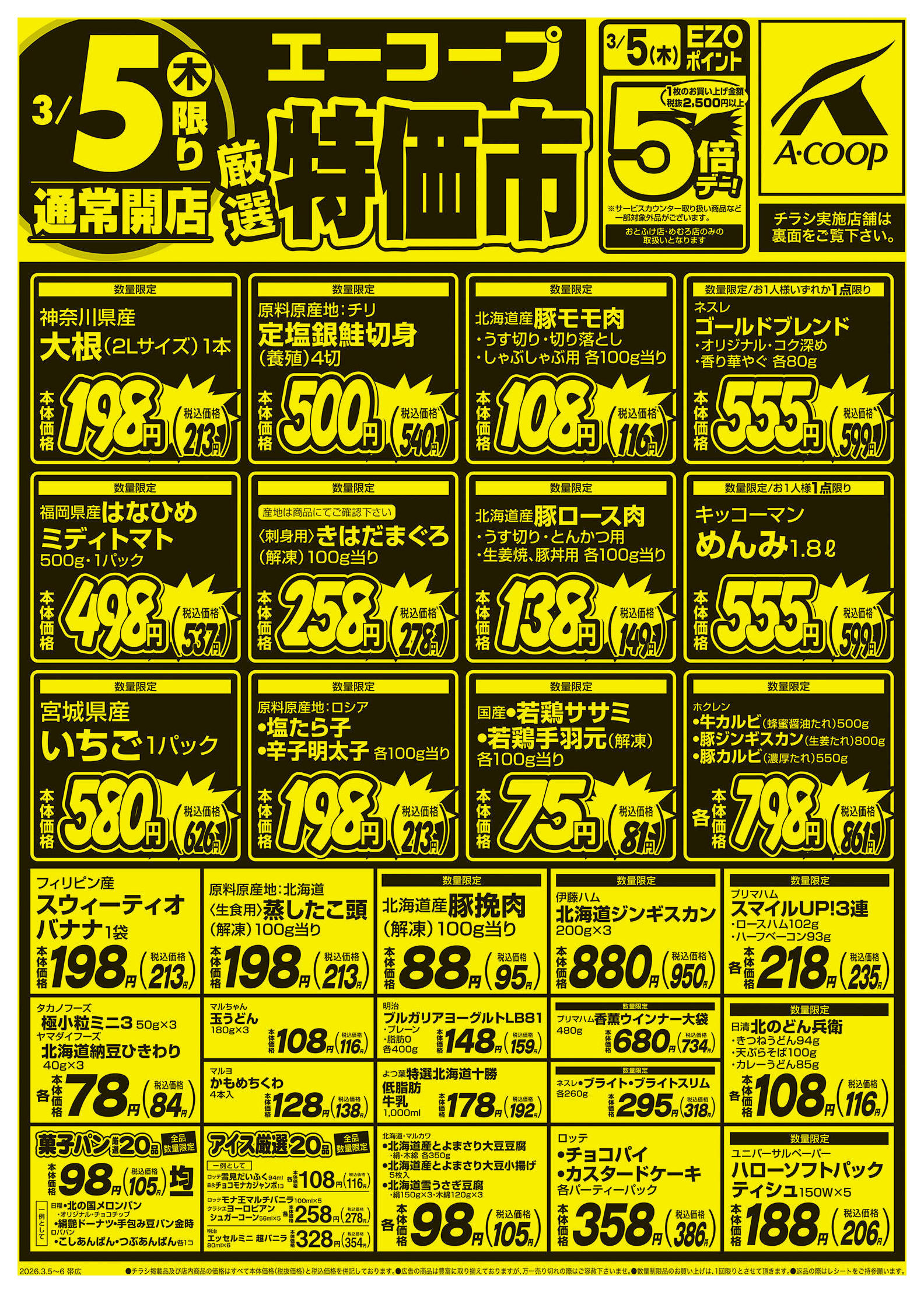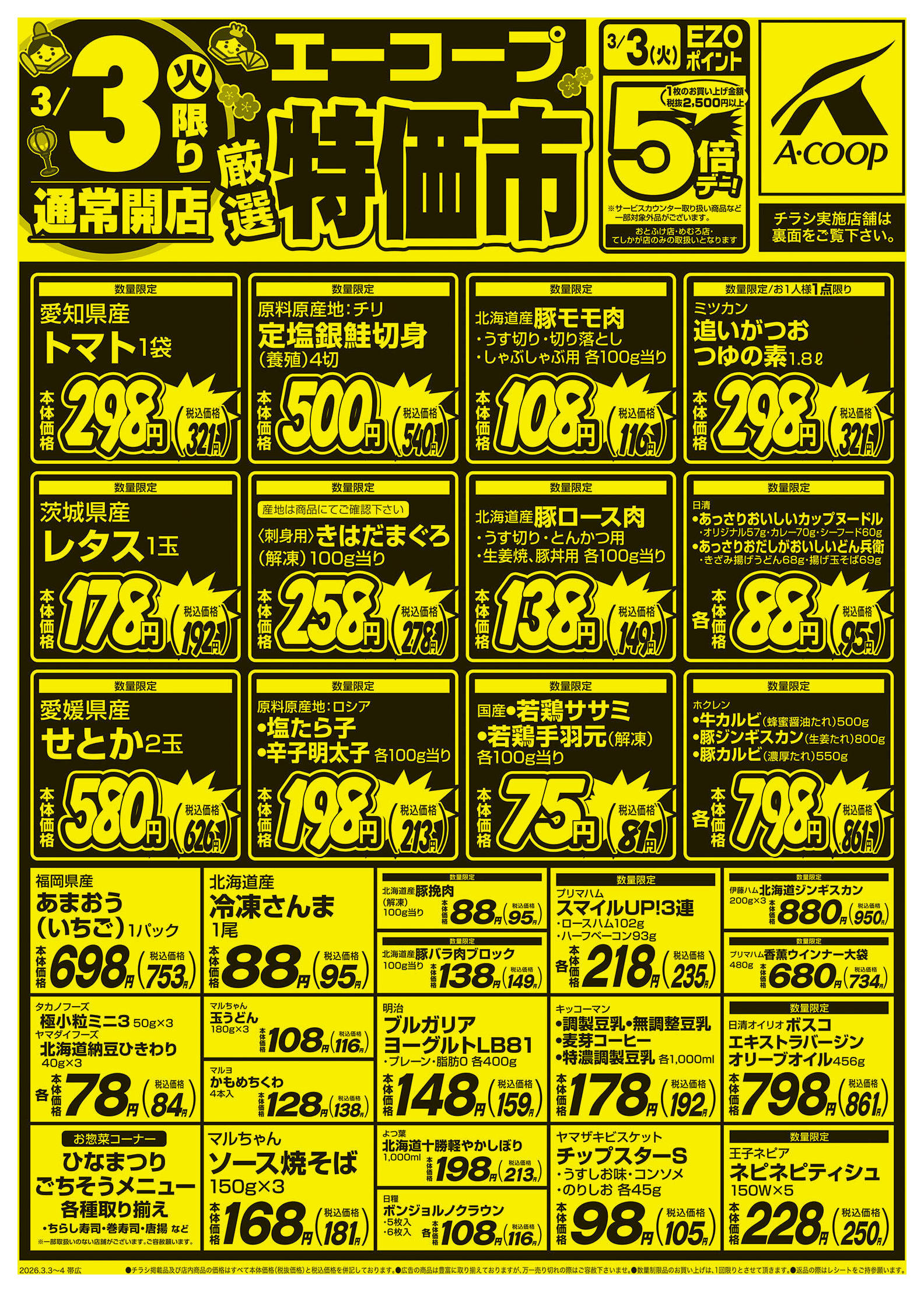 エーコープめむろ店今週のチラシ(2026年3月9日〜3月15日)