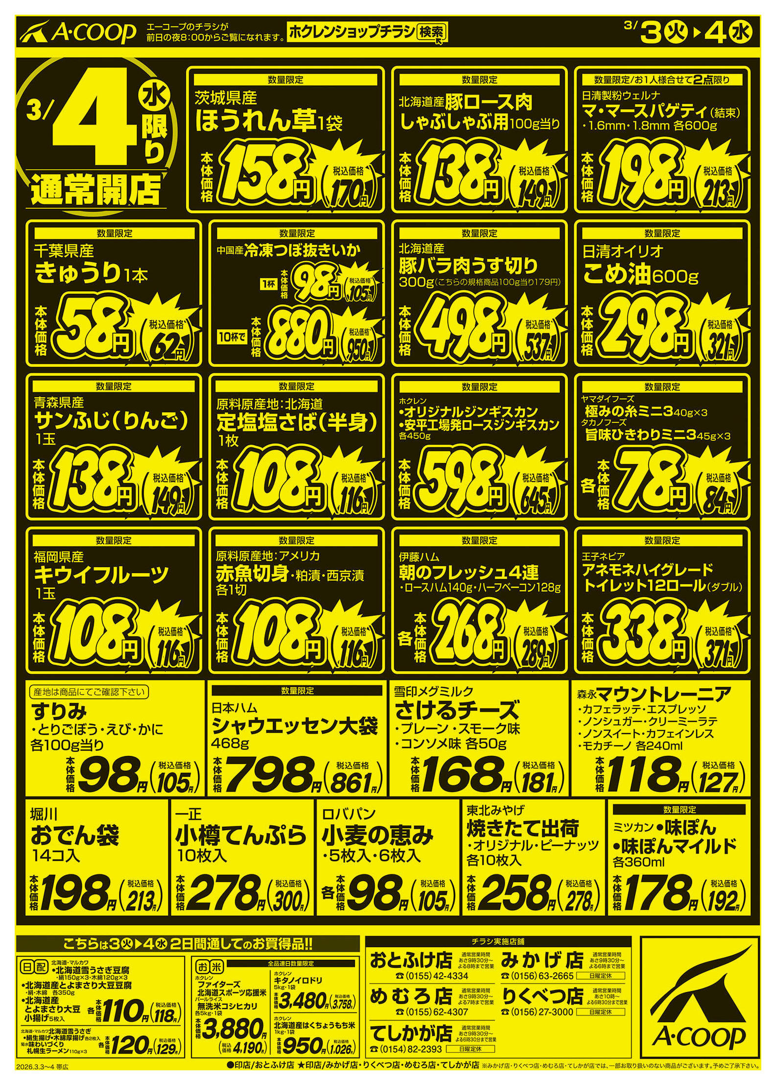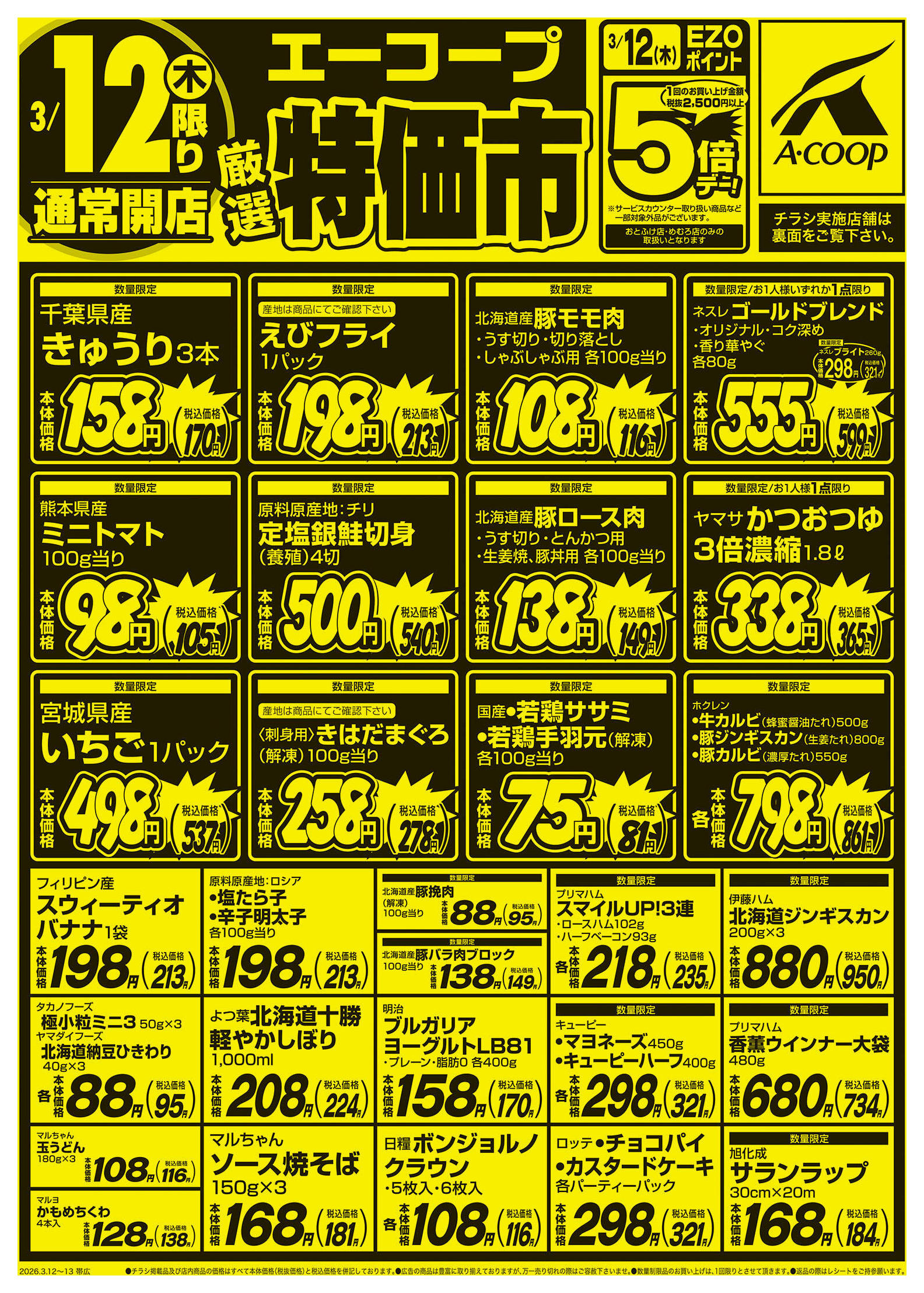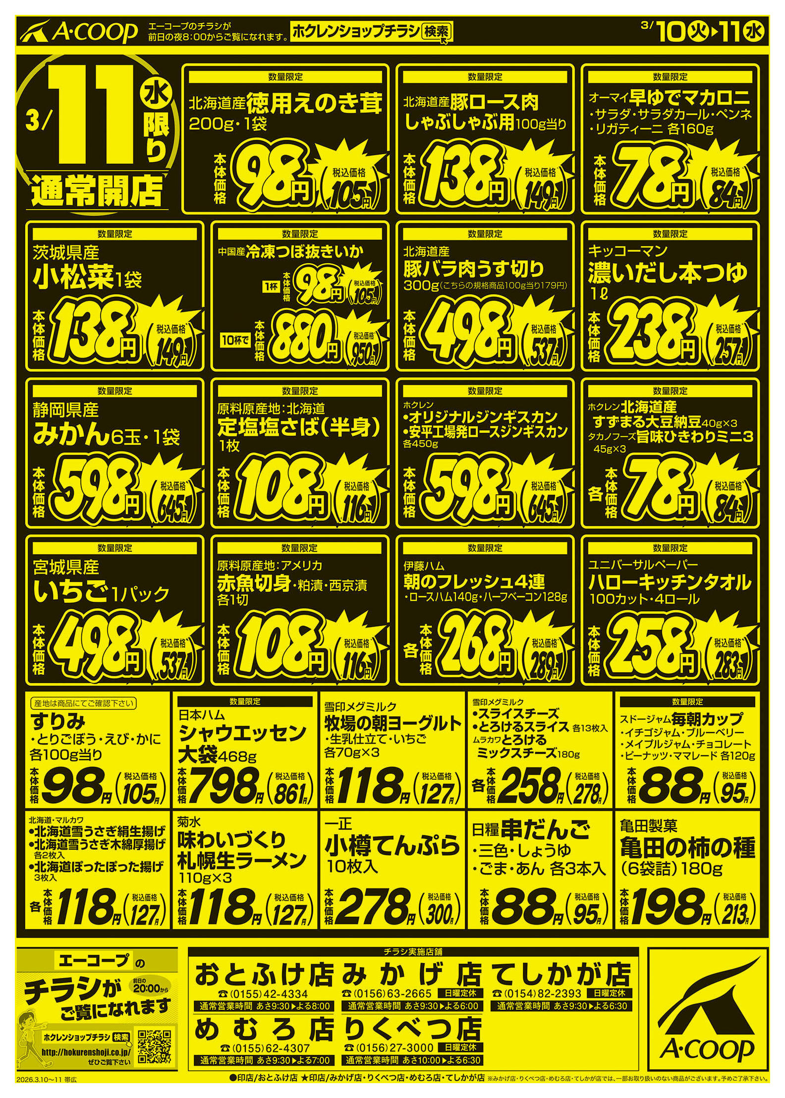 エーコープめむろ店今週のチラシ(2026年3月9日〜3月15日)