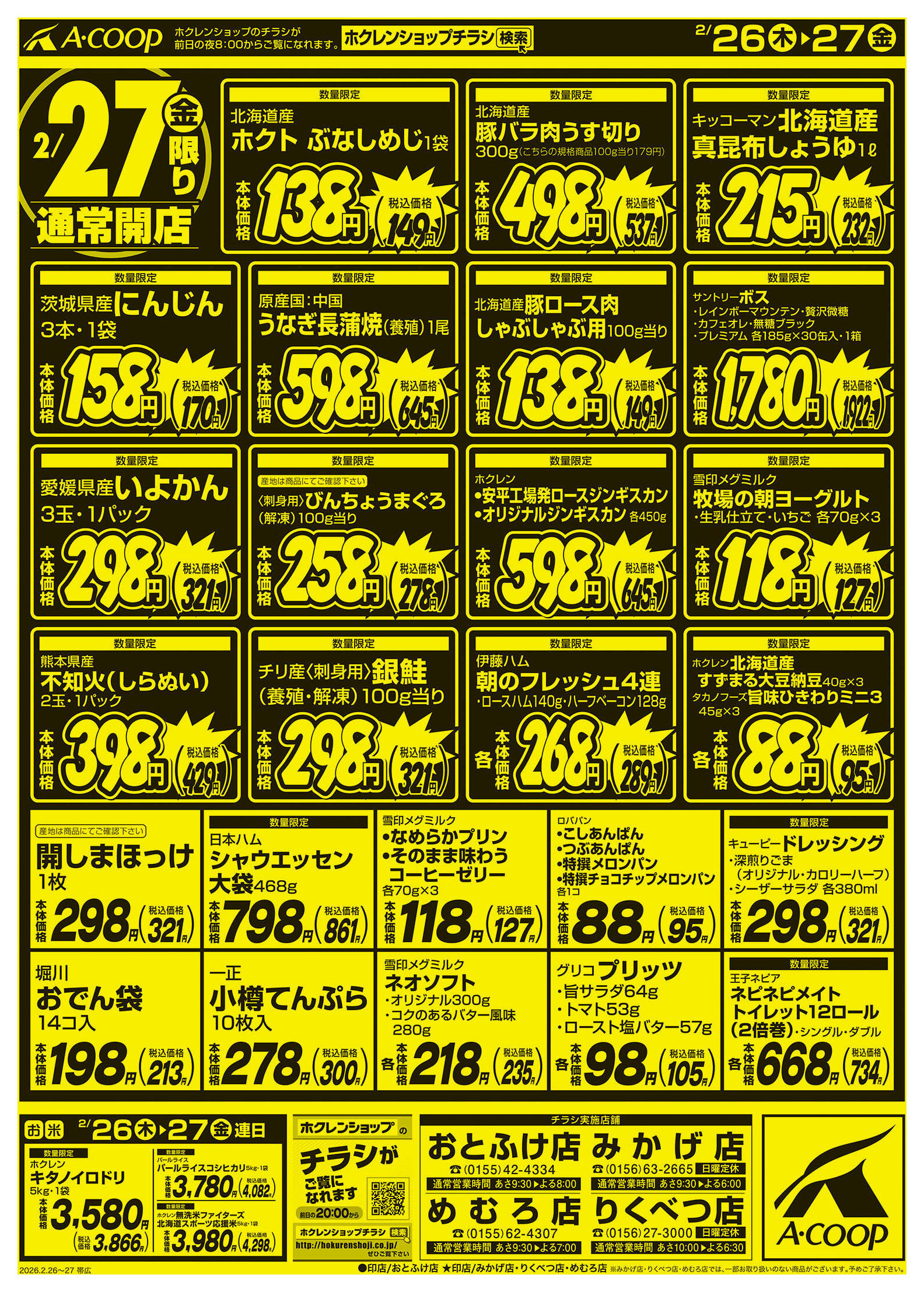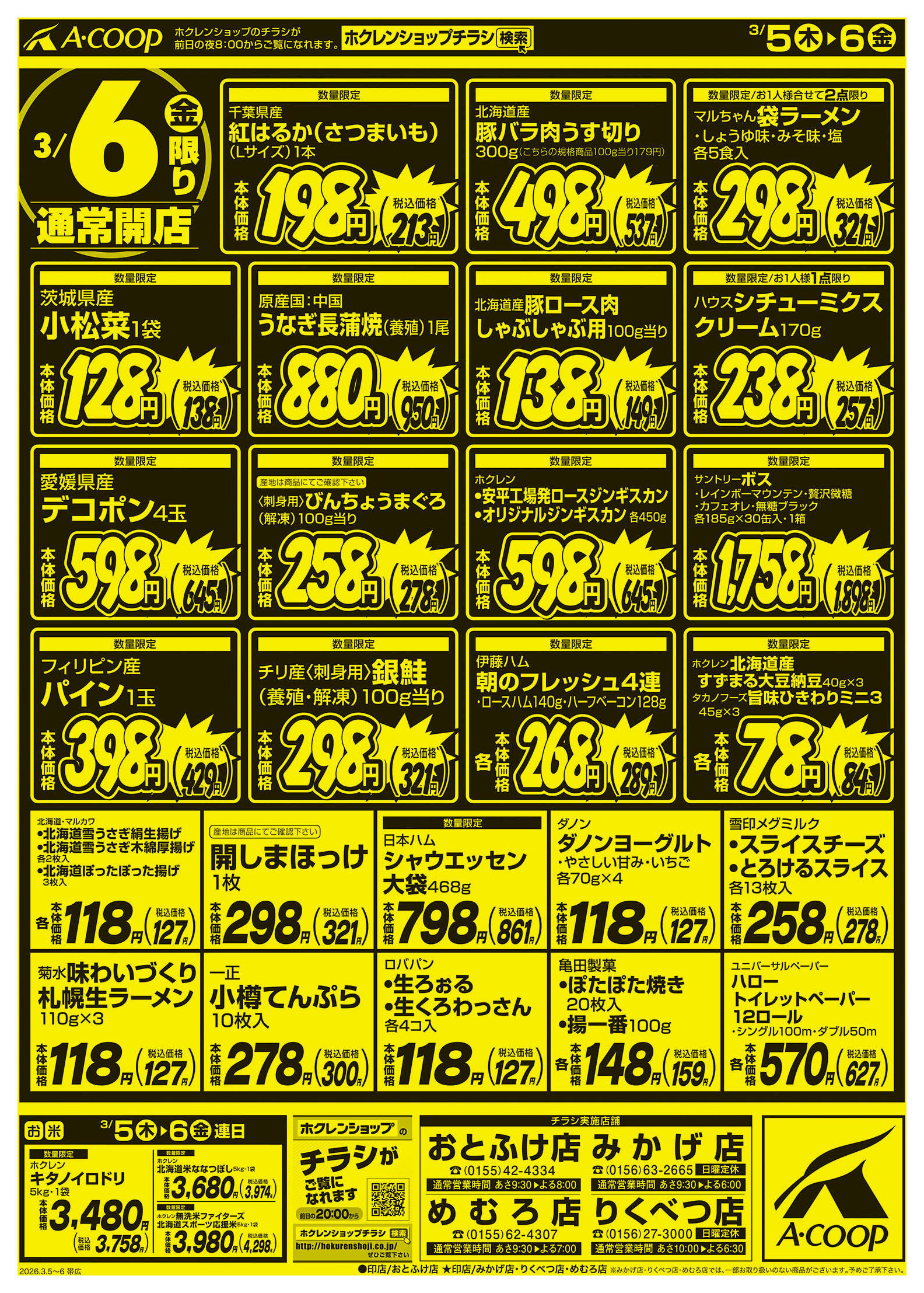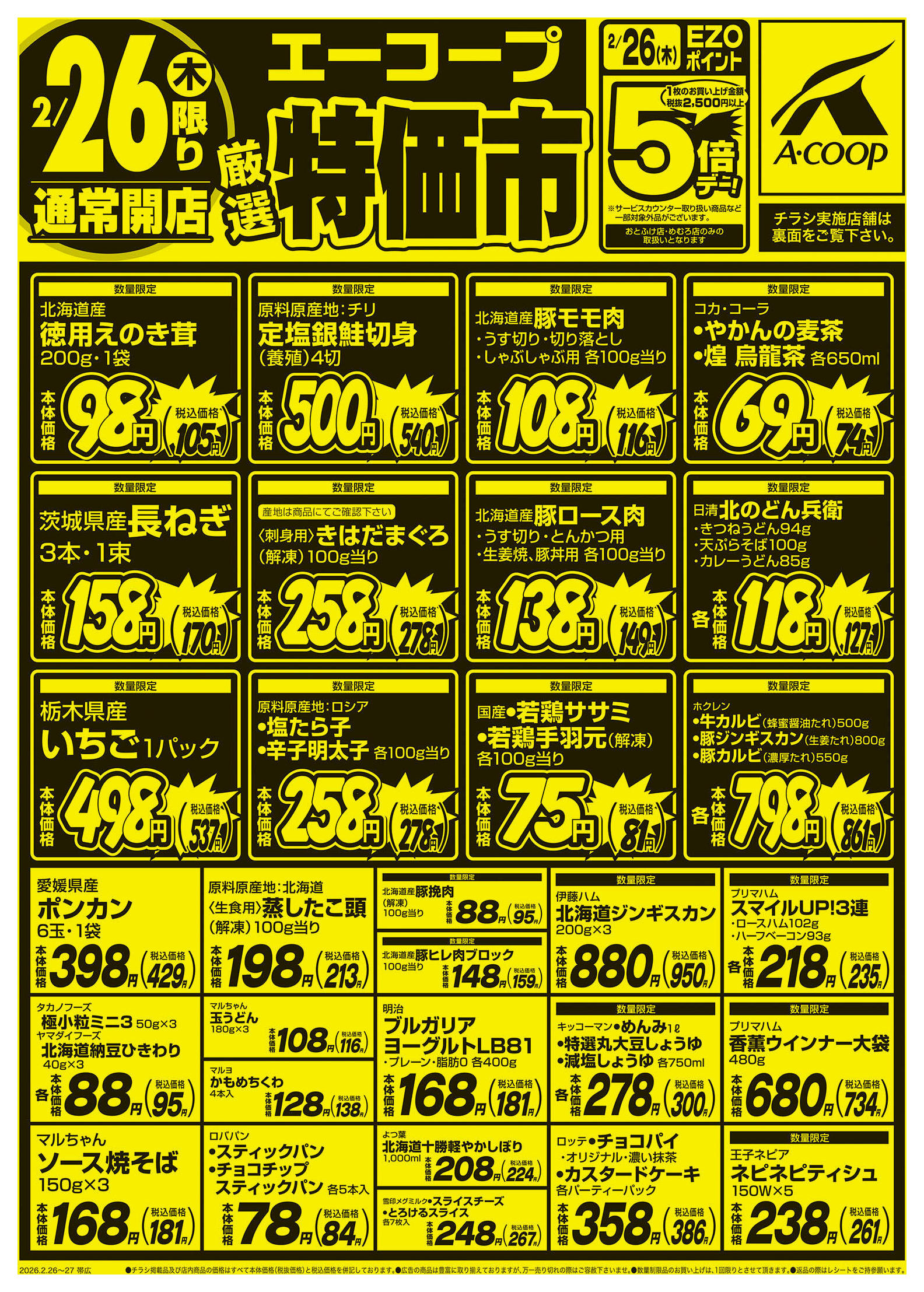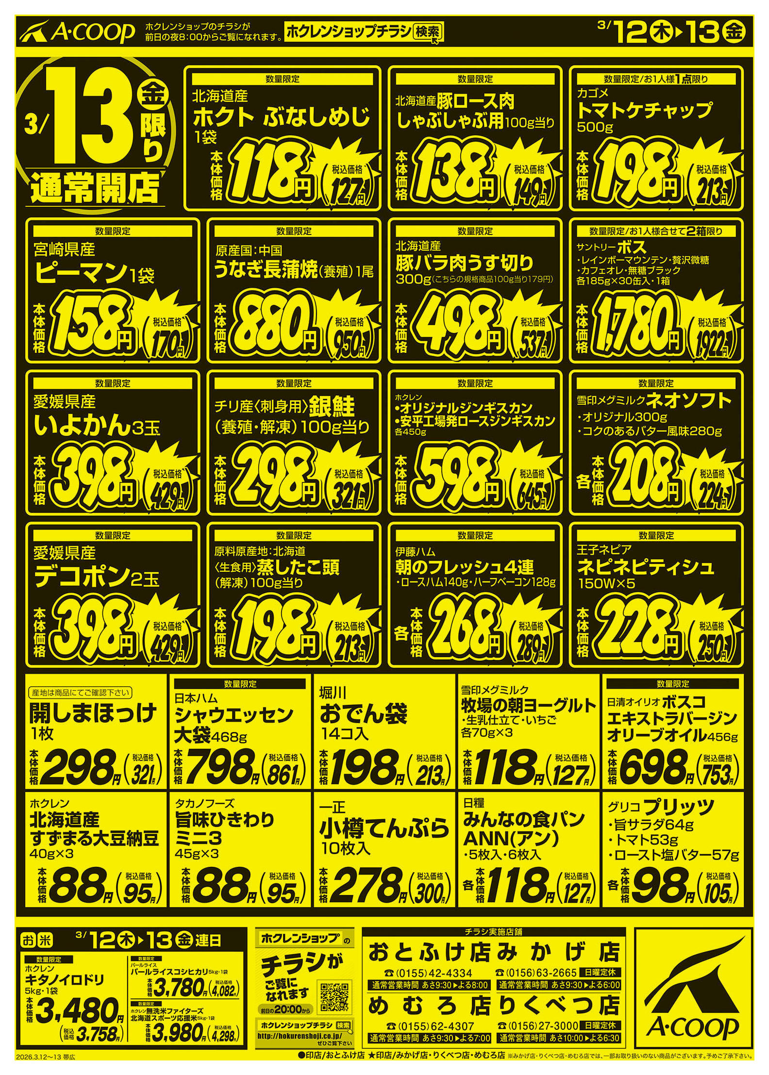 エーコープめむろ店今週のチラシ(2026年3月9日〜3月15日)