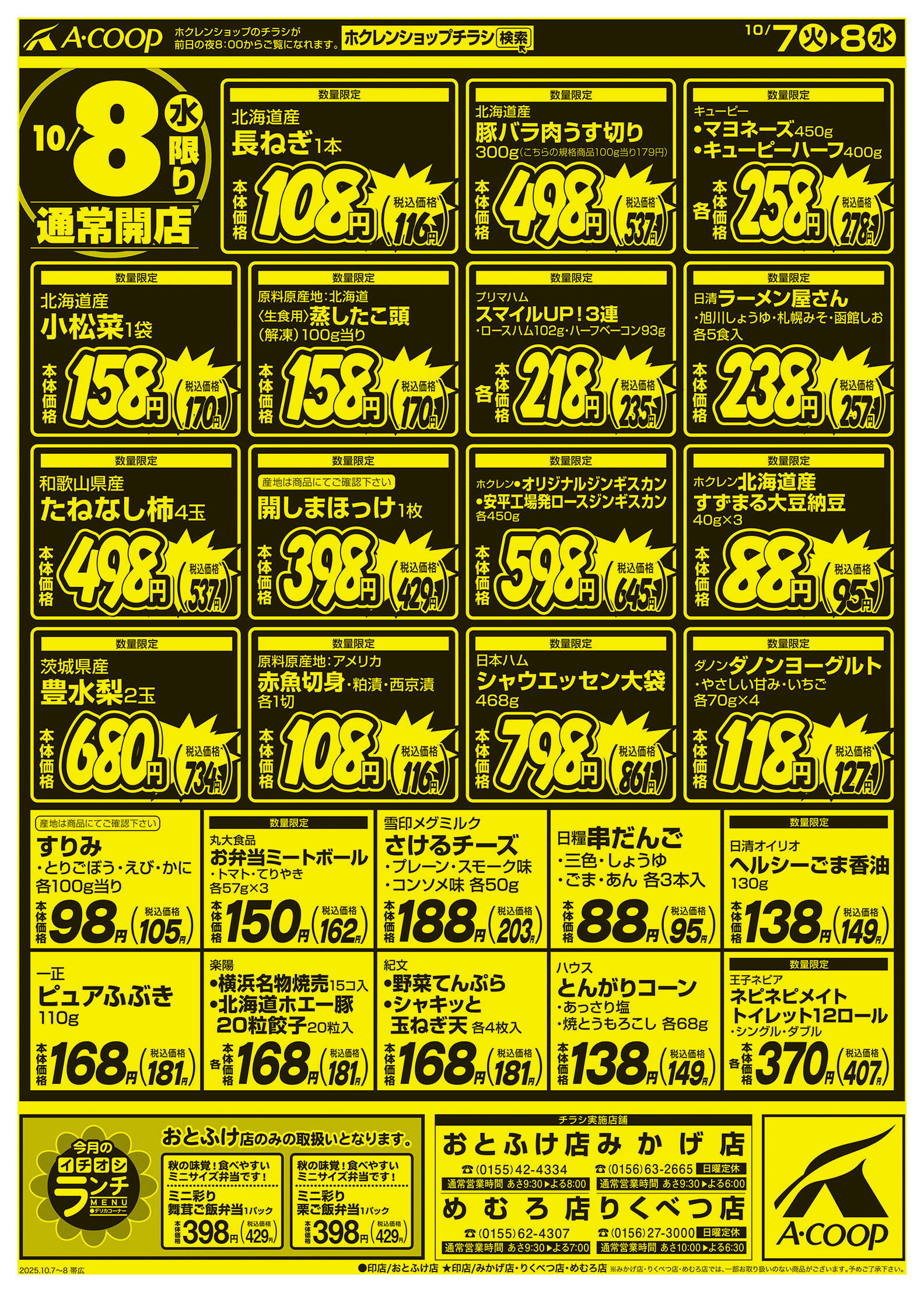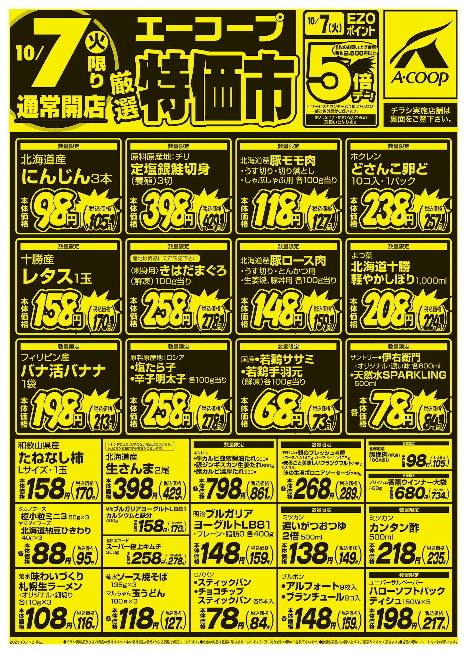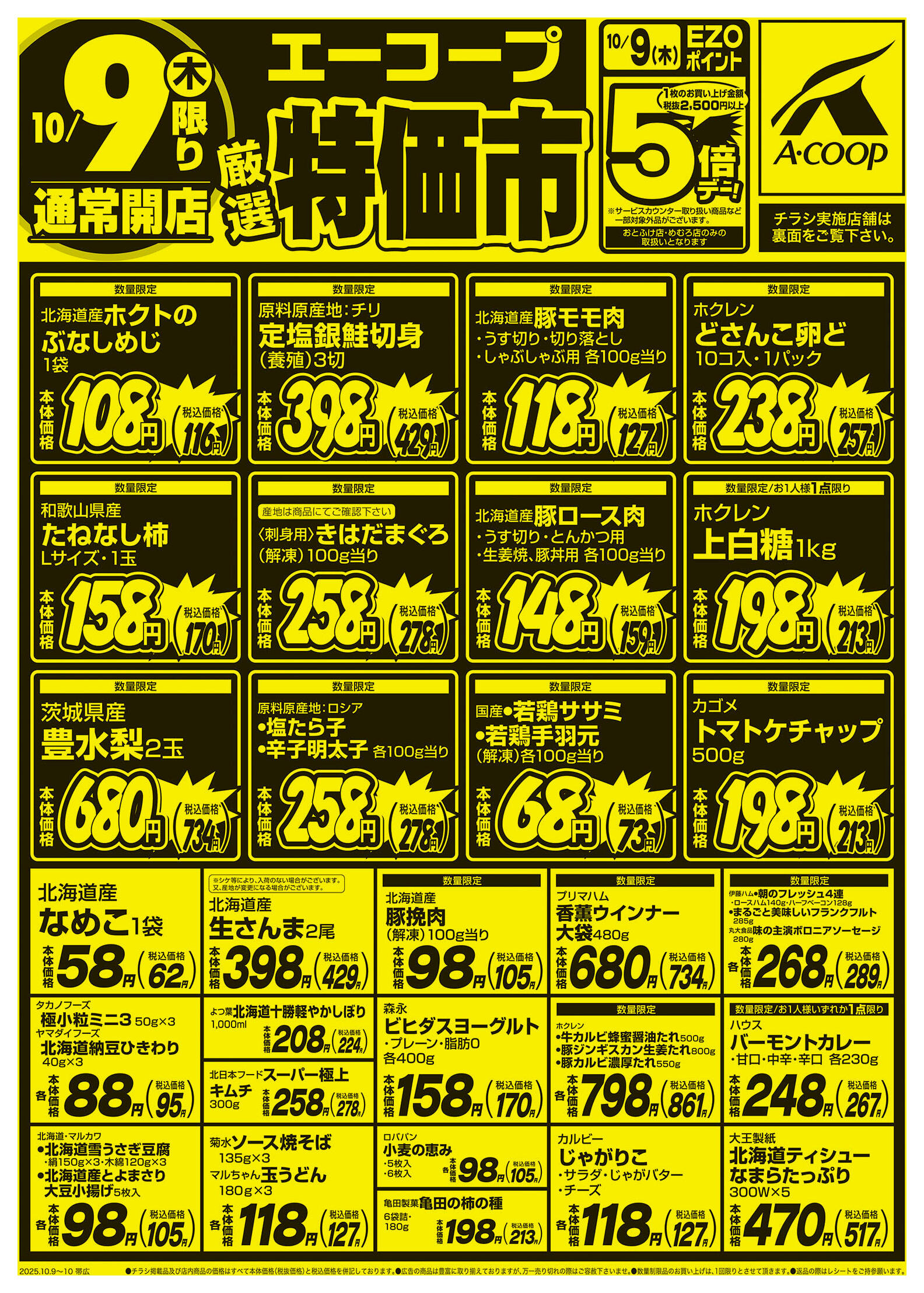エーコープりくべつ店今週のチラシ(2025年10月6日〜10月12日)