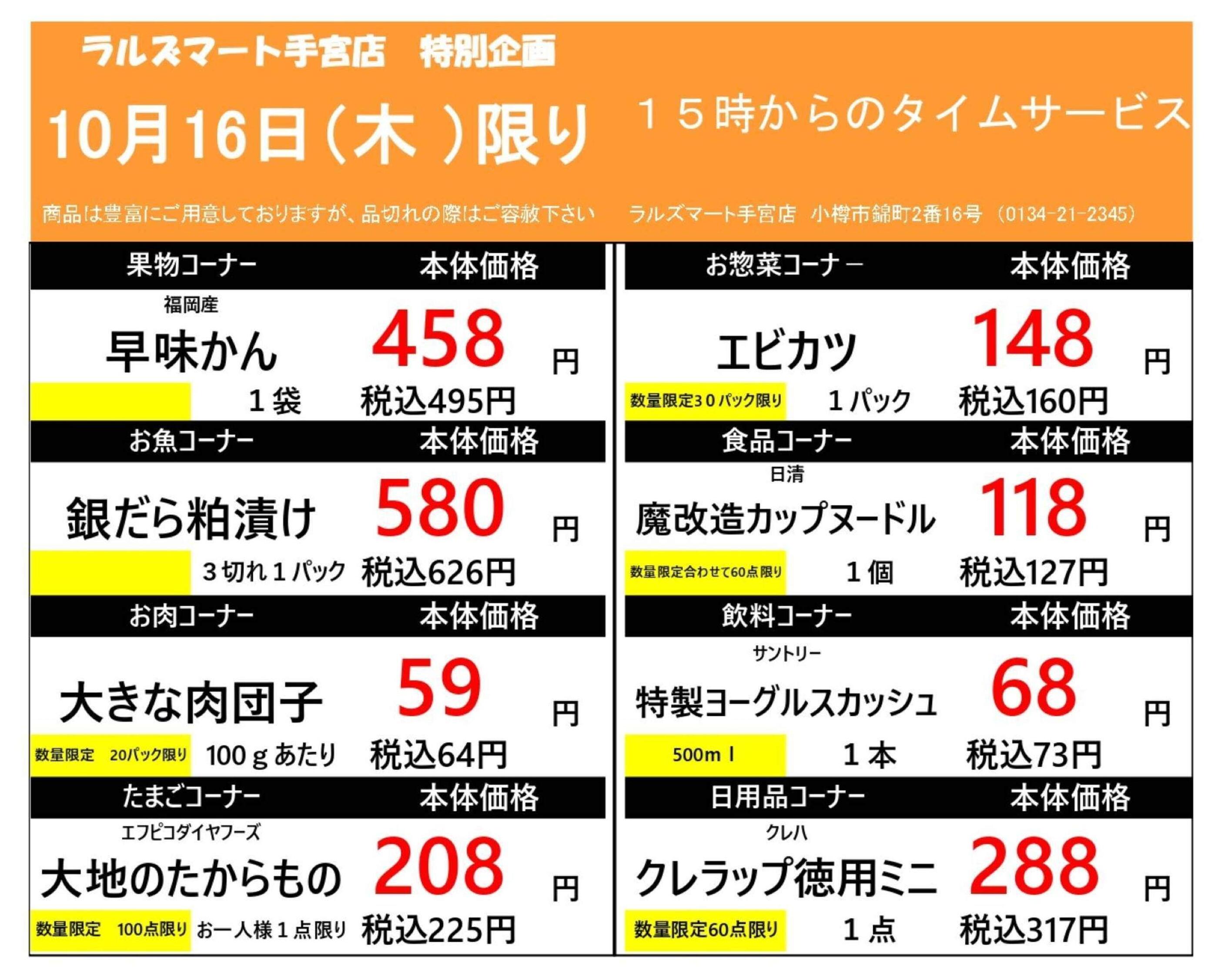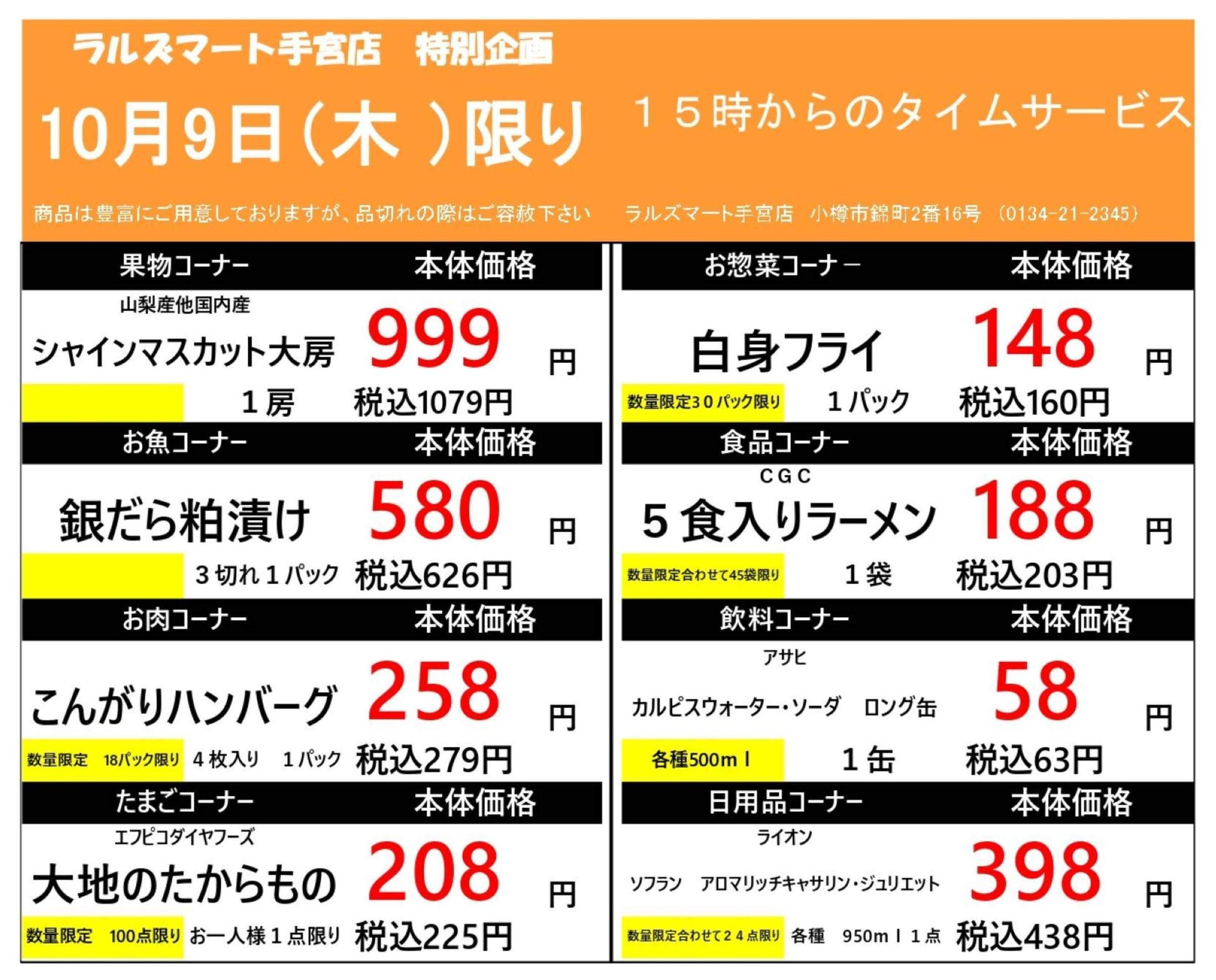 ラルズマート手宮店今週のチラシ(2025年10月13日〜10月19日)