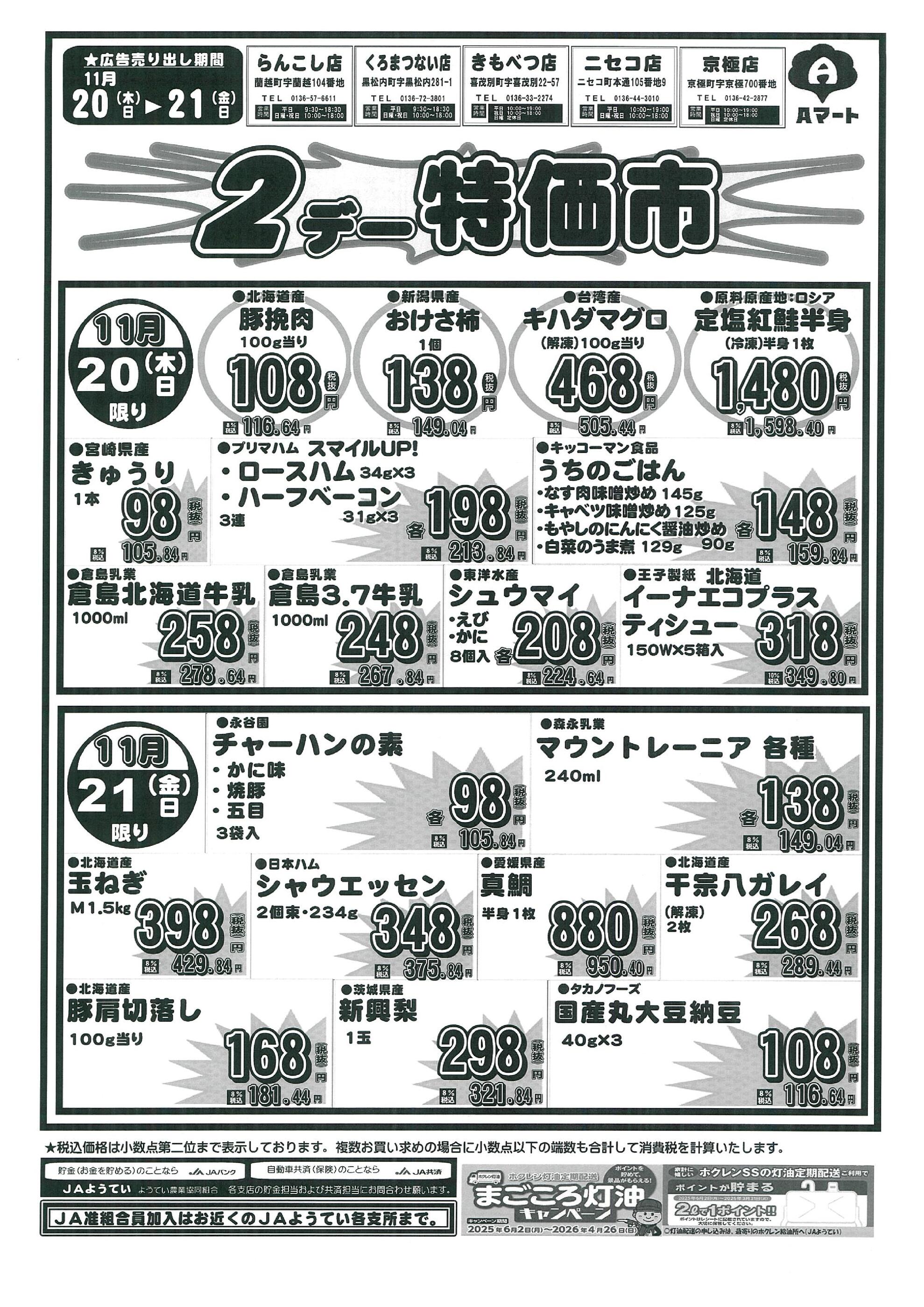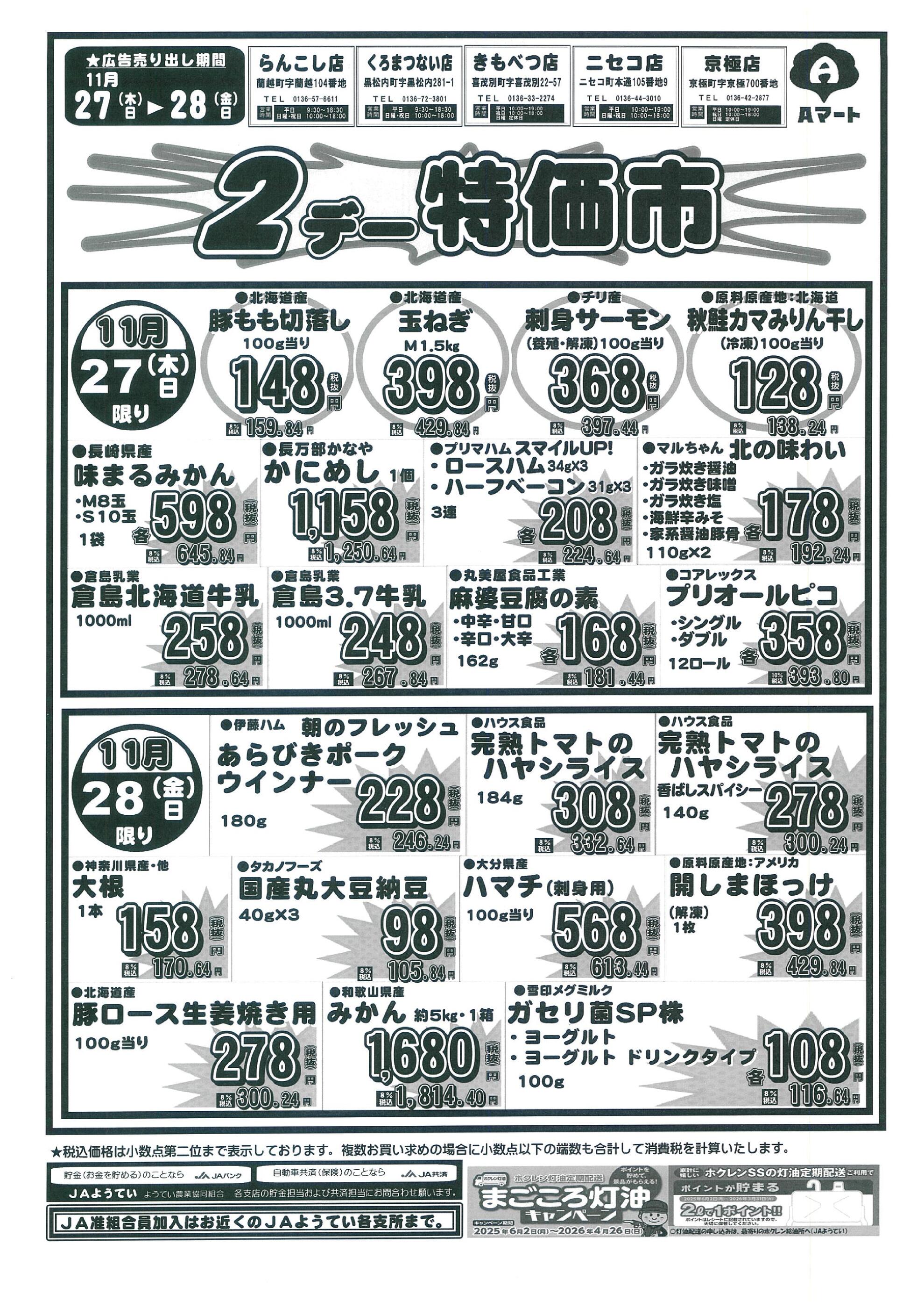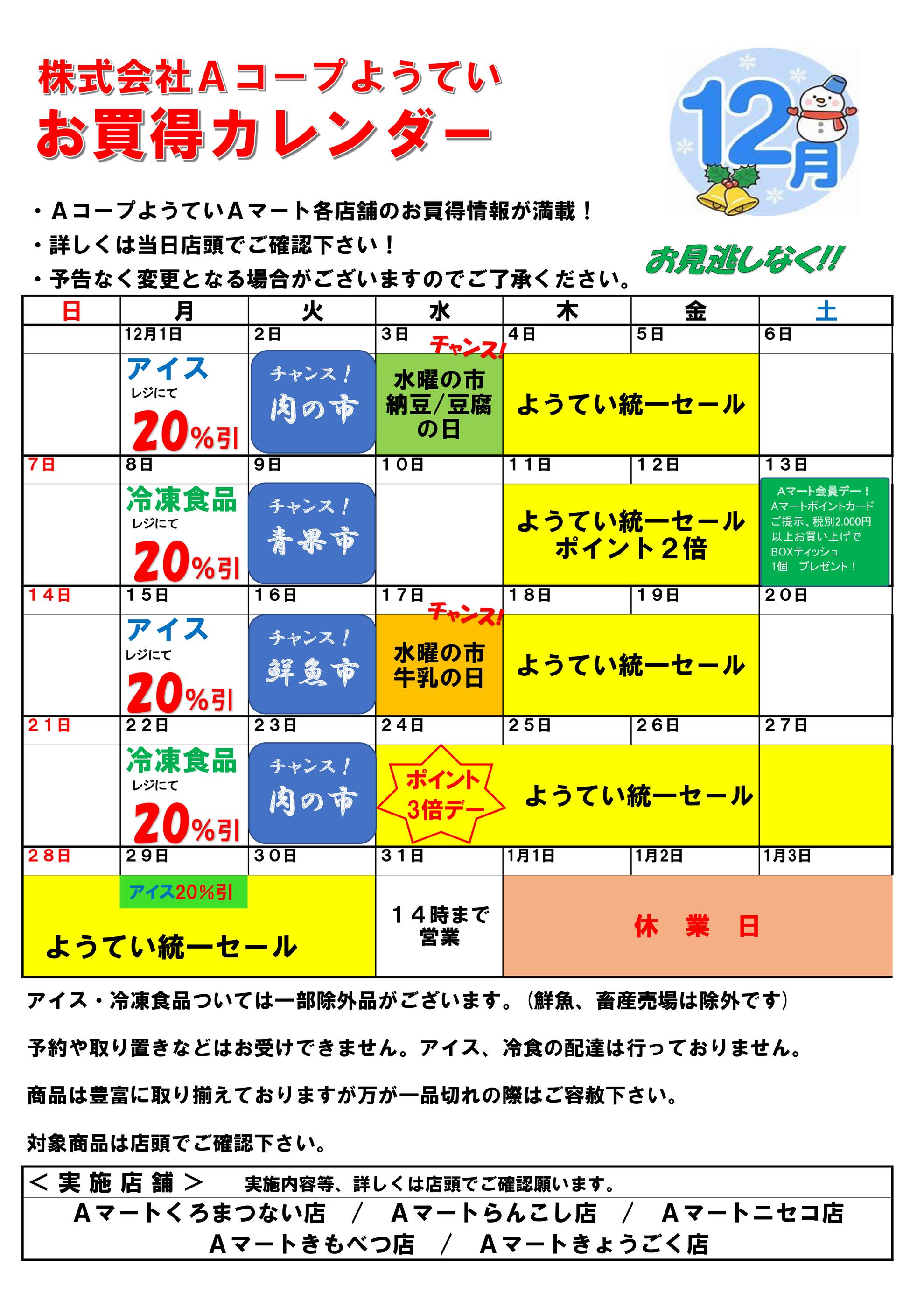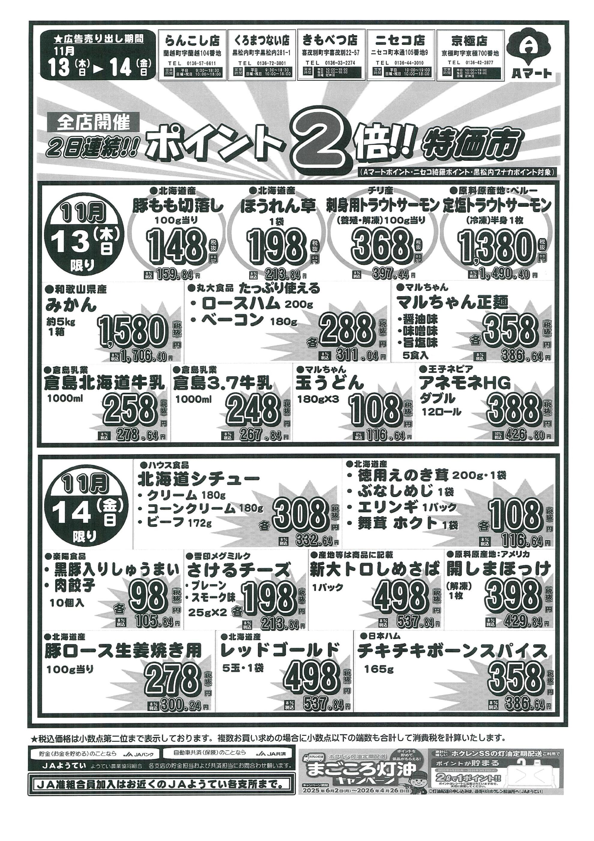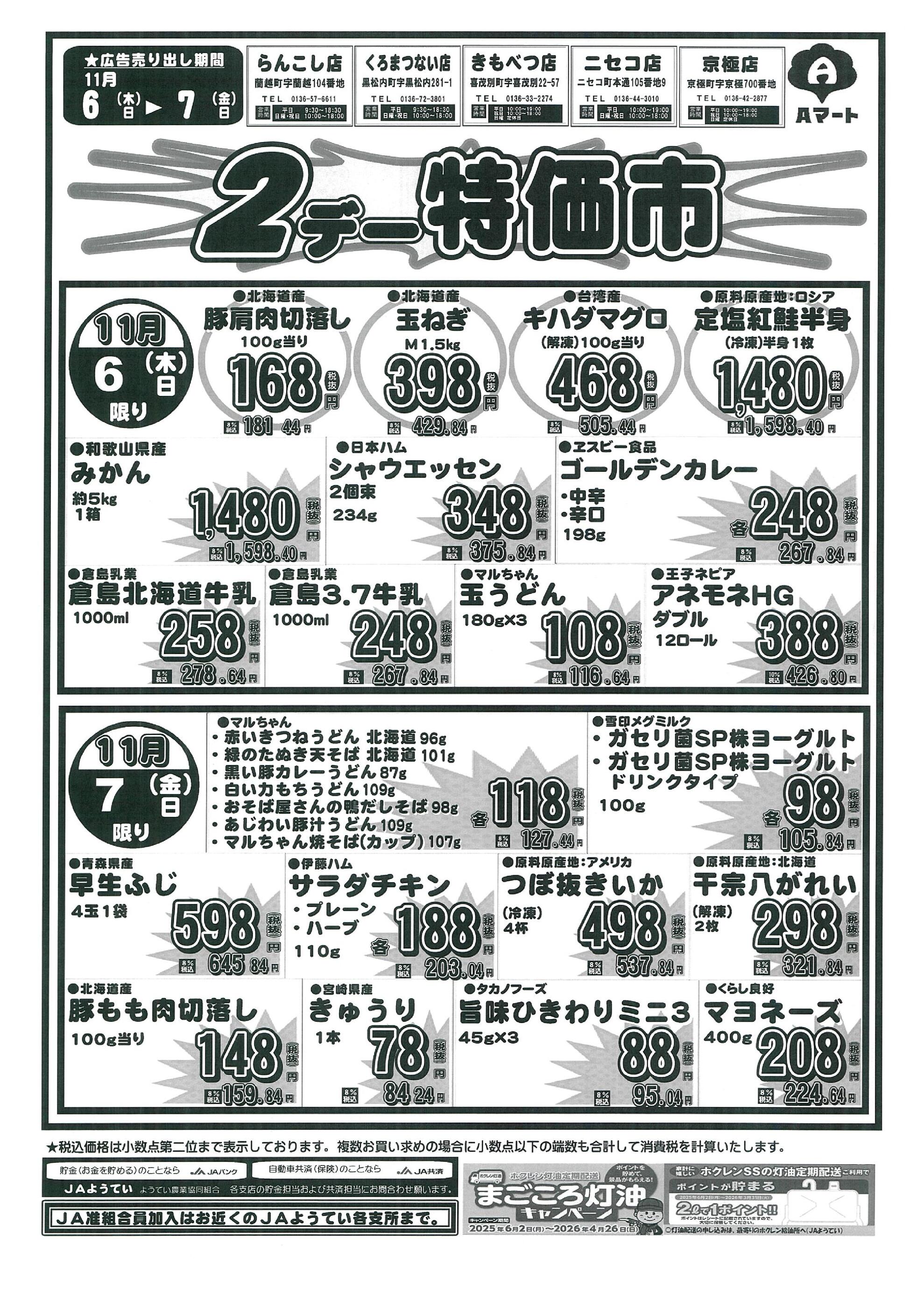 Aコープ黒松内店今週のチラシ(2025年12月1日〜12月7日)