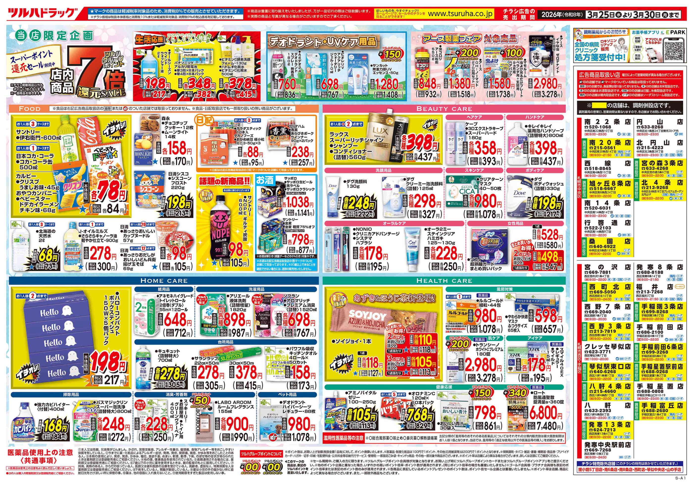 ツルハドラッグ宮の森3条店今週のチラシ(2026年3月30日〜4月5日)