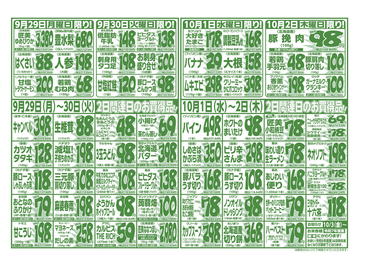 マルコストアー本店今週のチラシ(2025年9月29日〜10月5日)