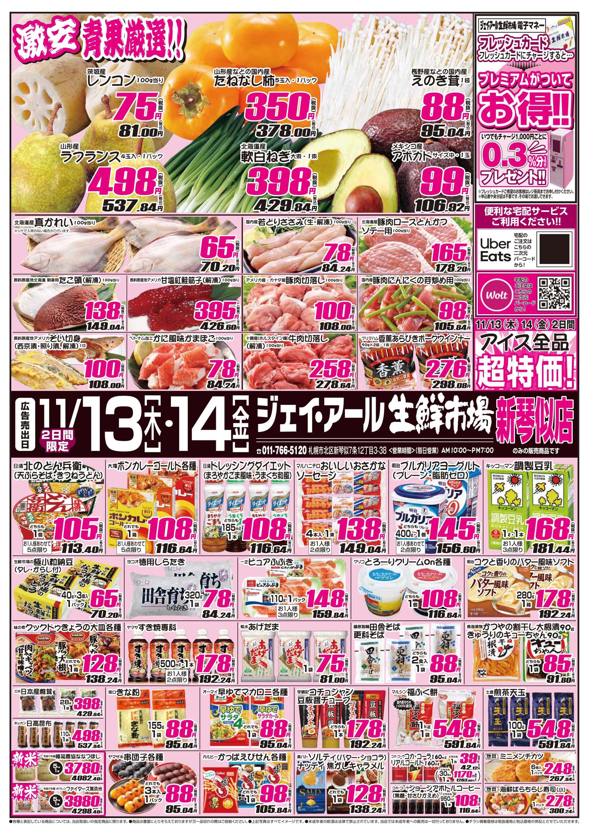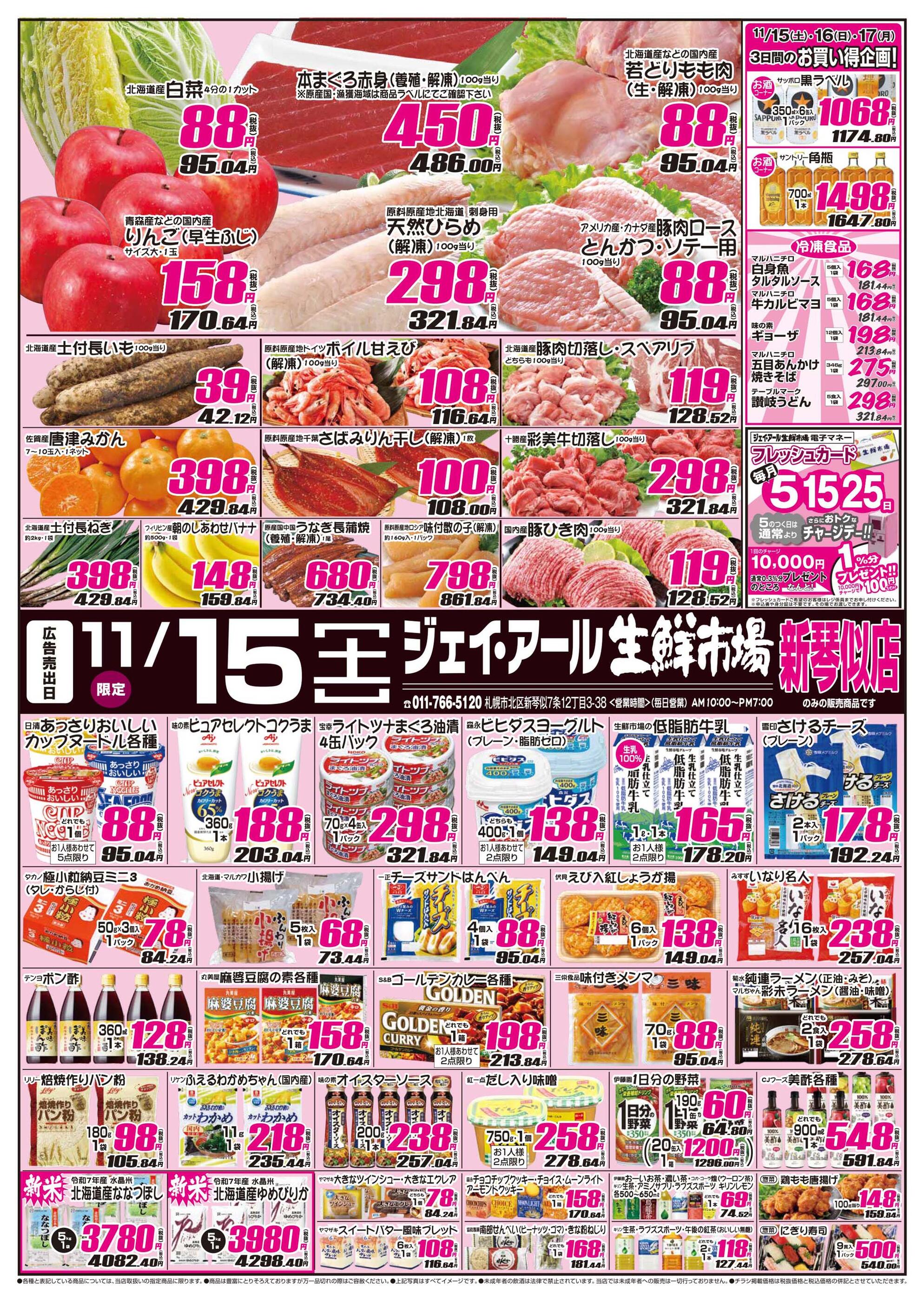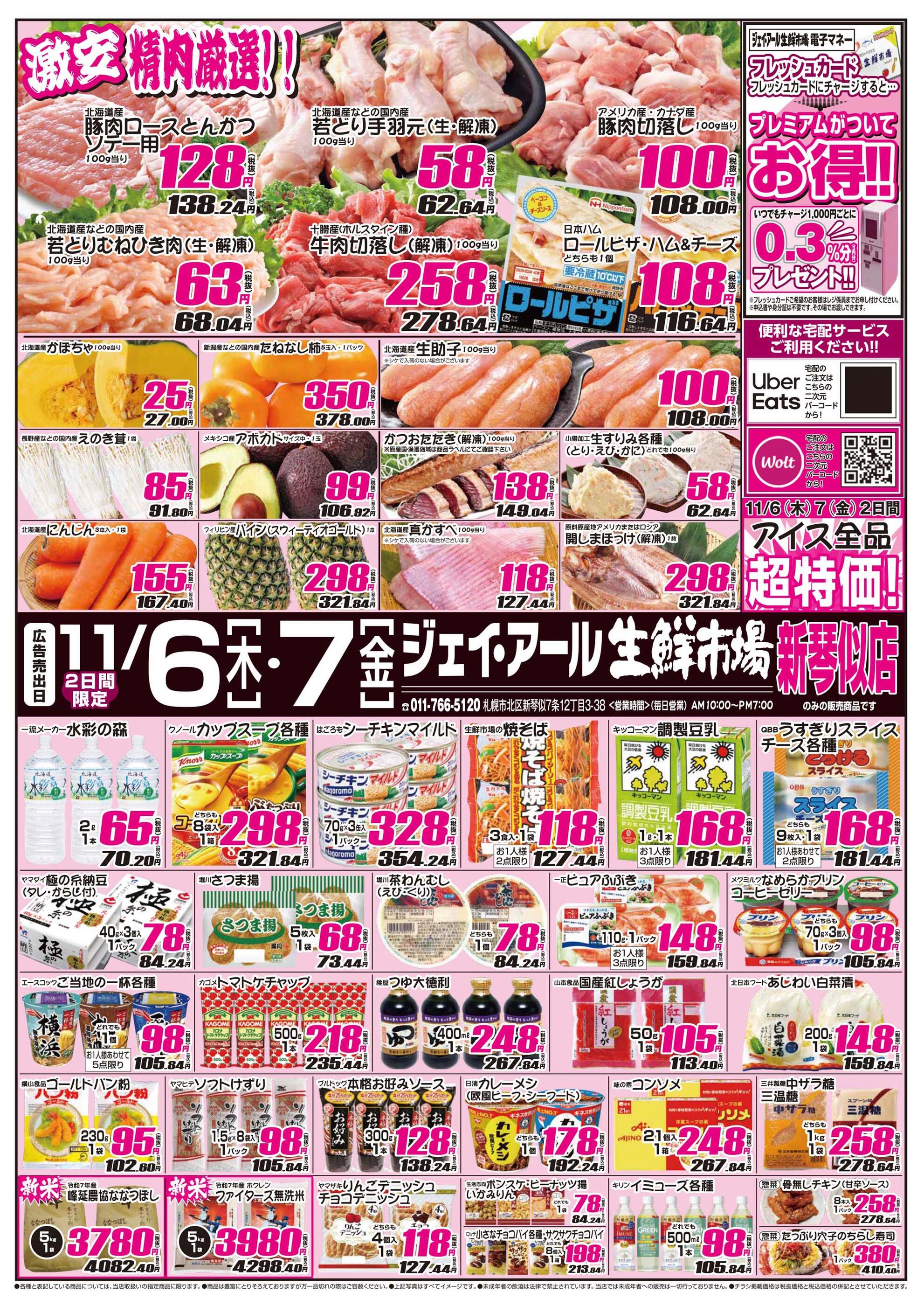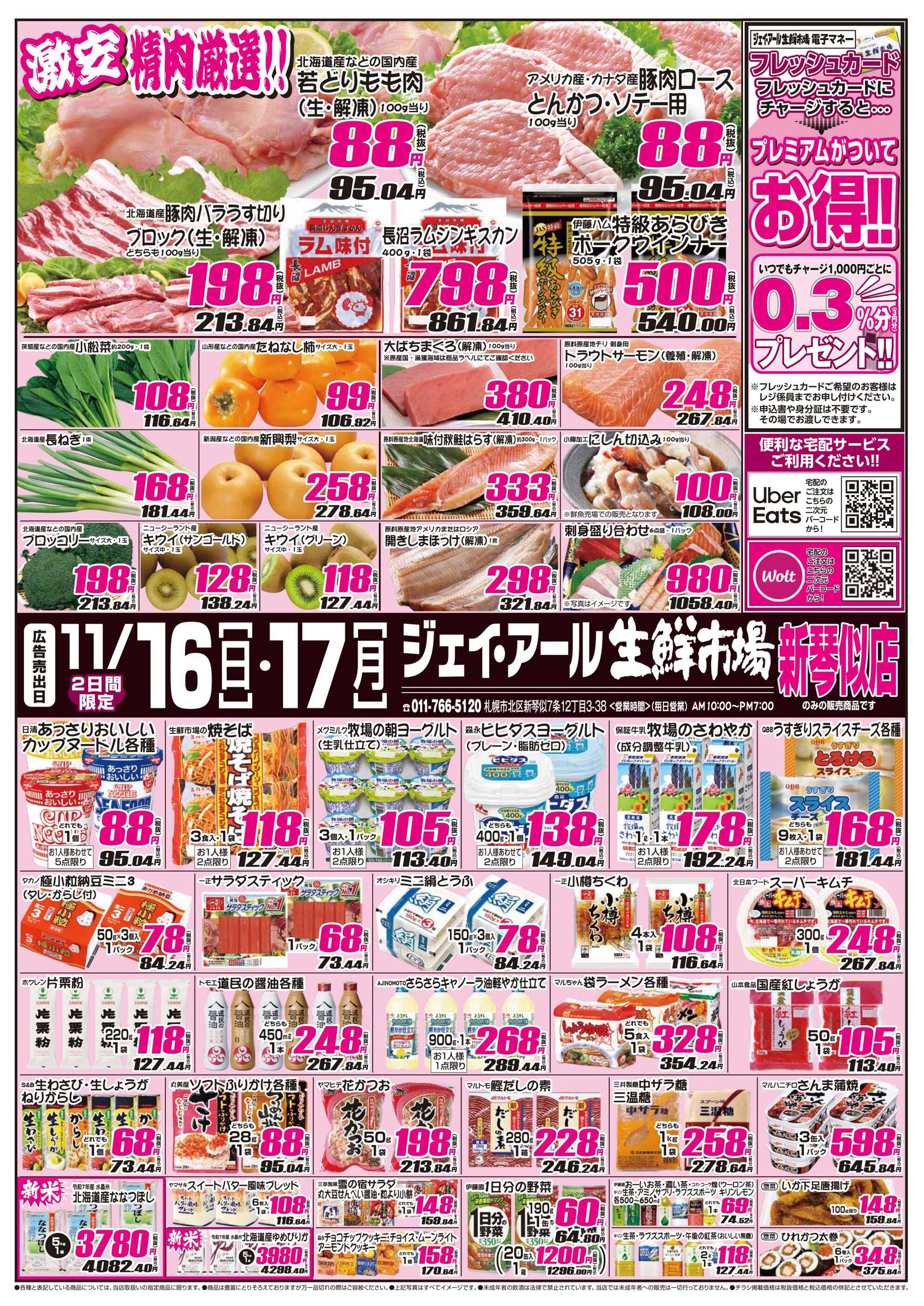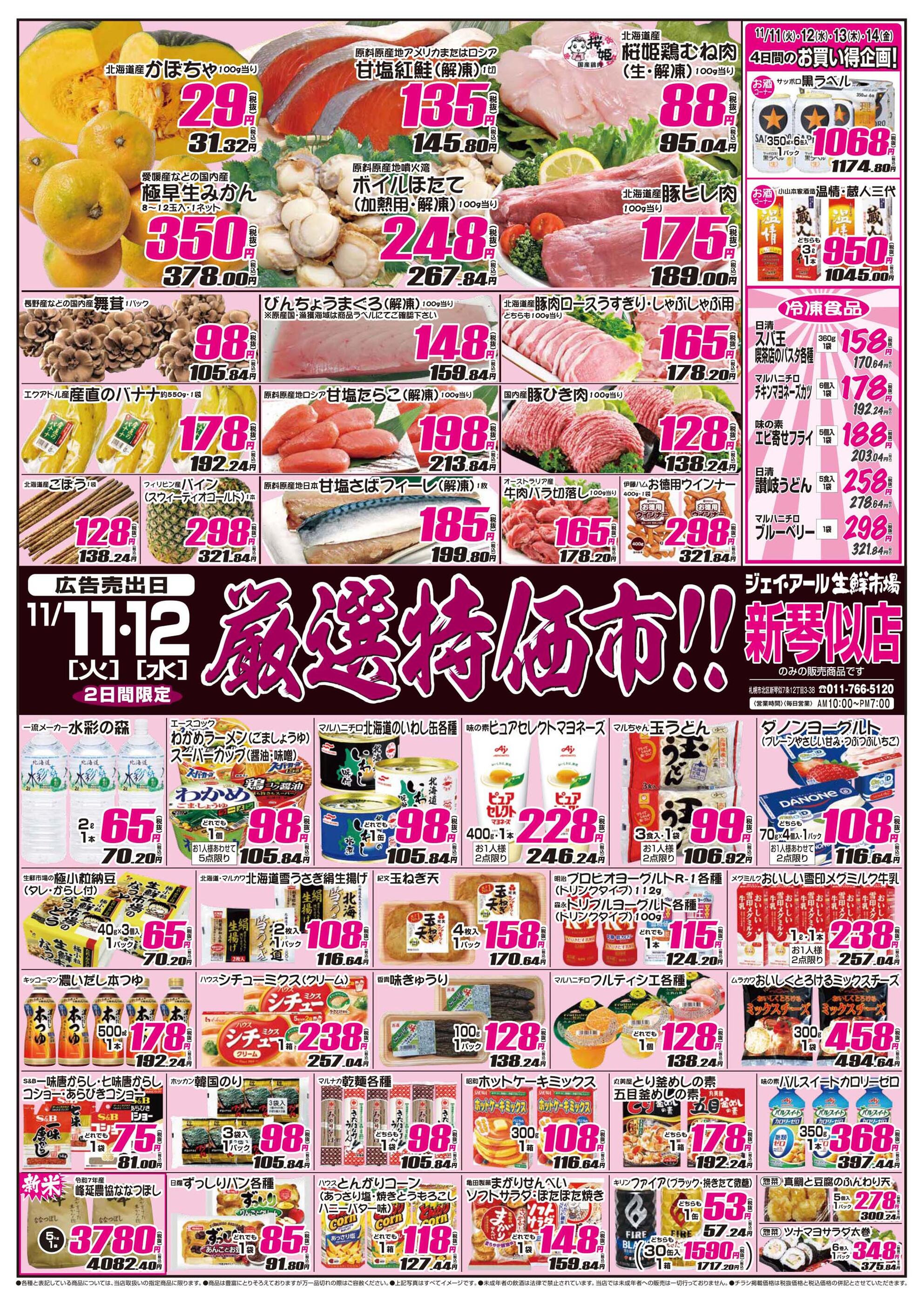 ジェイ・アール生鮮市場 新琴似店今週のチラシ(2025年11月10日〜11月16日)