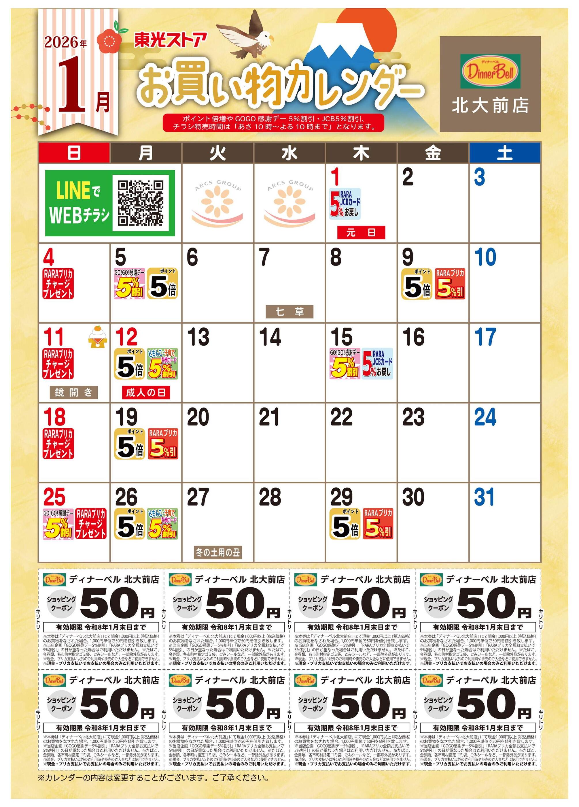 ディナーベル北大前店今週のチラシ(2026年1月12日〜1月18日)