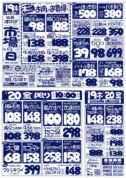特売やセール情報など最新のチラシを掲載中。(2種類、3枚のチラシを掲載しています)