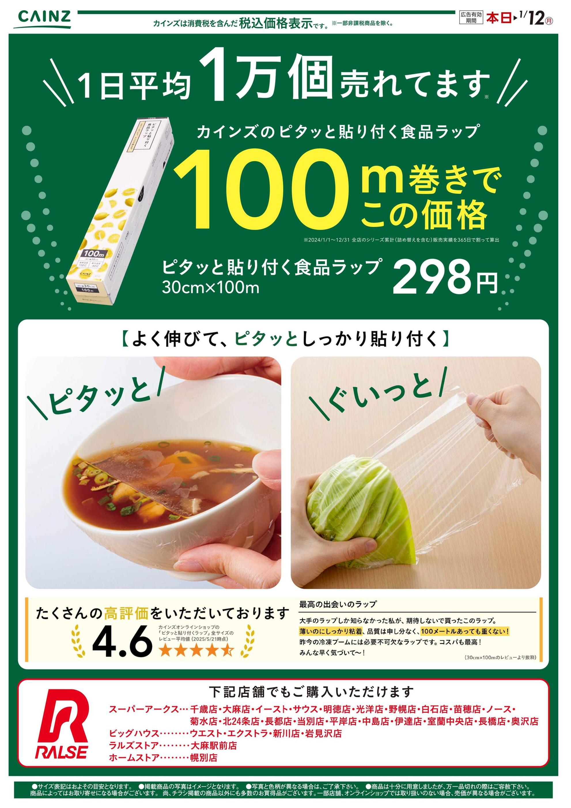 - ピタッと貼り付く食品ラップ(北海道)12/13号 (1枚)