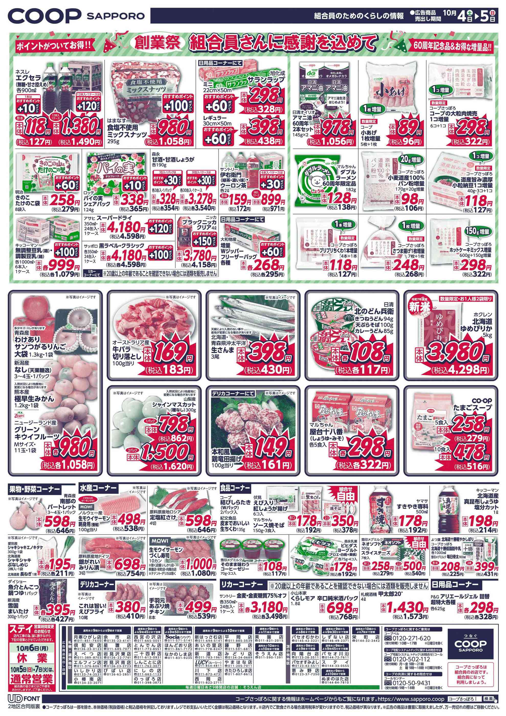 コープさっぽろ星置店今週のチラシ(2025年9月29日〜10月5日)