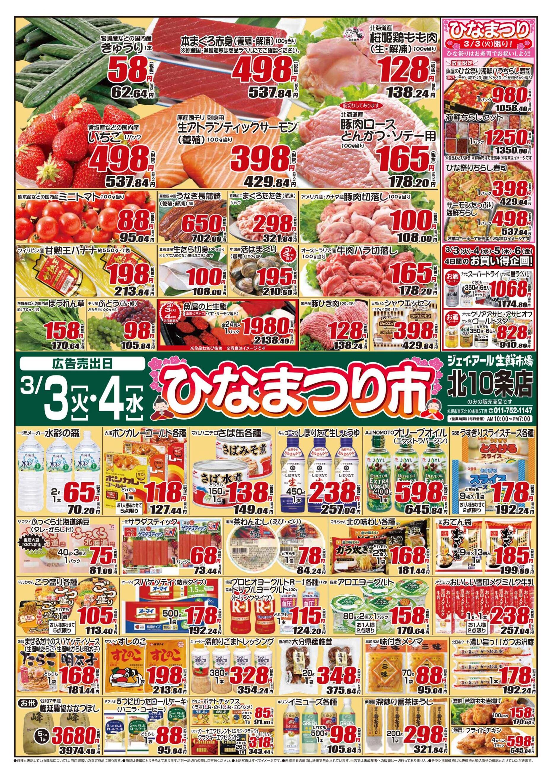 ジェイ・アール生鮮市場 北10条店今週のチラシ(2026年3月2日〜3月8日)