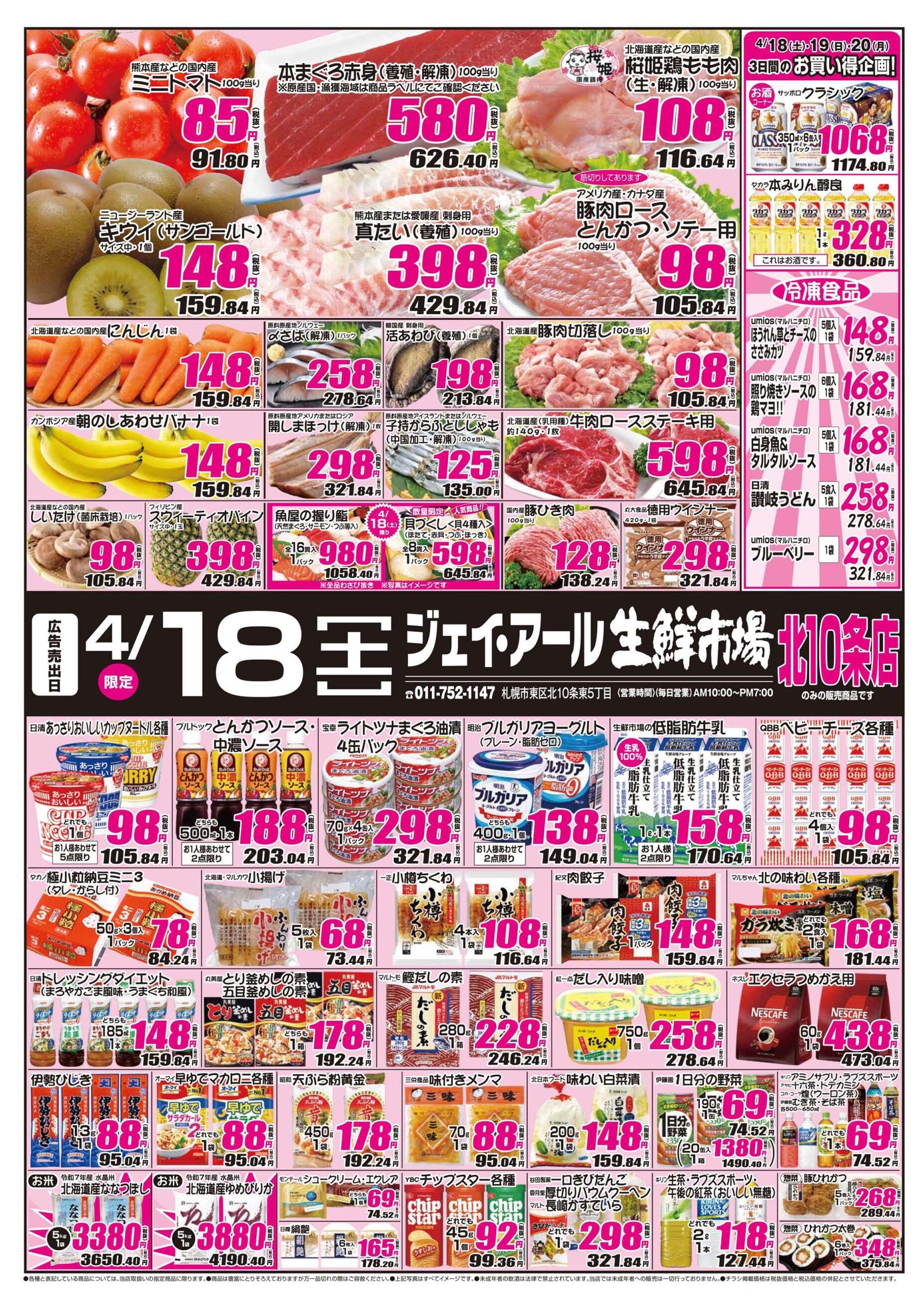 ジェイ・アール生鮮市場 北10条店今週のチラシ(2026年4月13日〜4月19日)