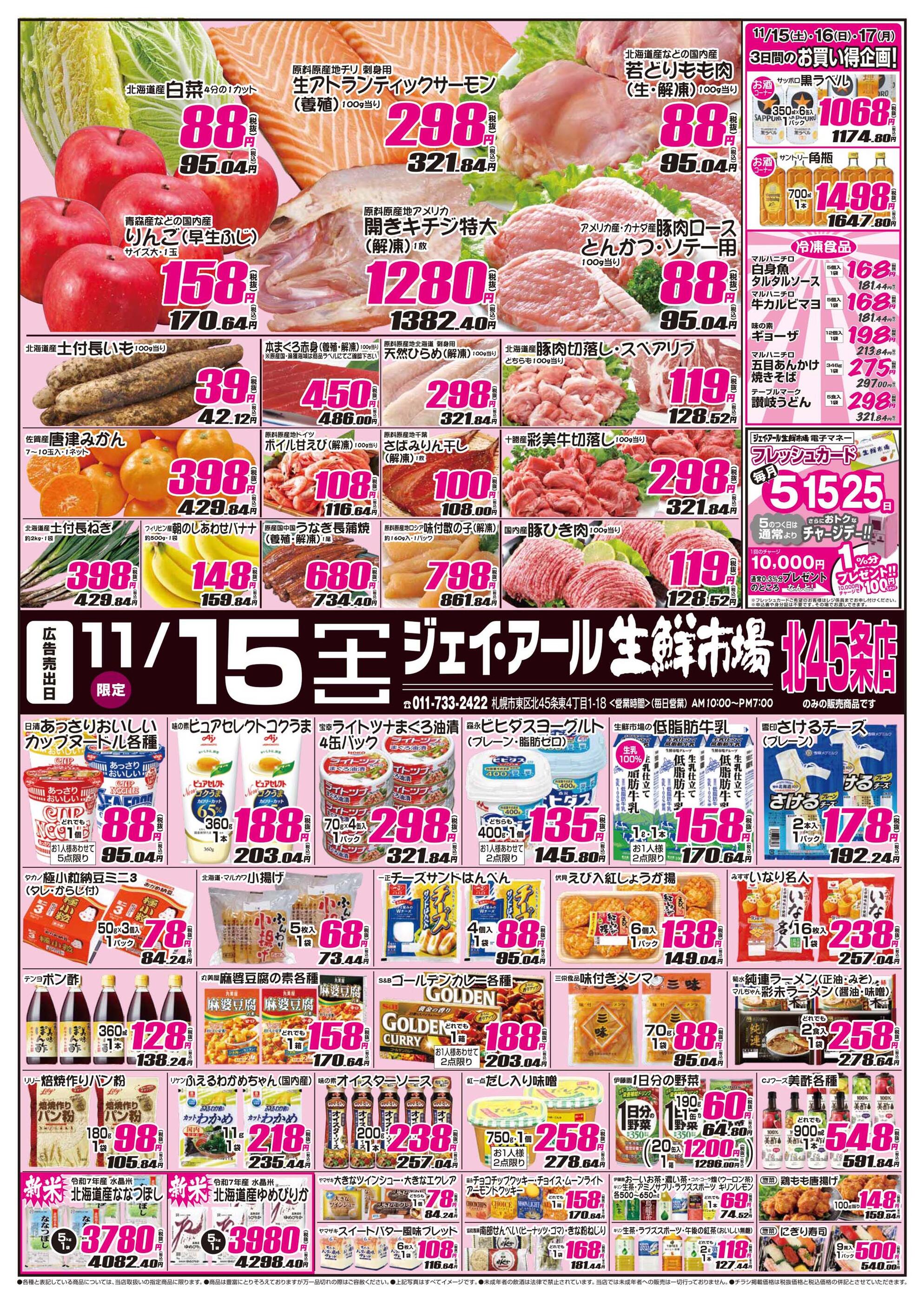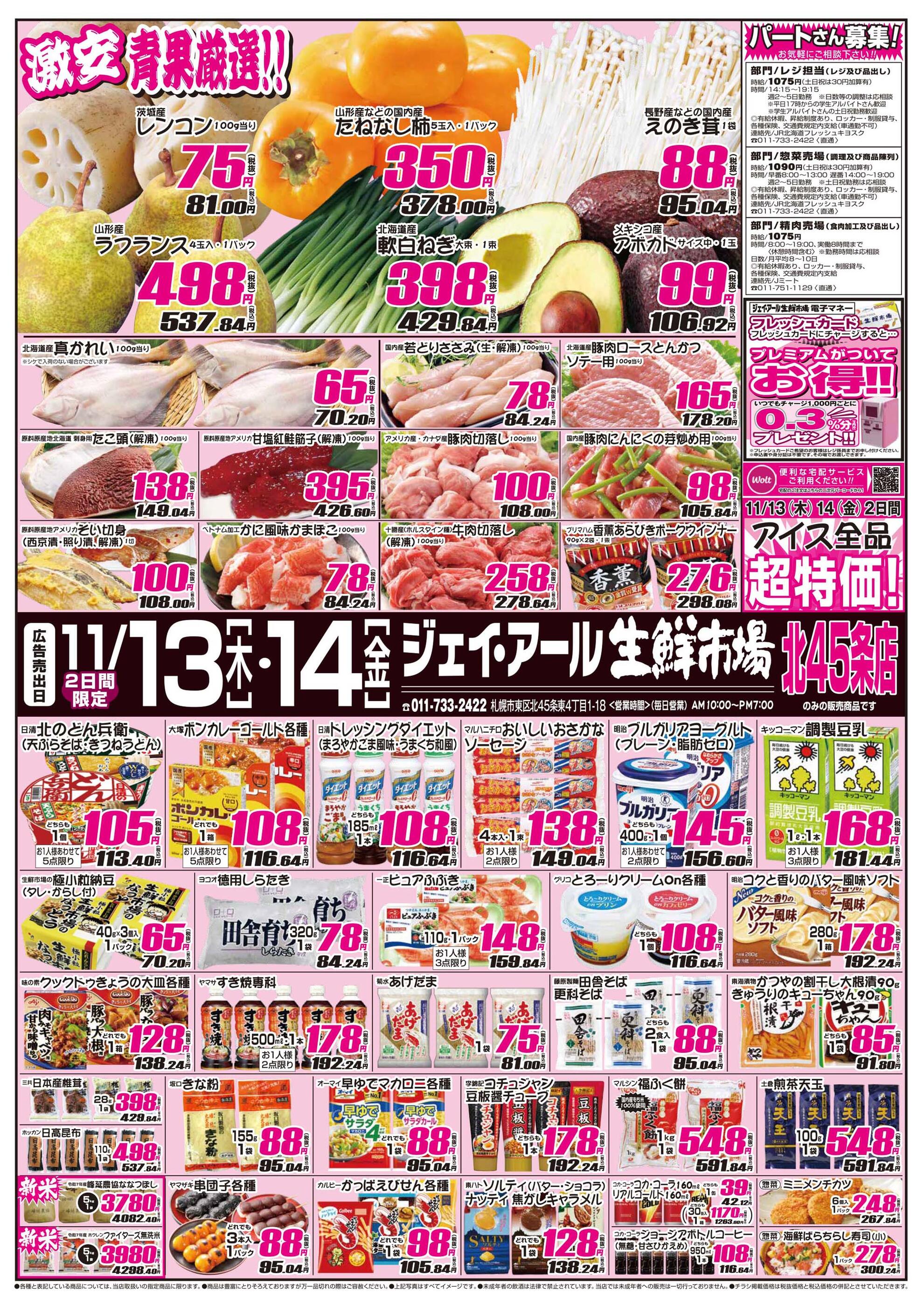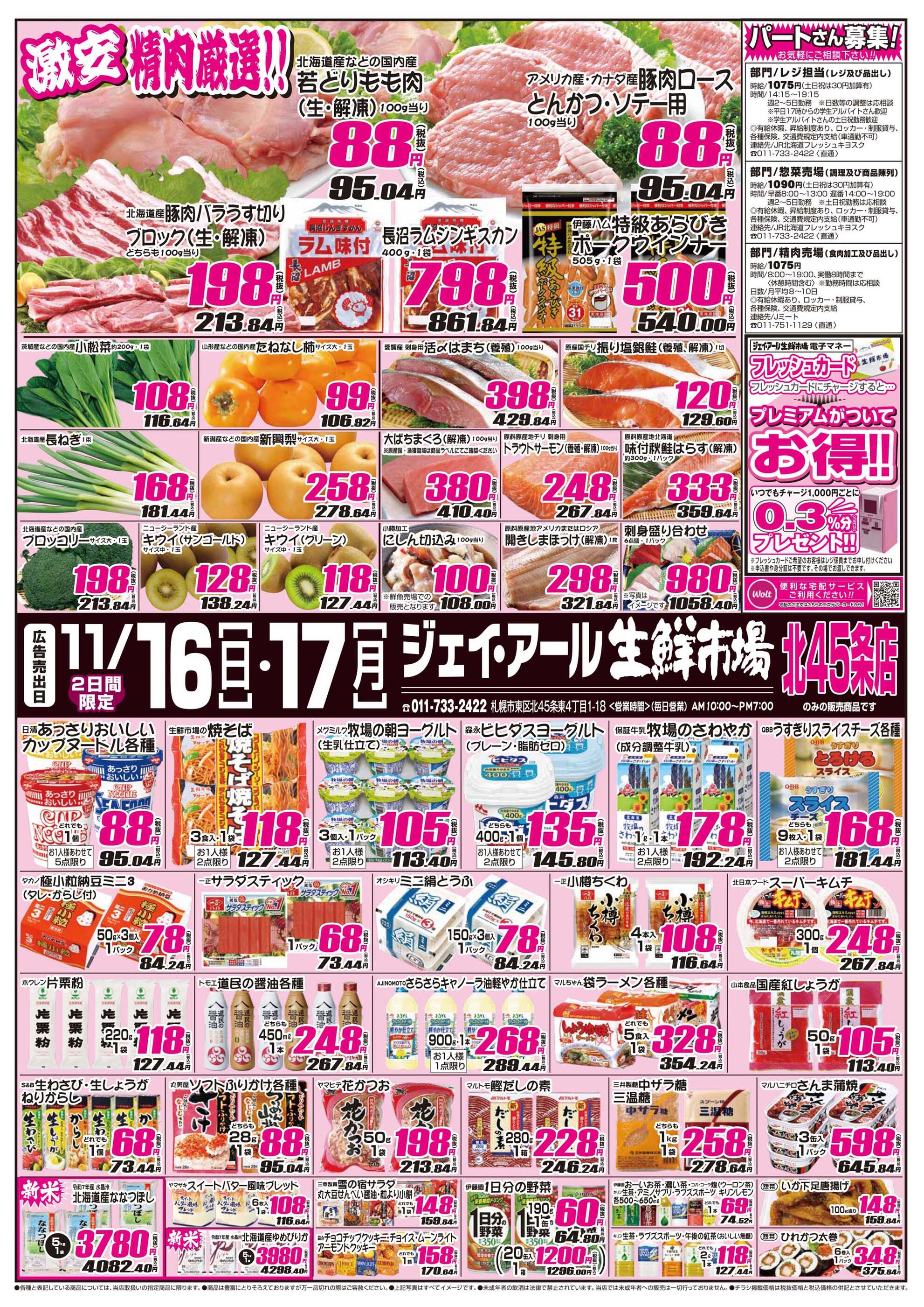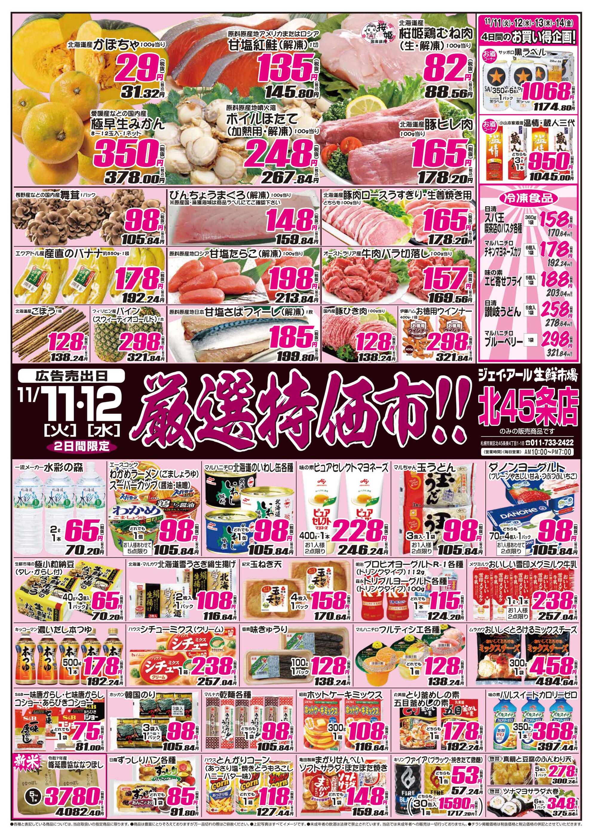 ジェイ・アール生鮮市場 北45条店今週のチラシ(2025年11月10日〜11月16日)