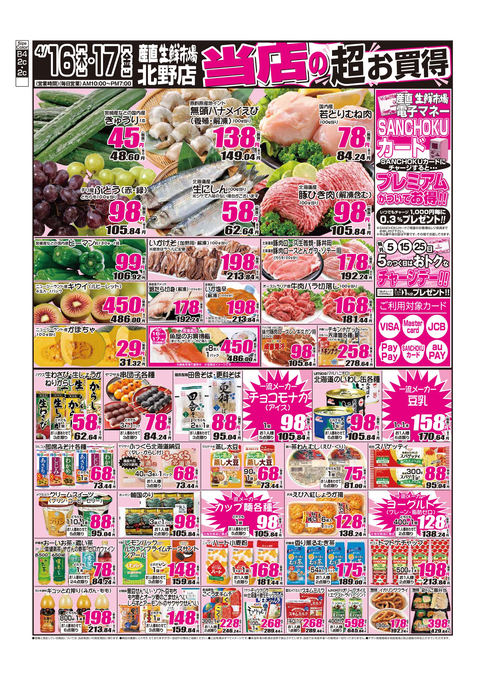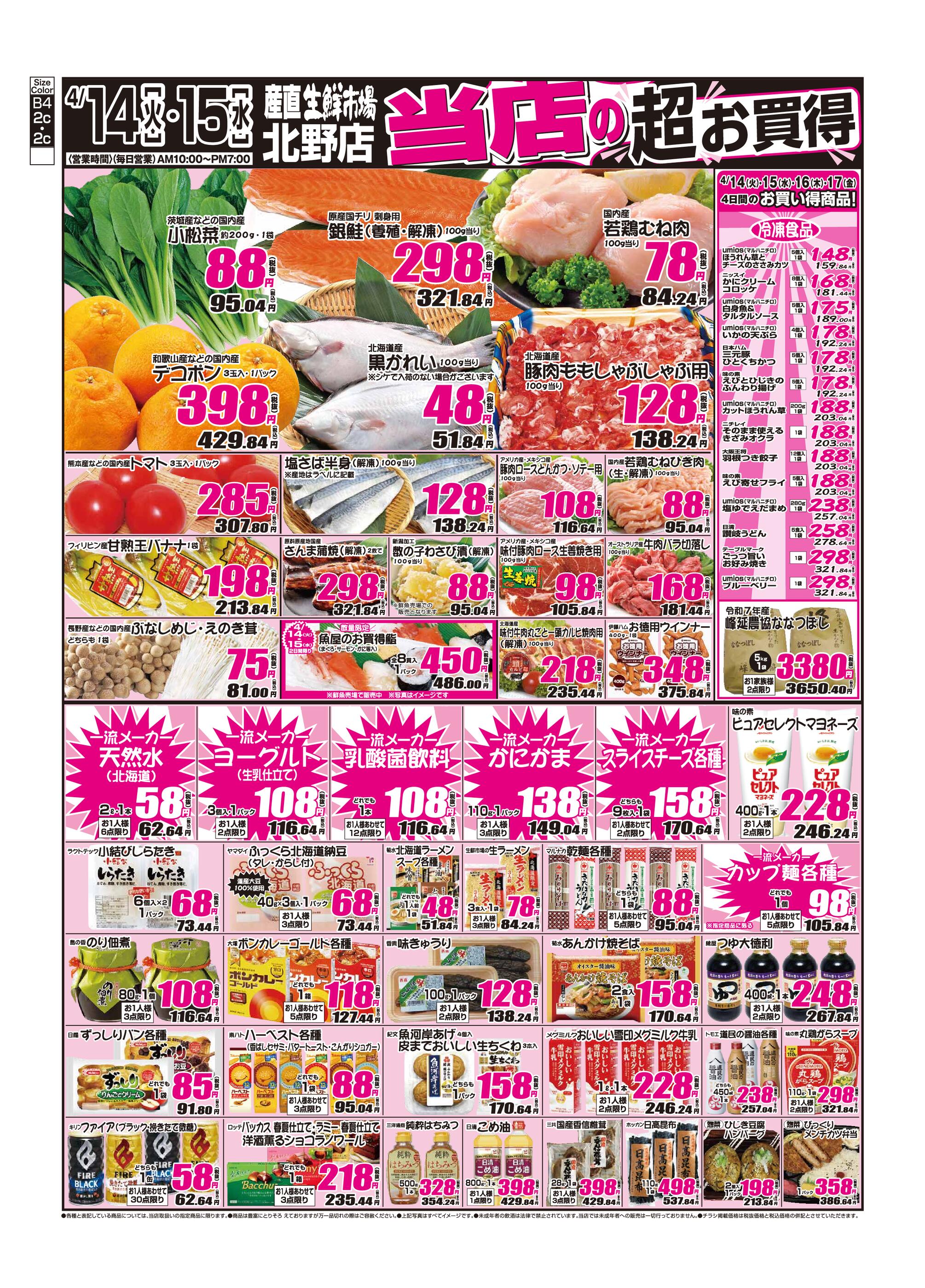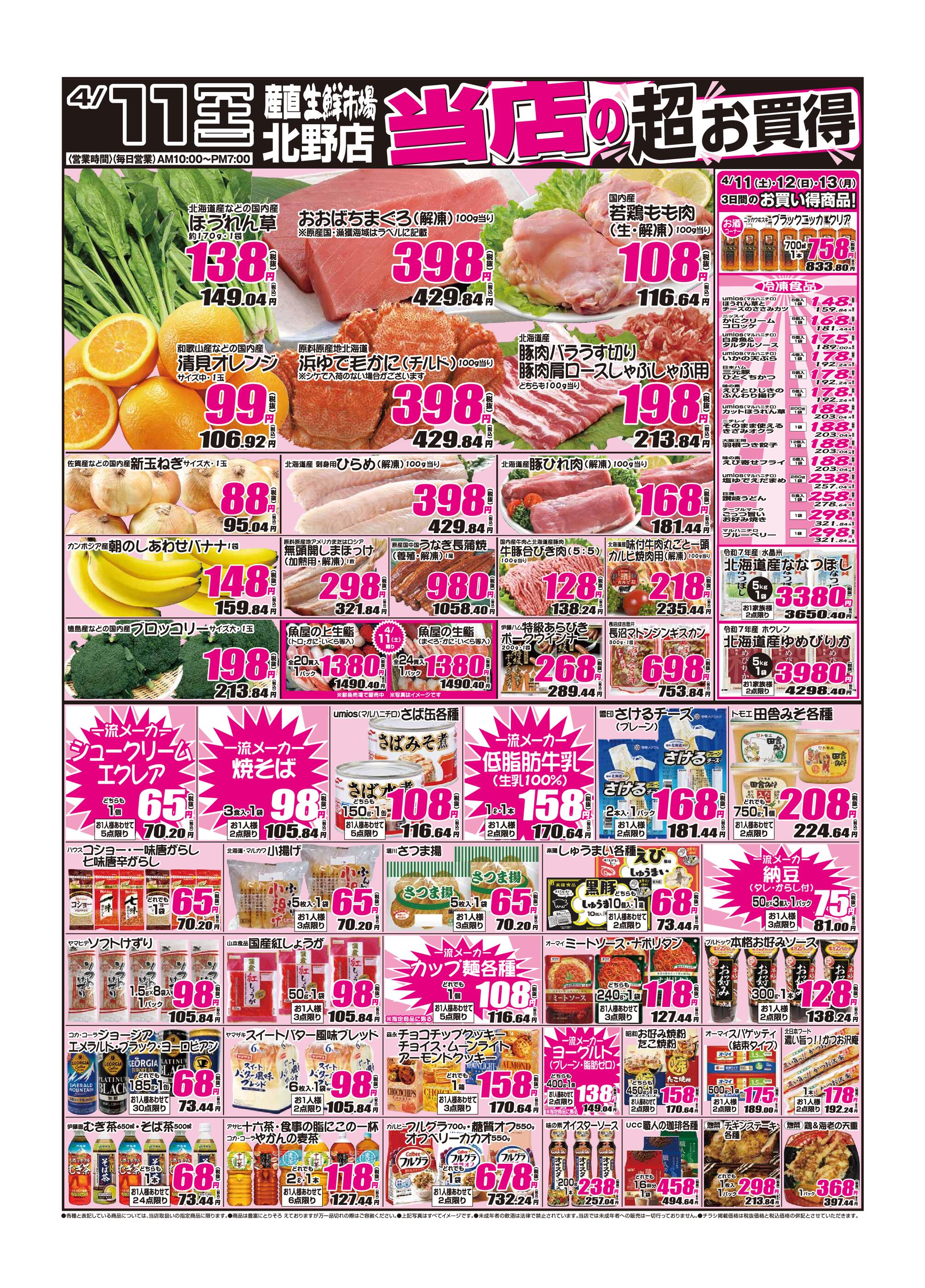 産直生鮮市場 北野店今週のチラシ(2026年4月13日〜4月19日)