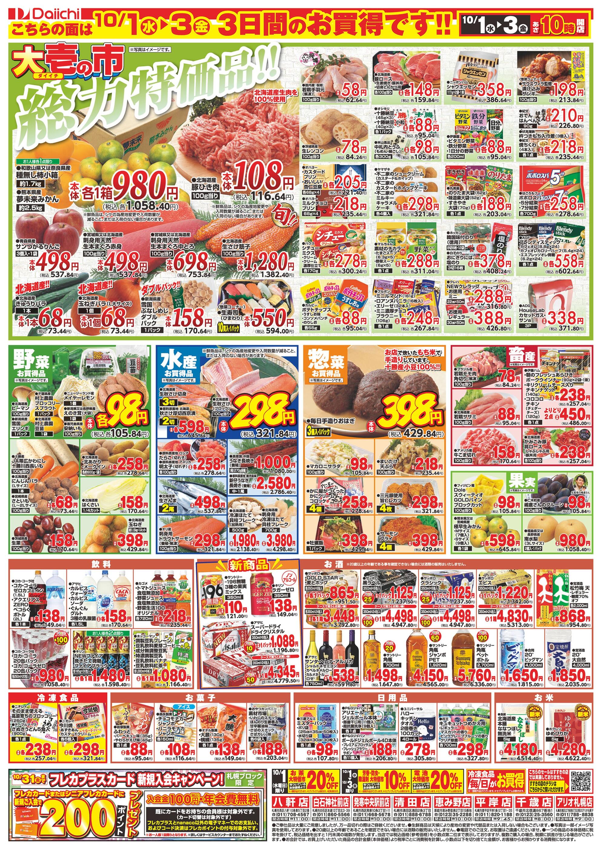 ダイイチ発寒中央駅前店今週のチラシ(2025年9月29日〜10月5日)