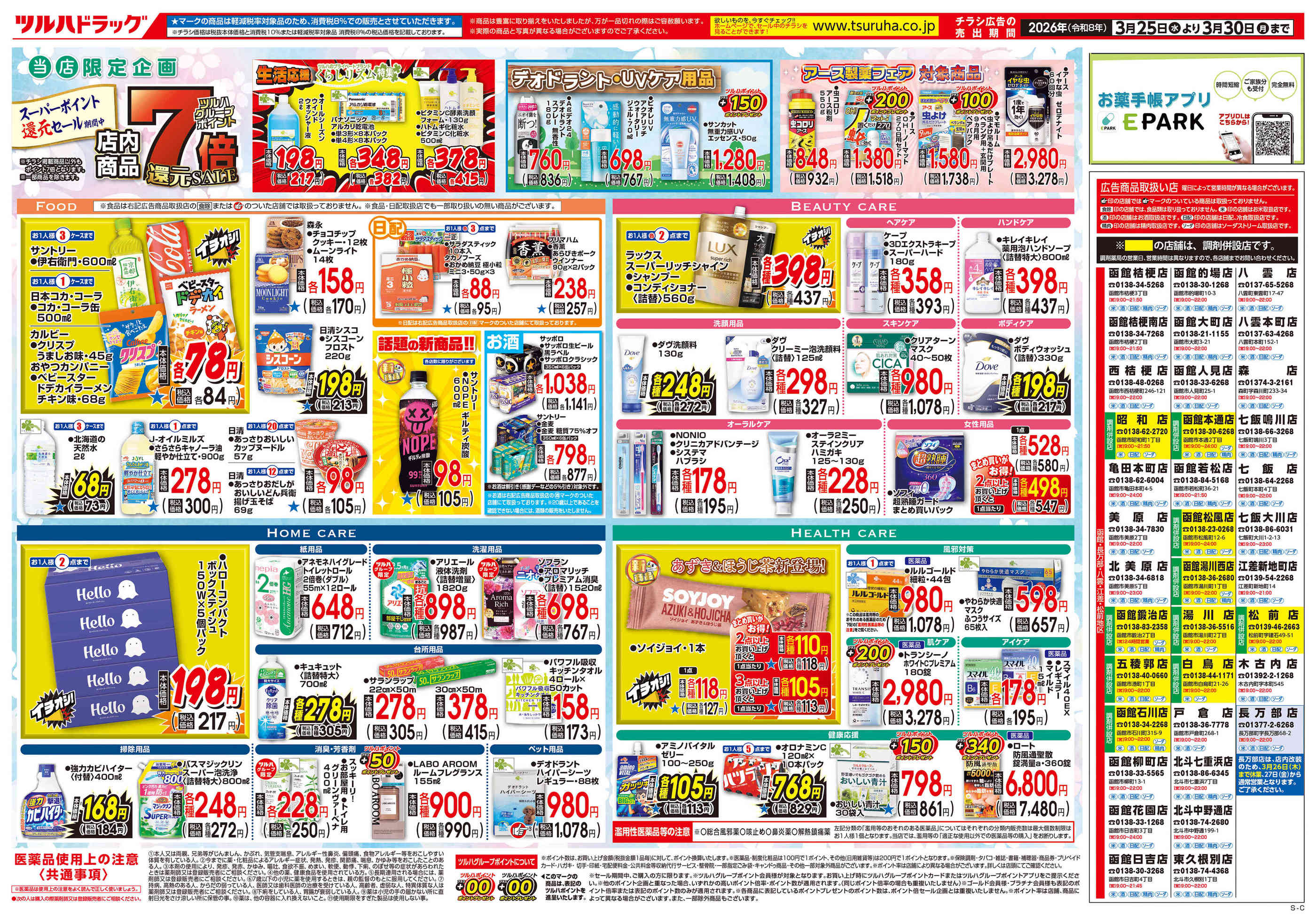 ツルハドラッグ長万部店今週のチラシ(2026年3月30日〜4月5日)