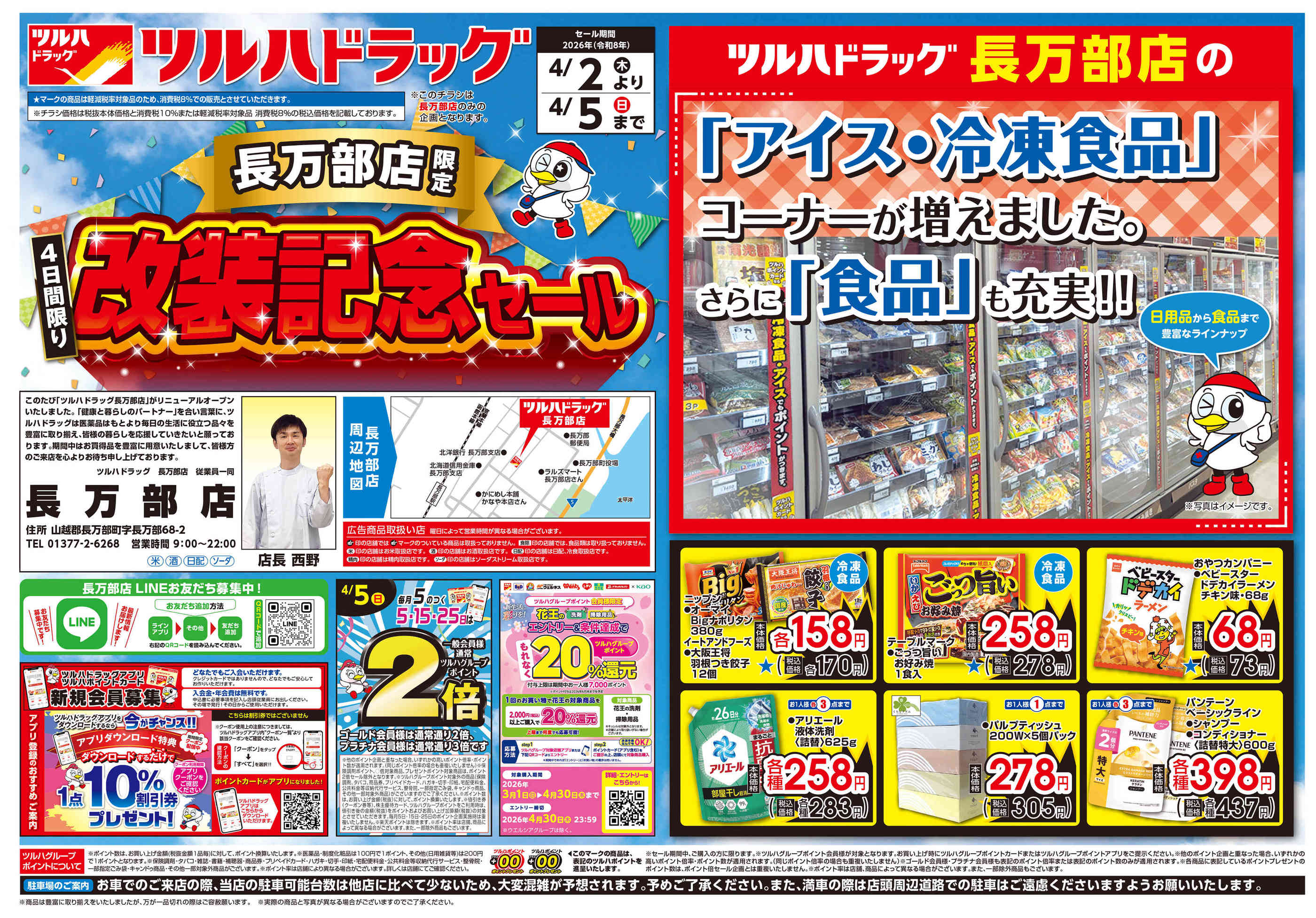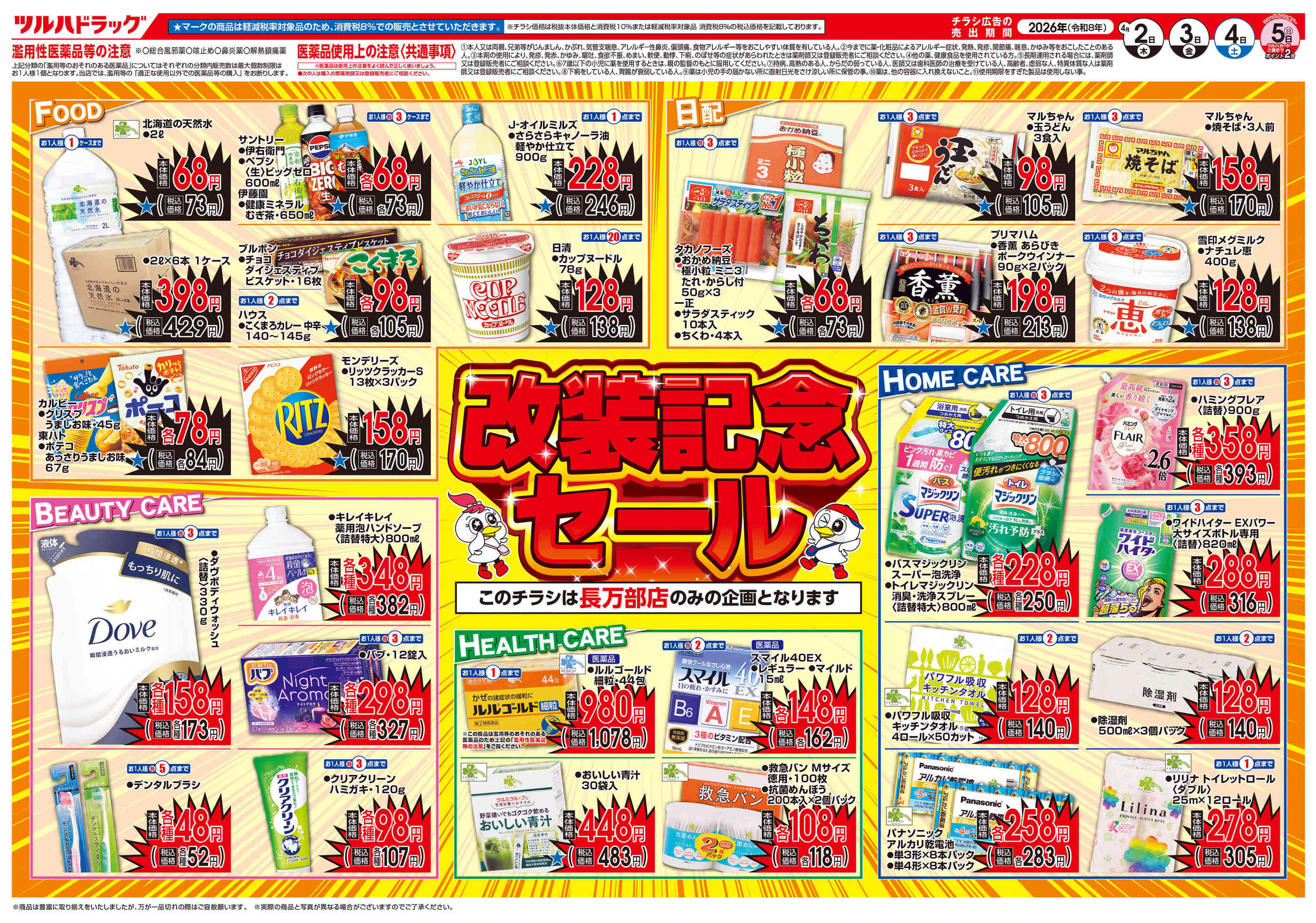 - 2026年4月1〜5日まで4/2号長万部店改装記念セールチラシnew (2枚)