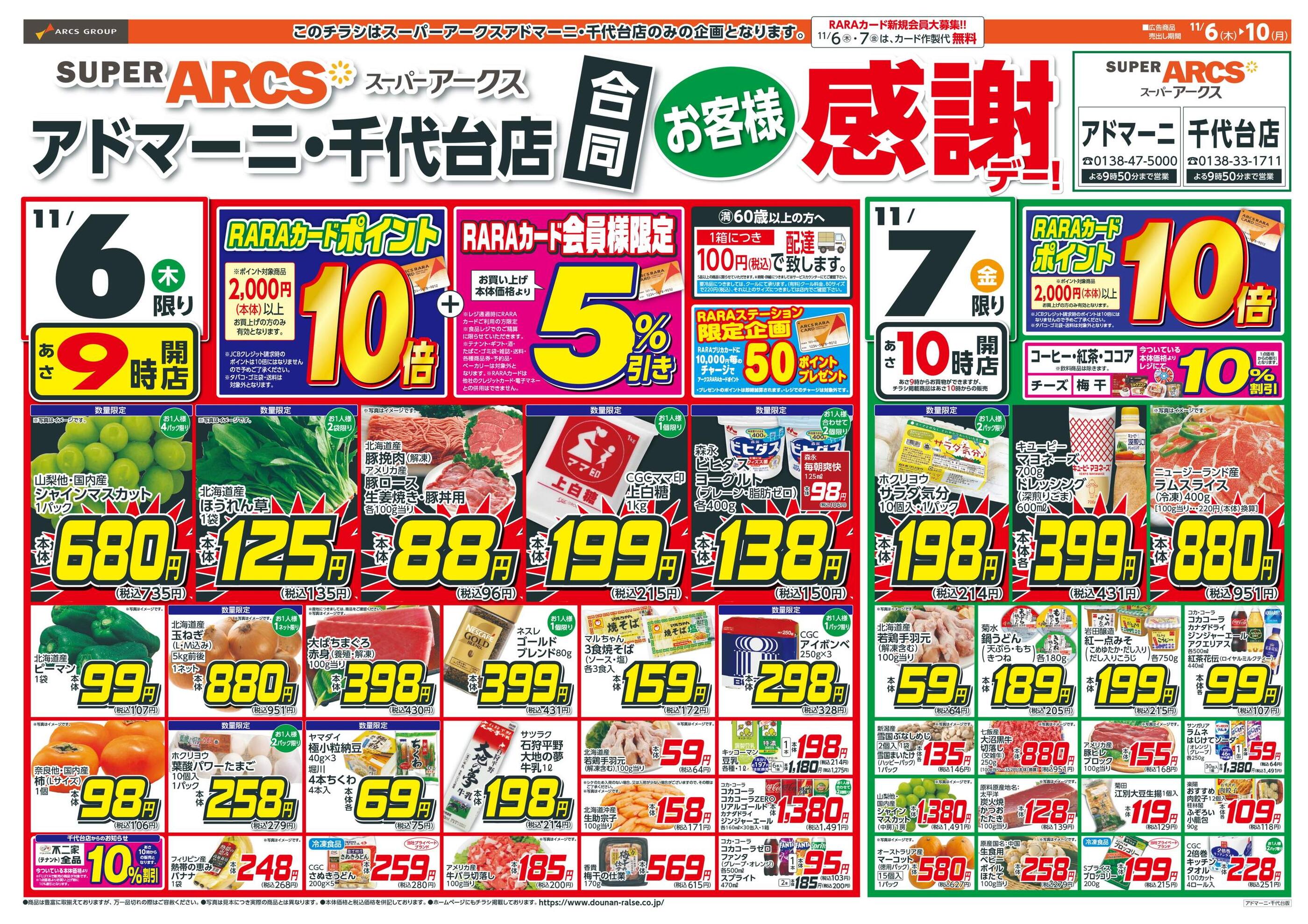特売やセール情報など最新のチラシを掲載中。(2種類、4枚のチラシを掲載しています)