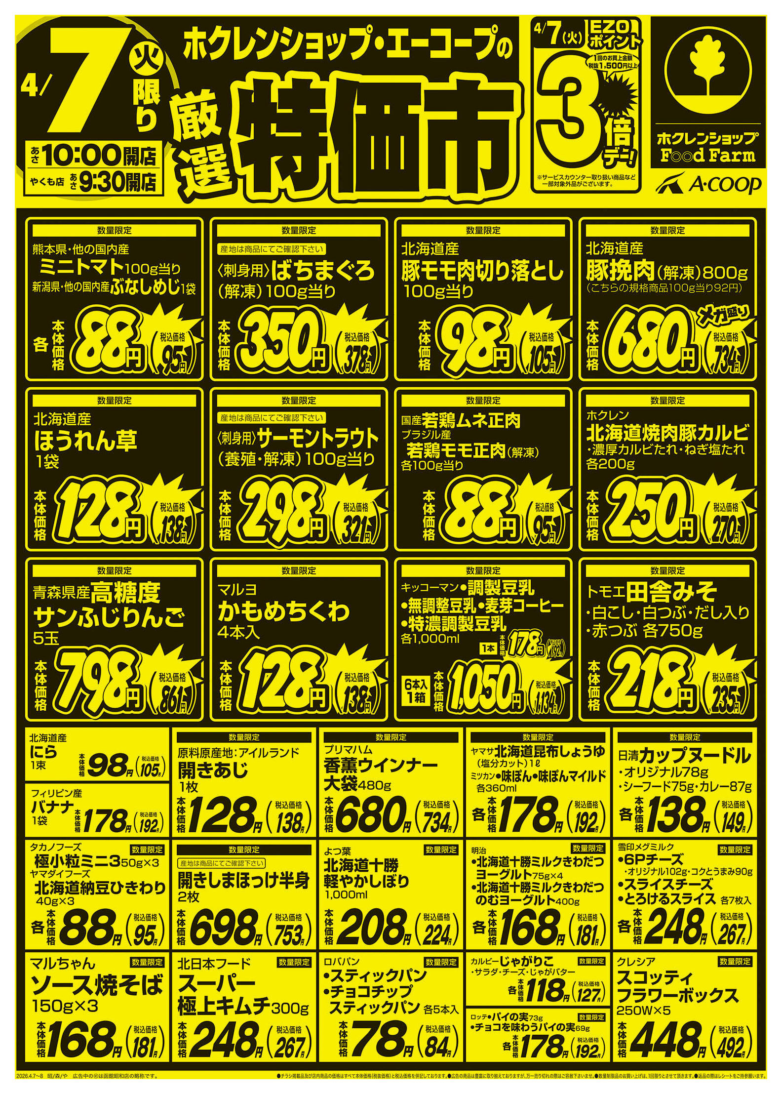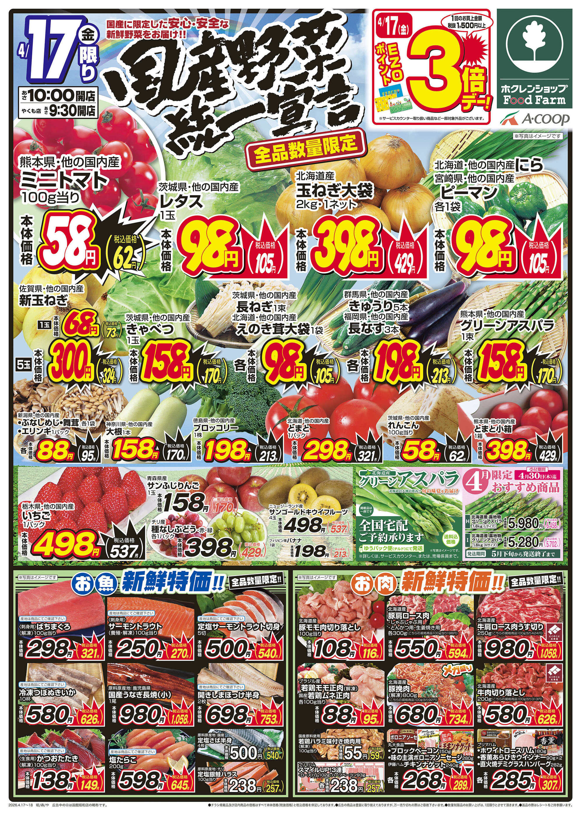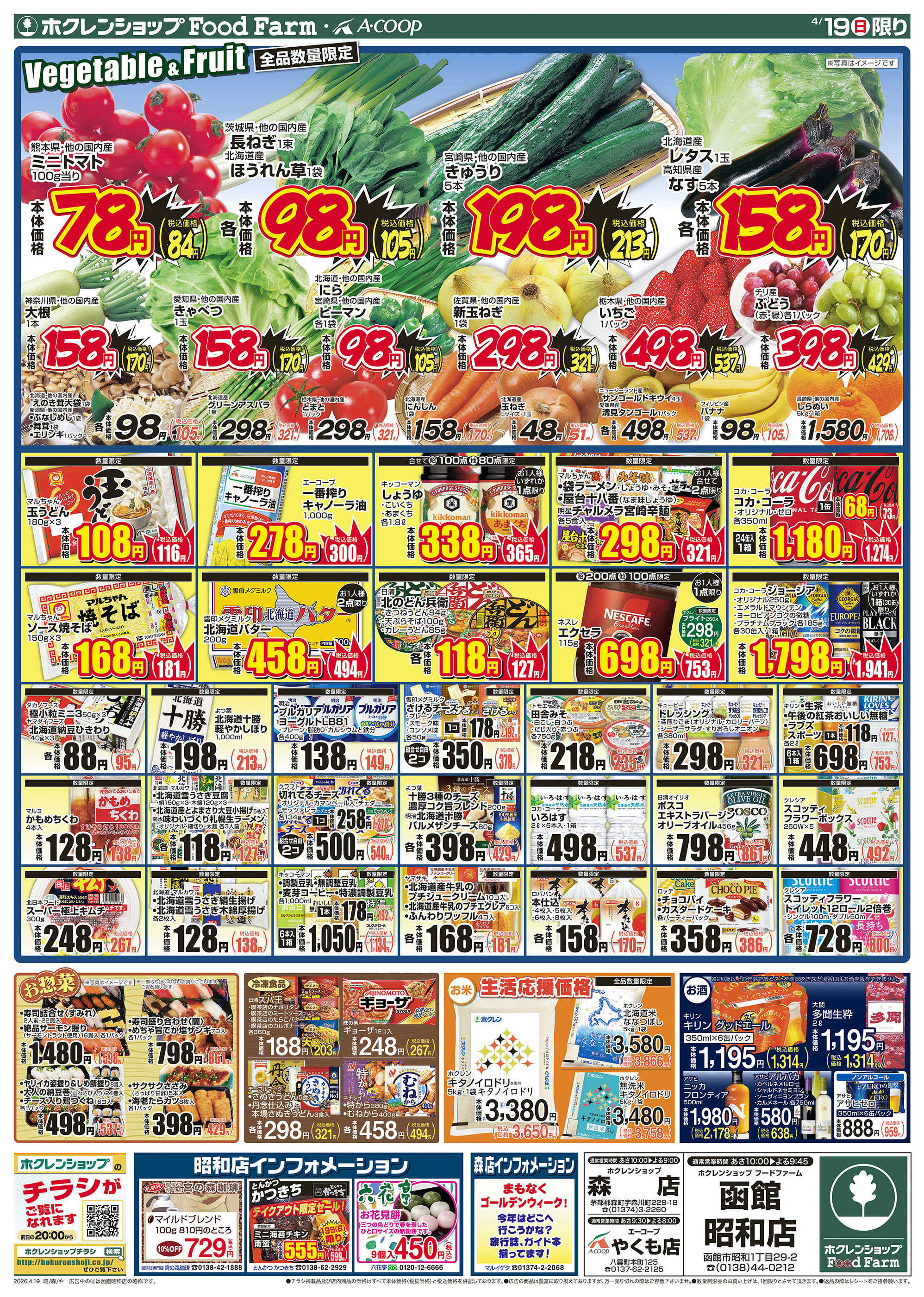 ホクレンショップFoodFarm函館昭和店今週のチラシ(2026年4月13日〜4月19日)
