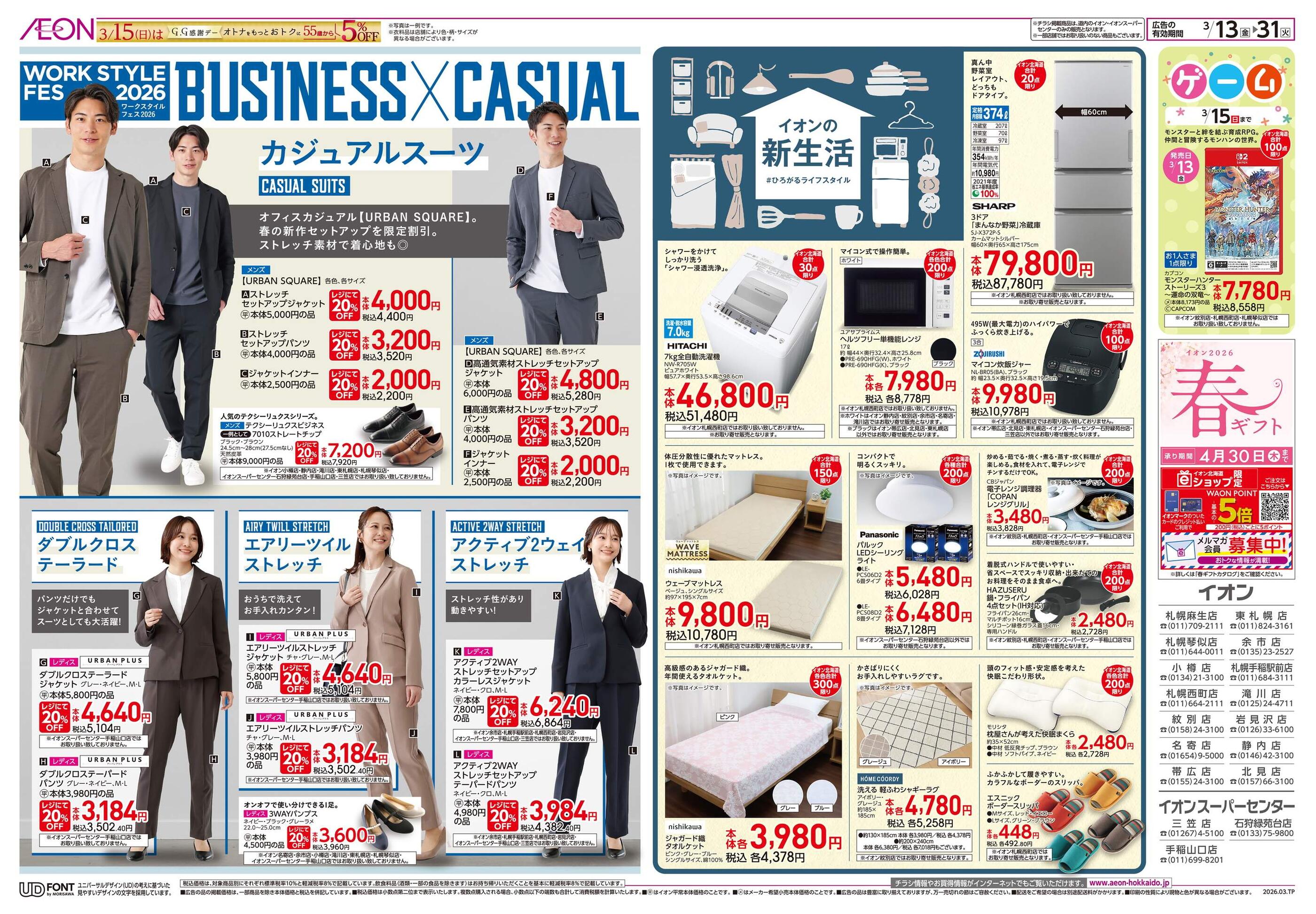 イオンスーパーセンター石狩緑苑台店今週のチラシ(2026年3月16日〜3月22日)