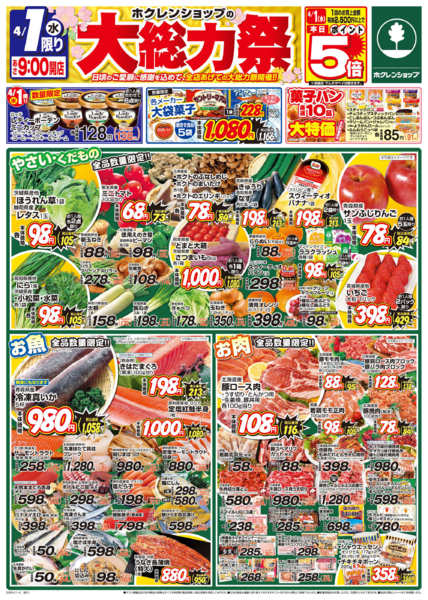 特売やセール情報など最新のチラシを掲載中。(18種類、41枚のチラシを掲載しています)