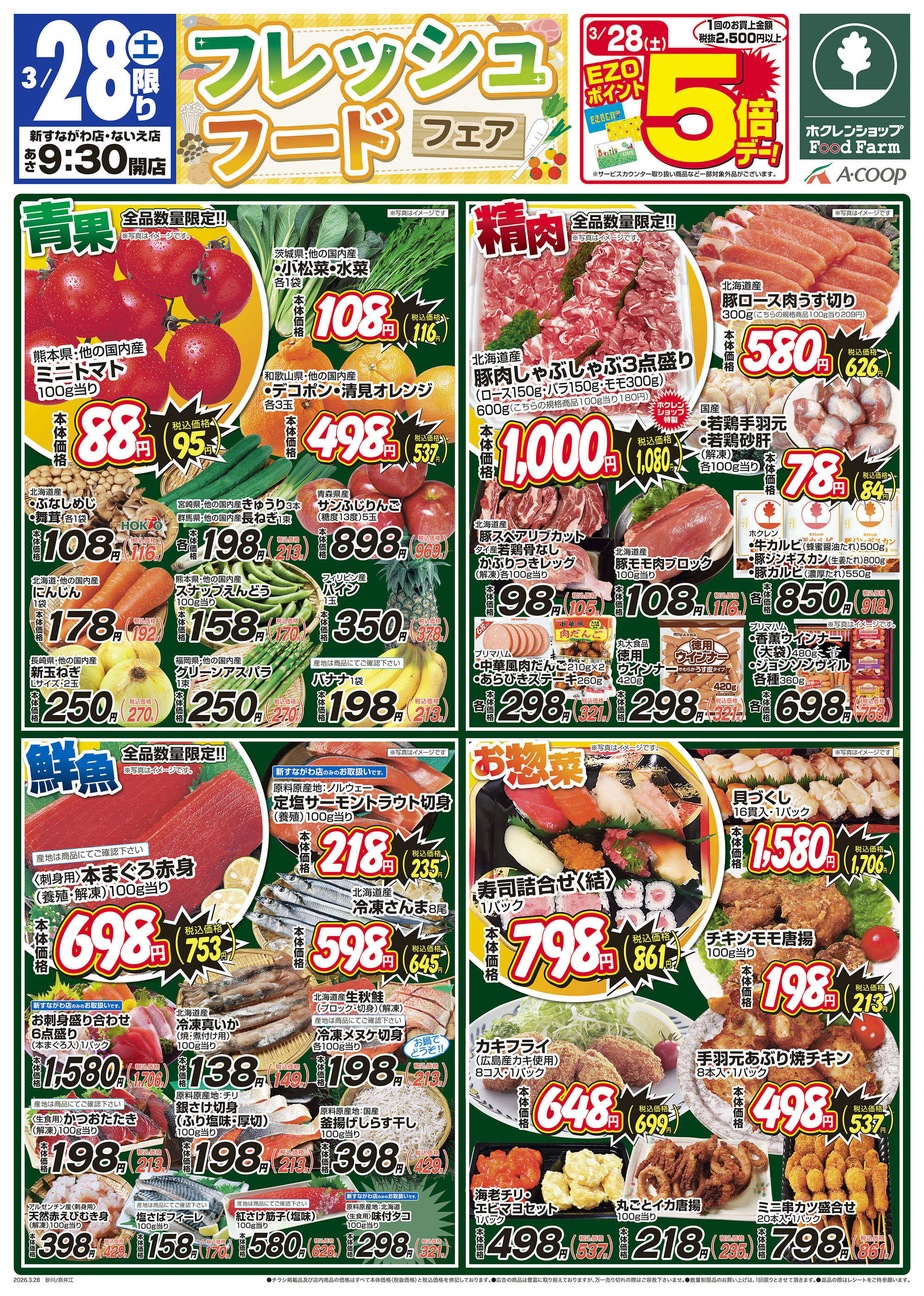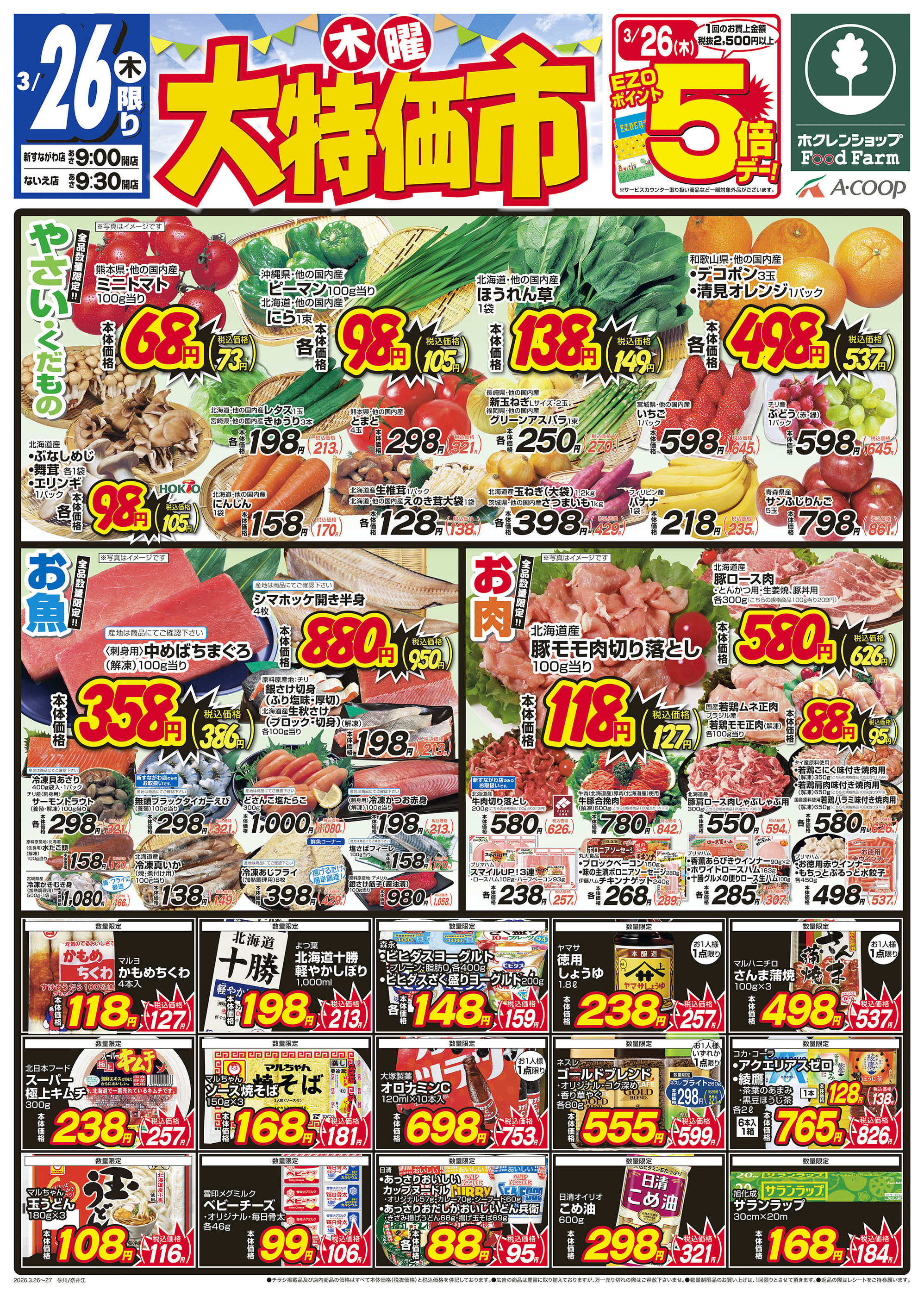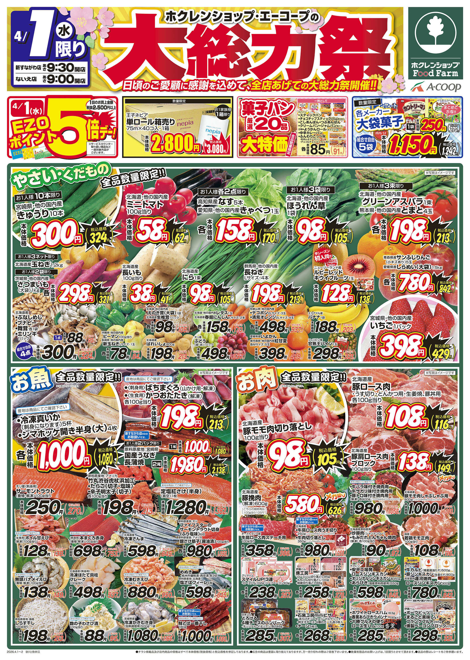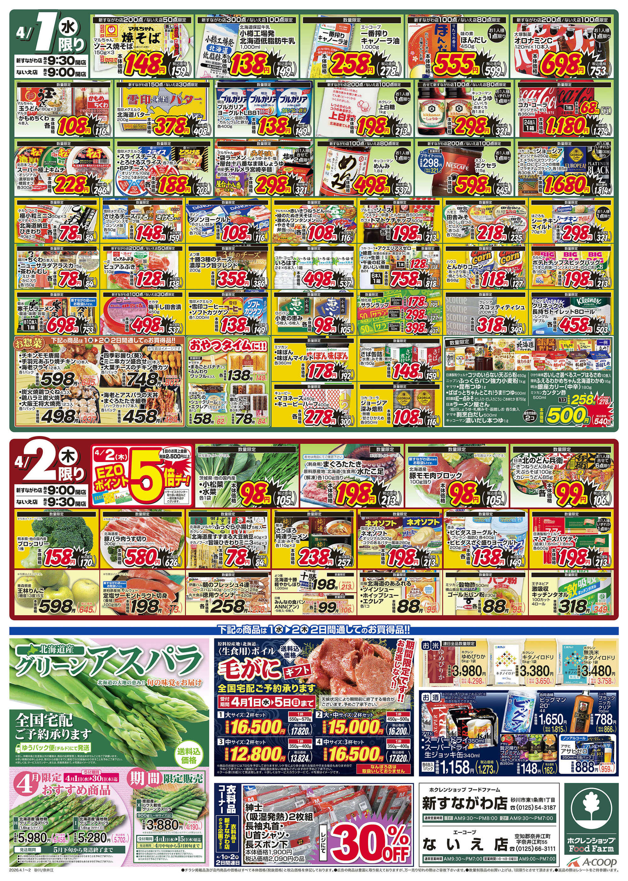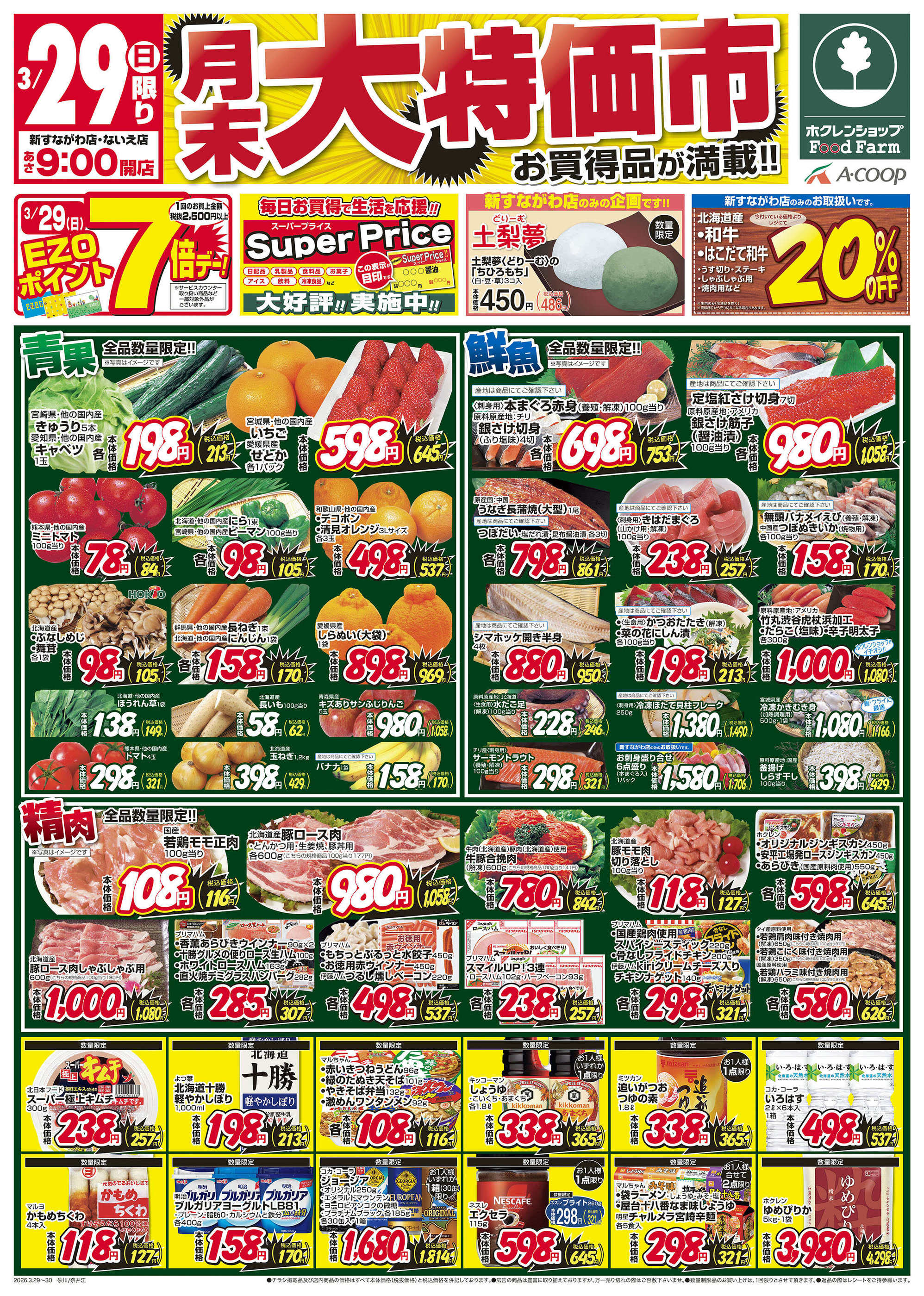 ホクレンショップFoodFarm新すながわ店今週のチラシ(2026年3月30日〜4月5日)