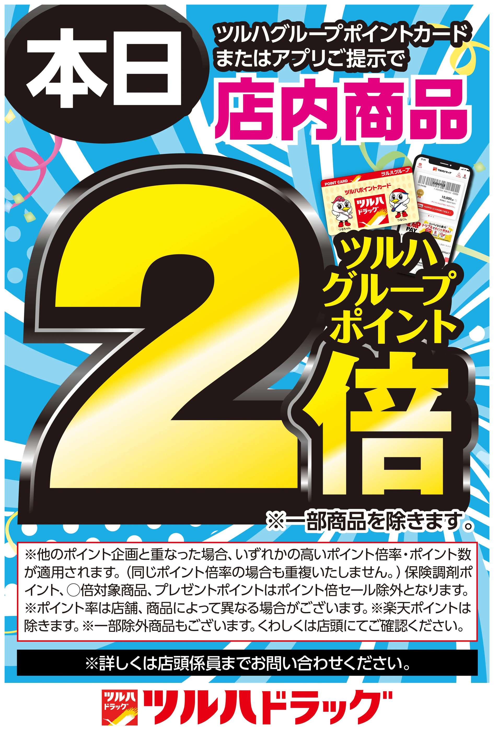 - ツルハグループポイントカードまたはアプリご提示でツルハグループポイント2倍!2月15日~2月15日new (1枚)