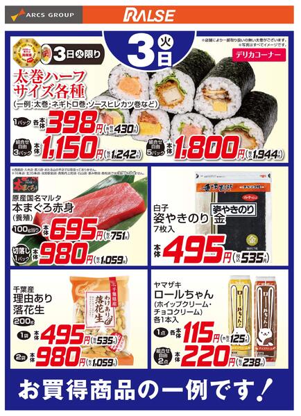 ※「店舗の掲載内容について」チラシガイドに掲載している情報は、独自に調査した内容及びユーザーから頂いた情報を掲載しています。お気づきの点がございましたら「お問い合わせ」よりご連絡ください。また店舗の営業状況、商品に関するお問い合わせは直接店舗事業者にご確認ください。
