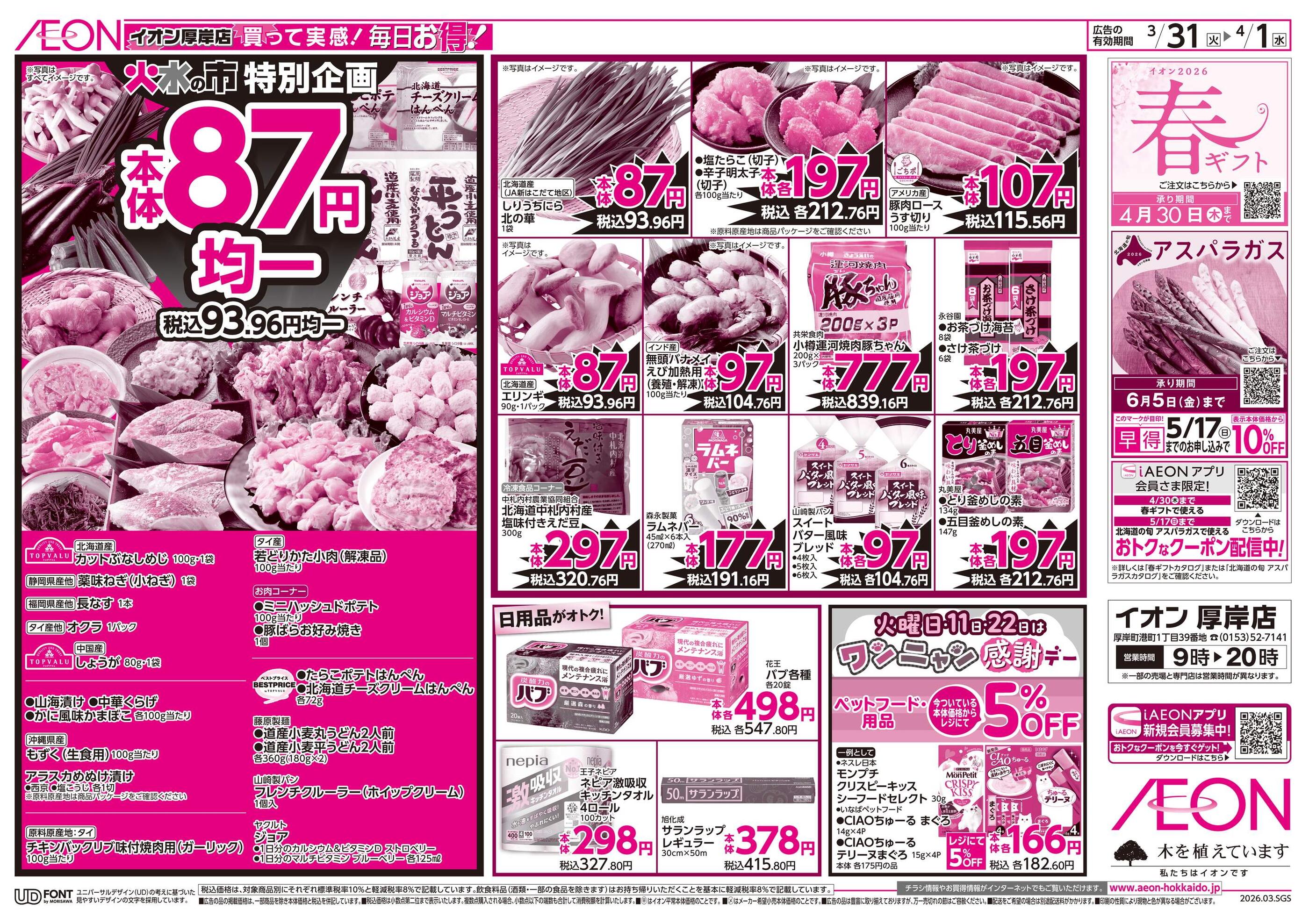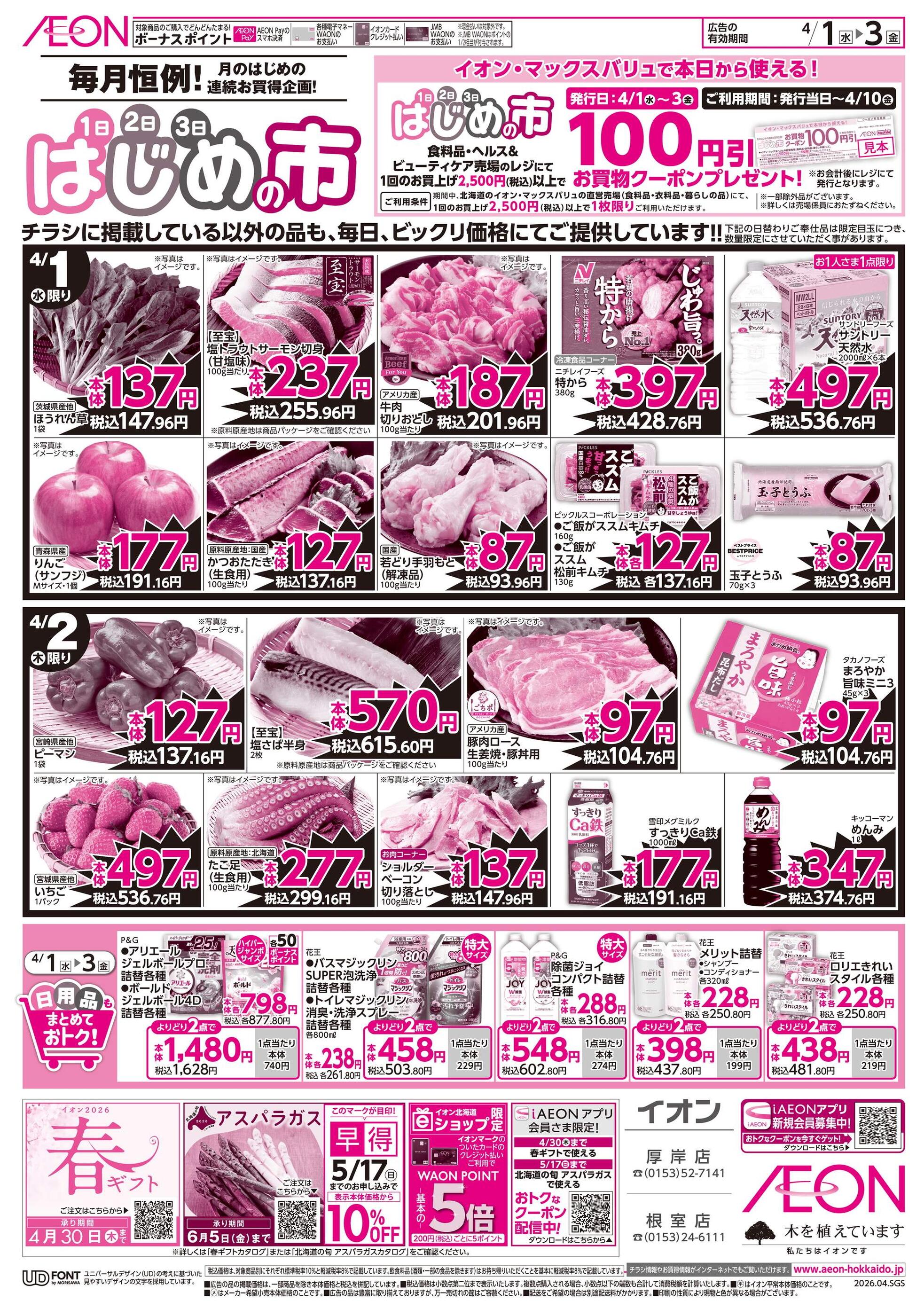 イオン厚岸店今週のチラシ(2026年3月30日〜4月5日)