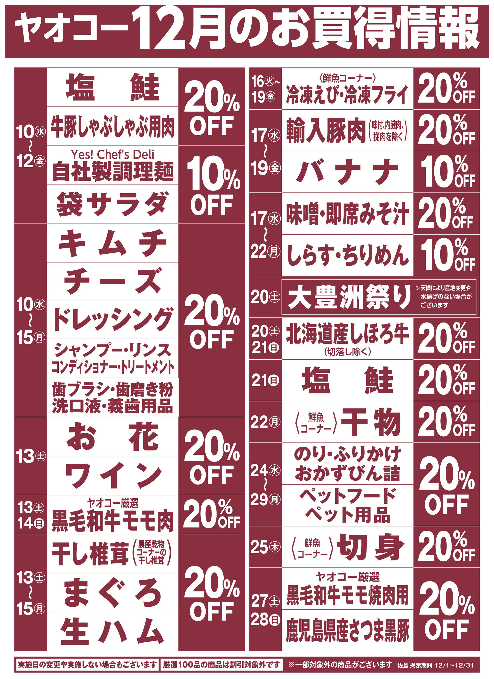 ヤオコー佐倉染井野店今週のチラシ(2025年12月29日〜1月4日)