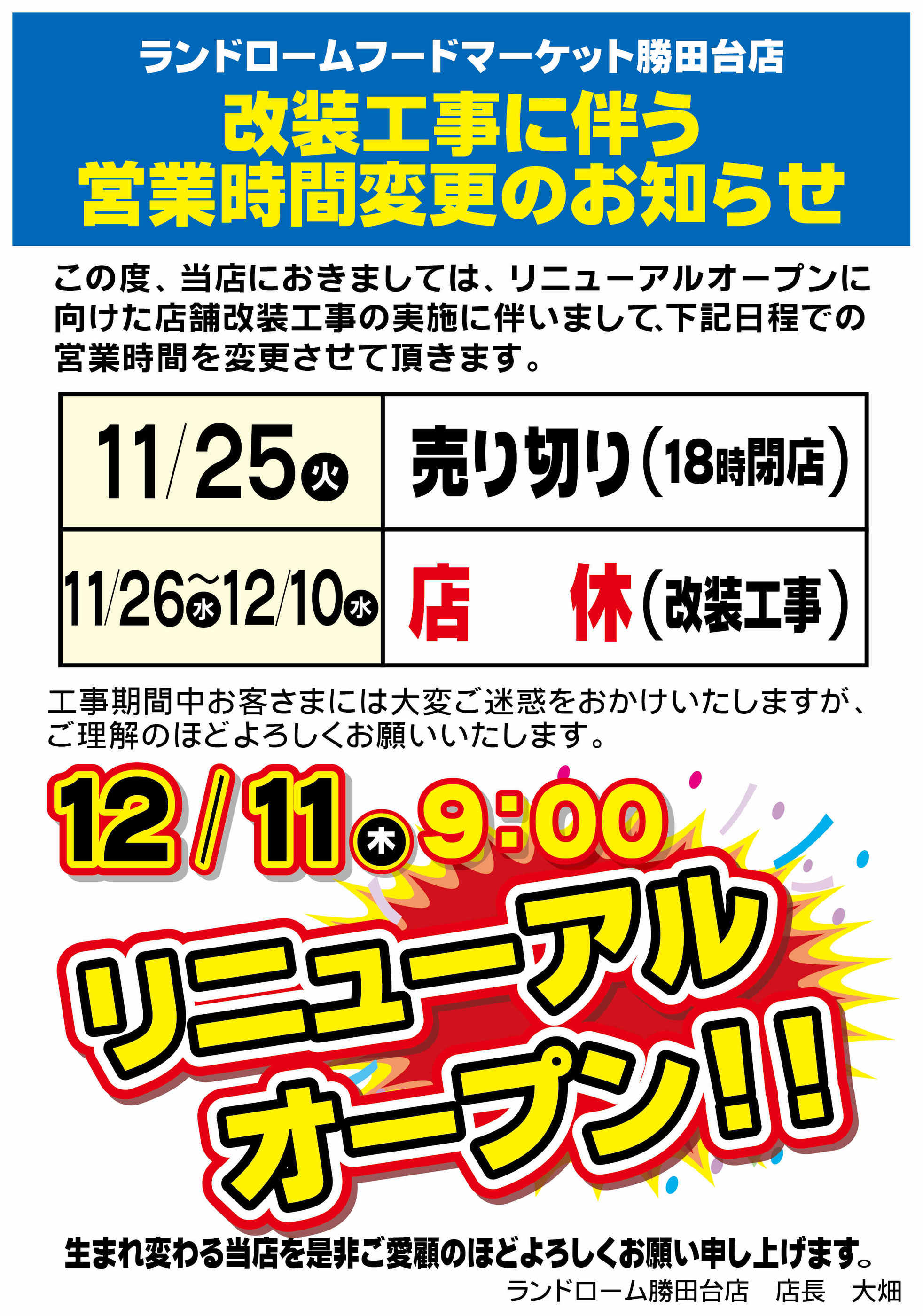 - 2025年10月30日〜12月10日まで改装工事の伴う営業時間変更のお知らせ (1枚)