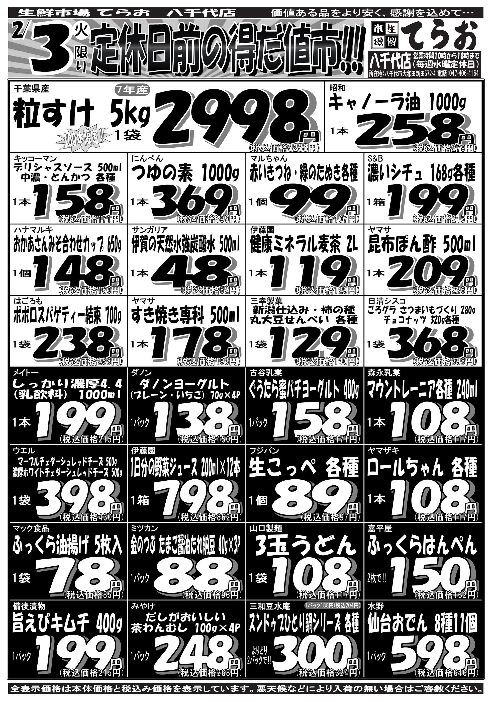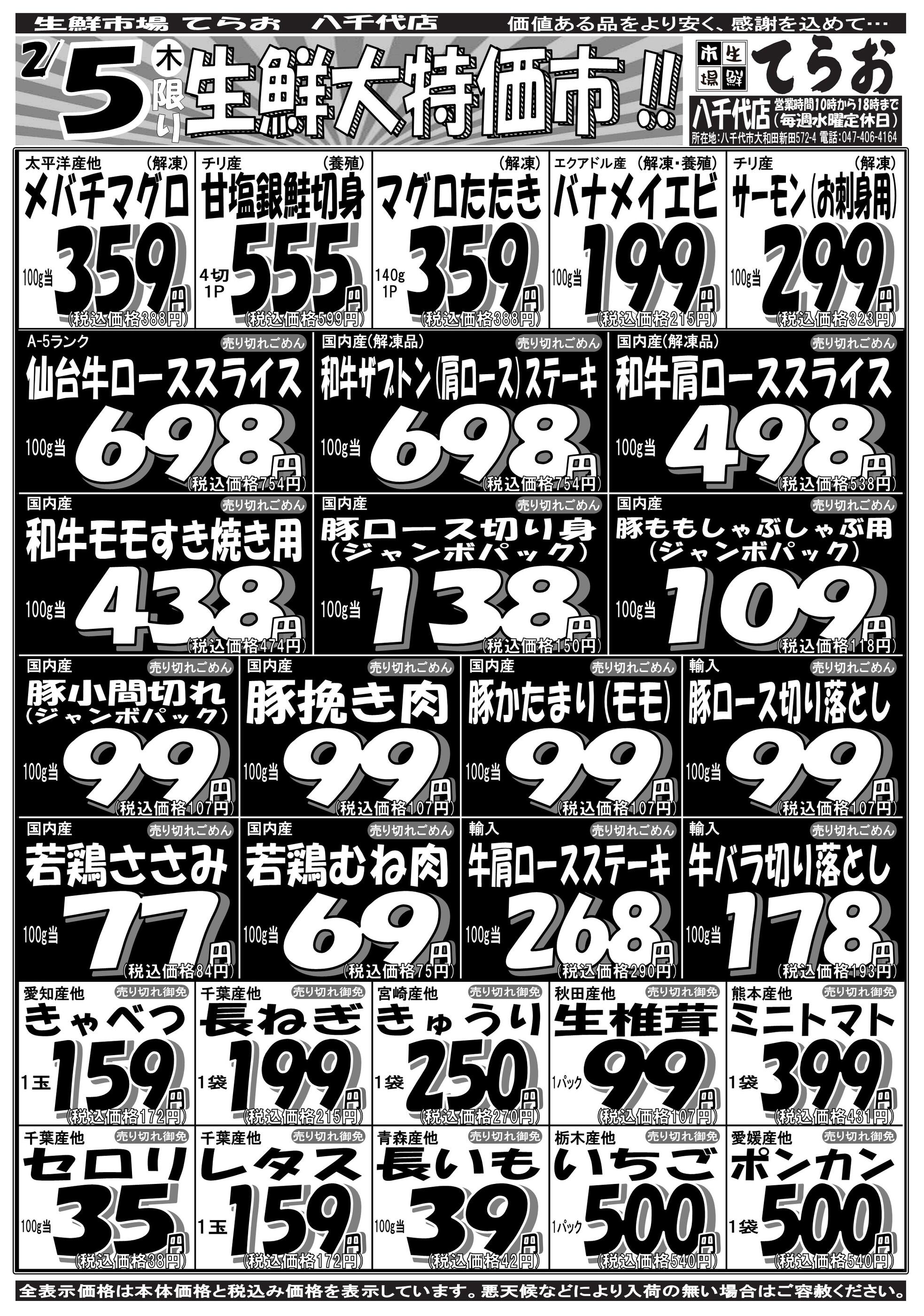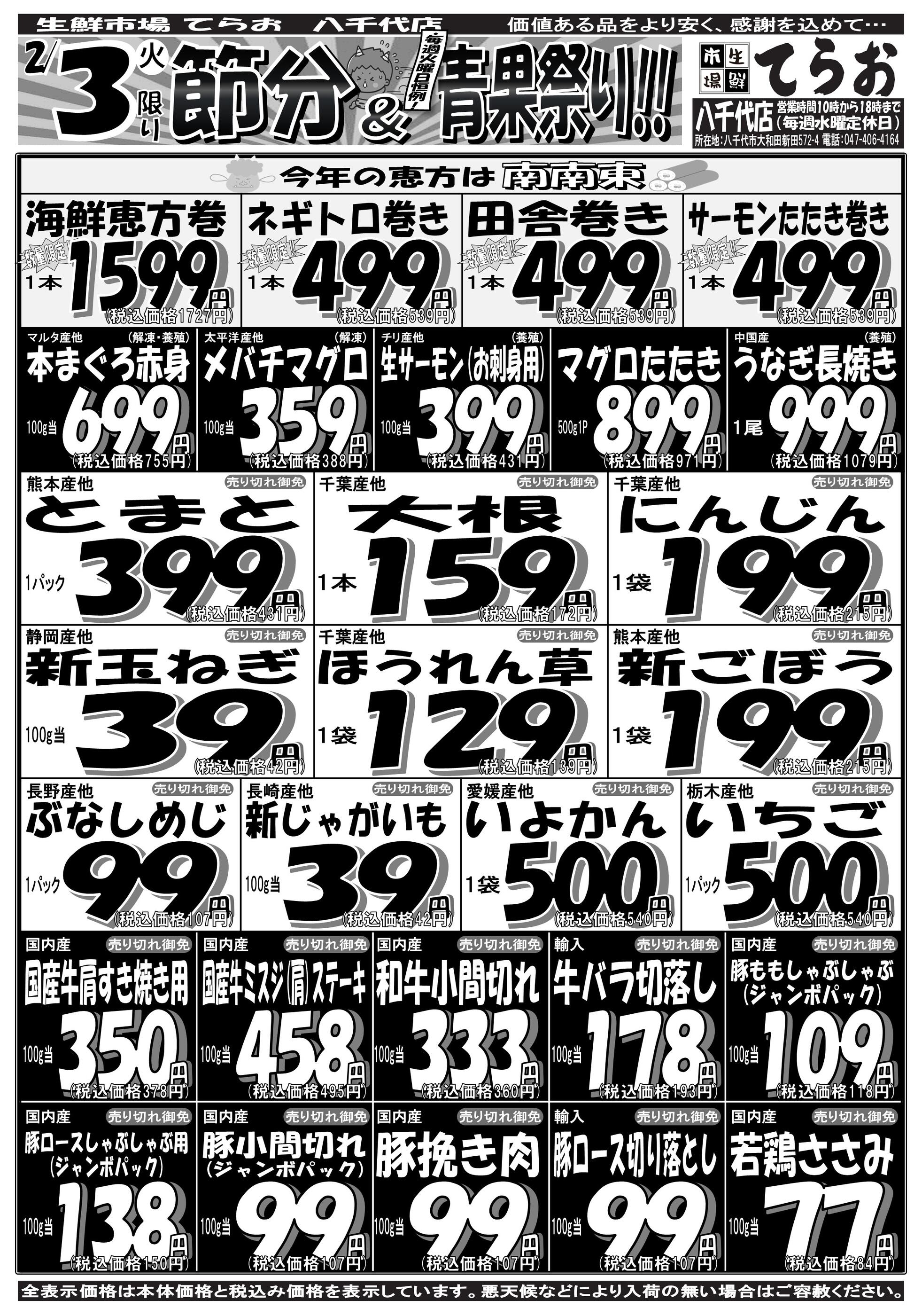 生鮮市場てらお八千代店今週のチラシ(2026年2月2日〜2月8日)