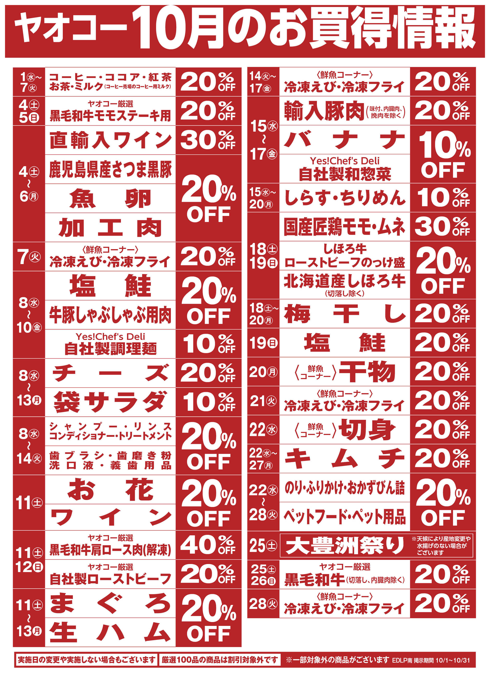 ヤオコー八千代緑が丘店今週のチラシ(2025年9月29日〜10月5日)