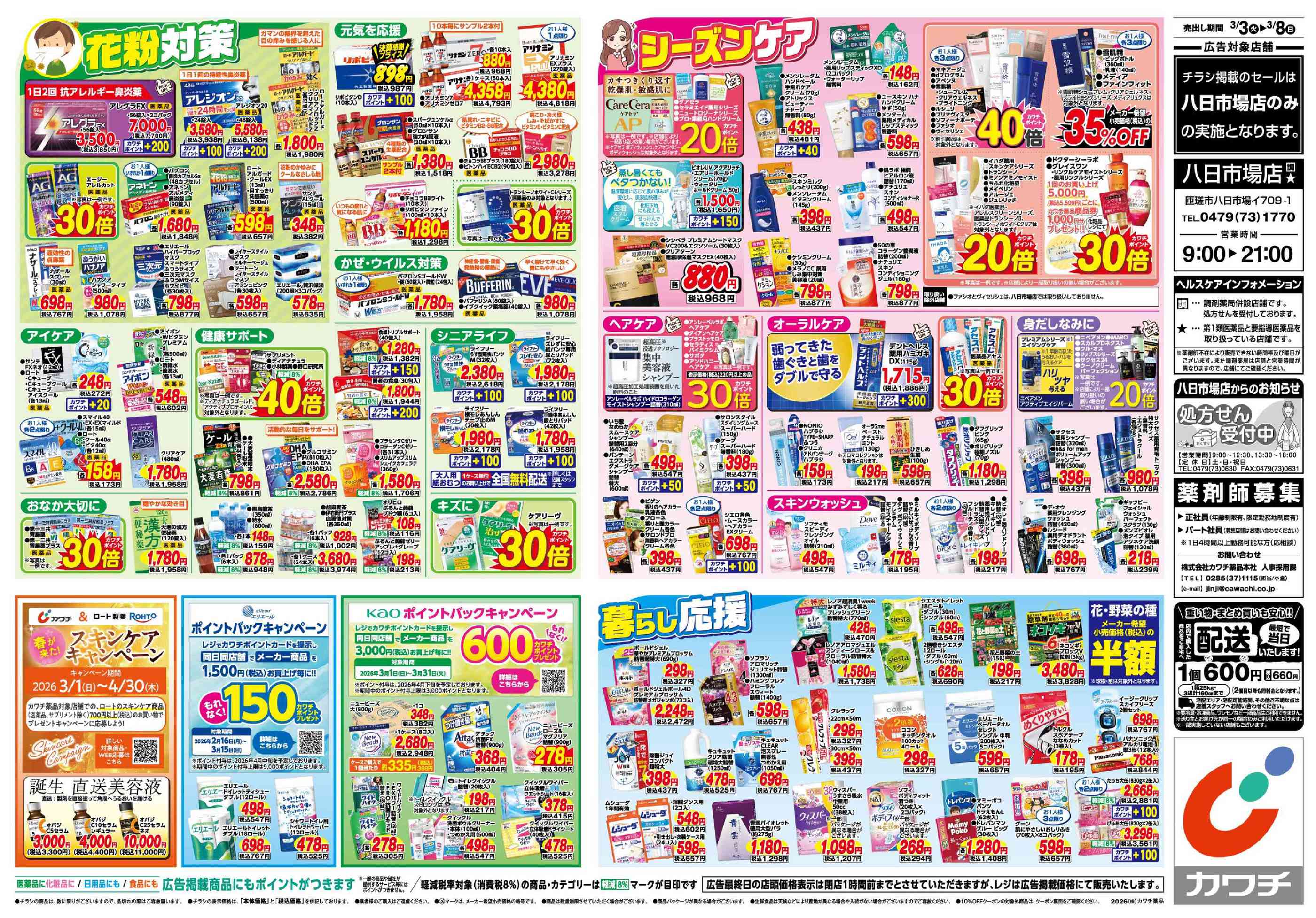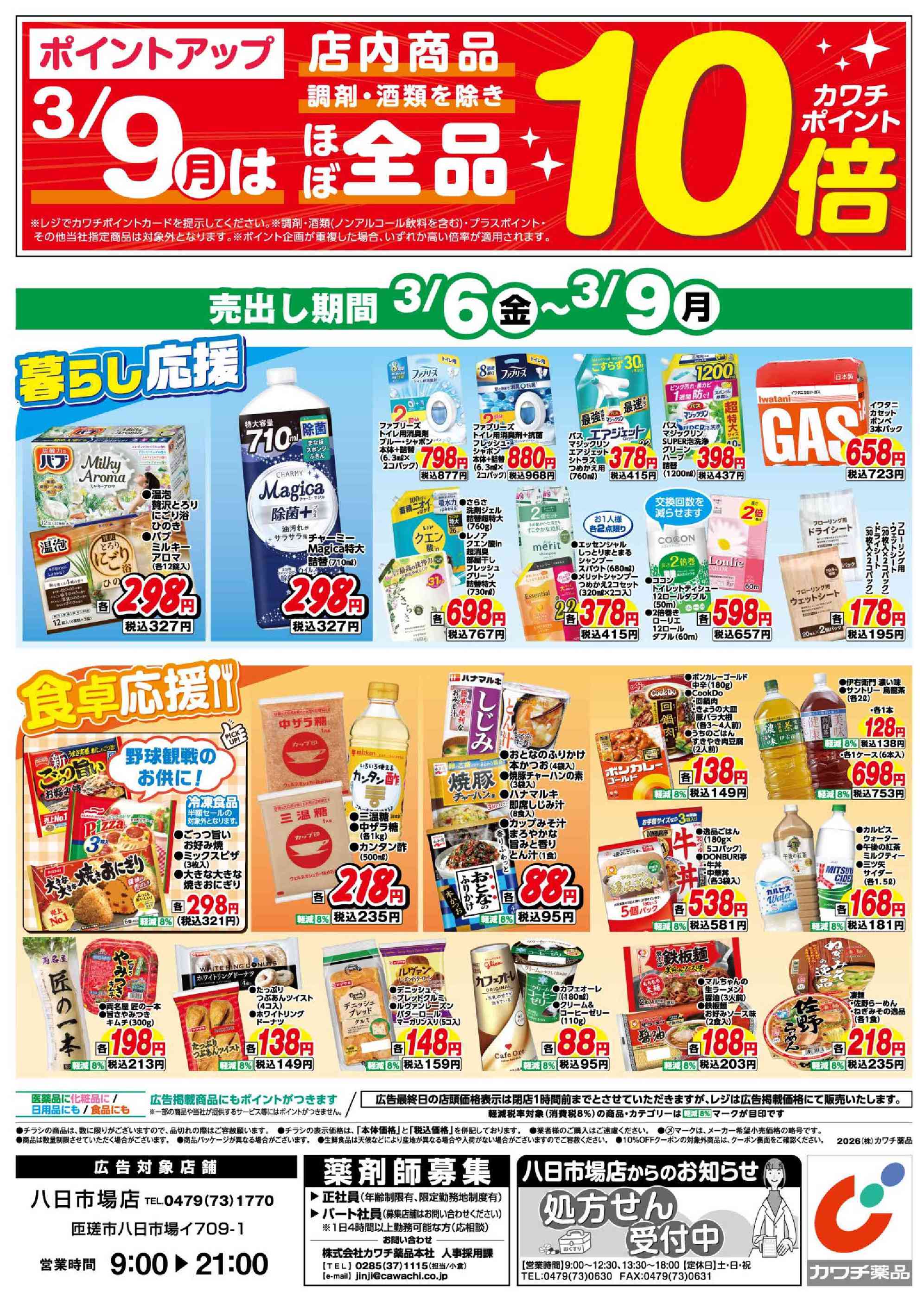 カワチ薬品八日市場店今週のチラシ(2026年3月9日〜3月15日)