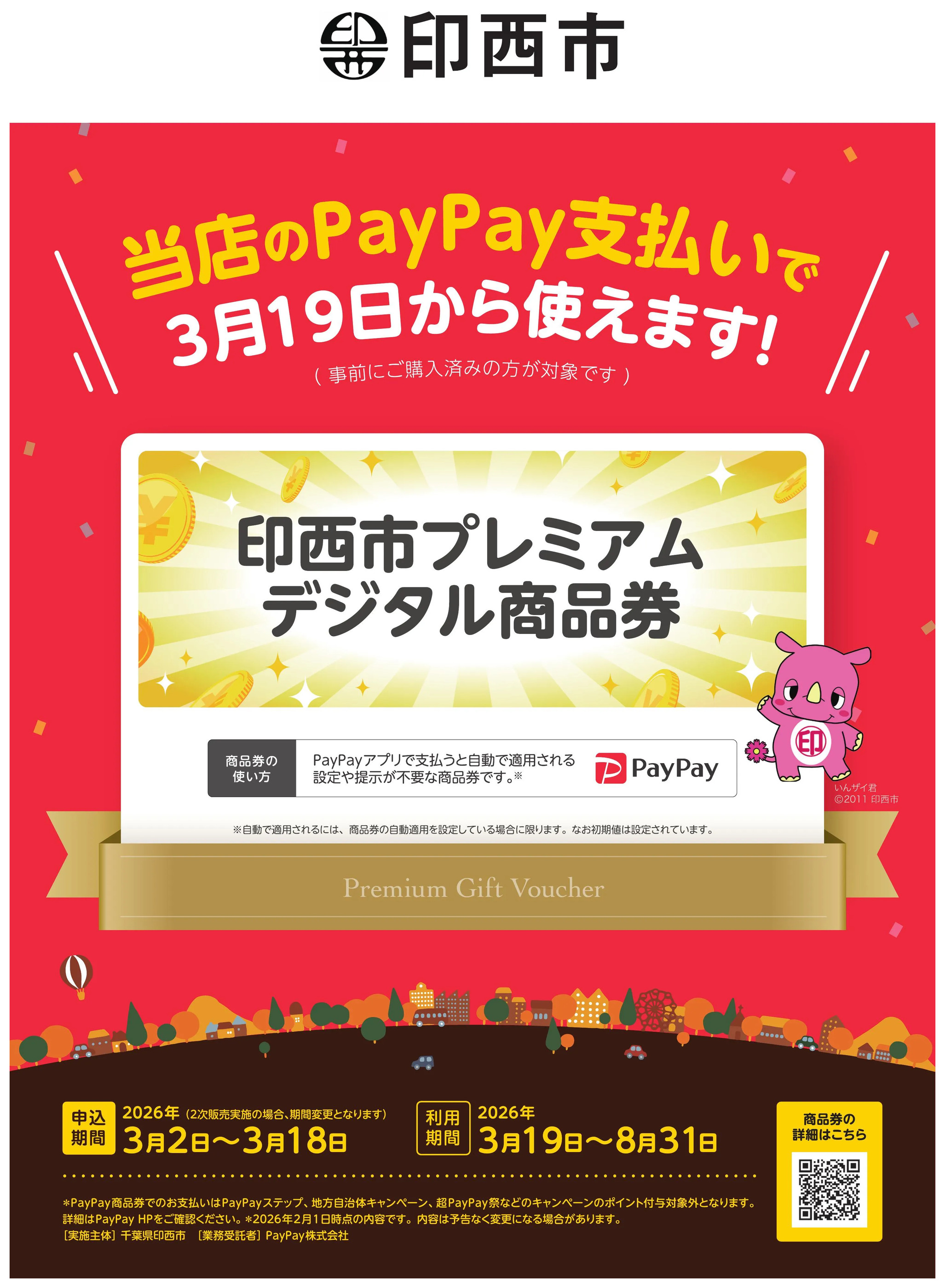 - 印西市プレミアムデジタル商品券のお知らせ3月24日~8月31日 (1枚)
