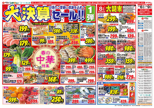 特売やセール情報など最新のチラシを掲載中。(3種類、5枚のチラシを掲載しています)