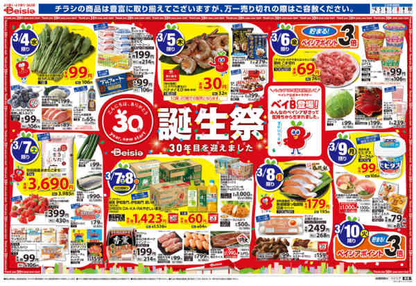 特売やセール情報など最新のチラシを掲載中。(3種類、6枚のチラシを掲載しています)