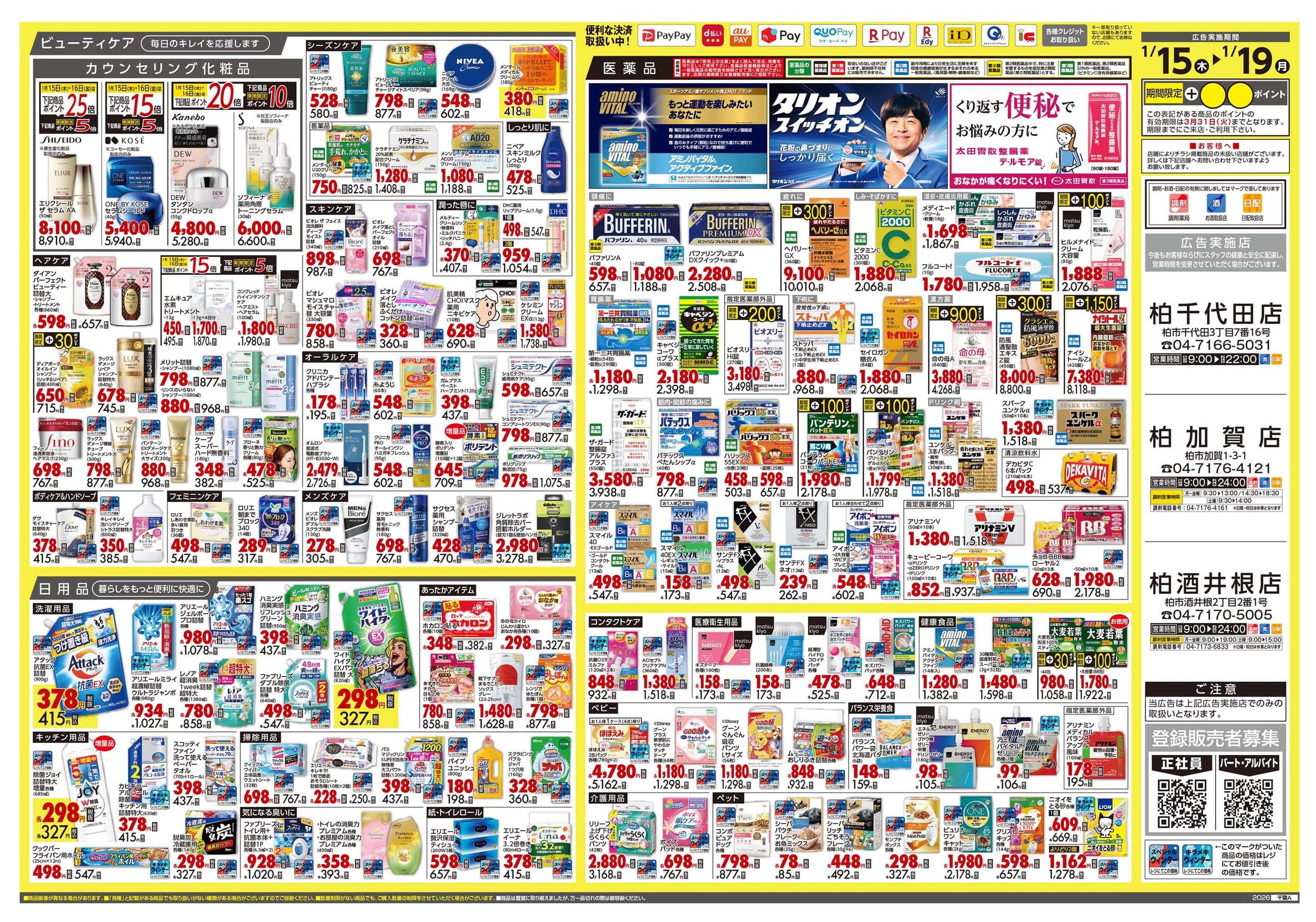 ドラッグストアマツモトキヨシ柏加賀店今週のチラシ(2026年1月12日〜1月18日)