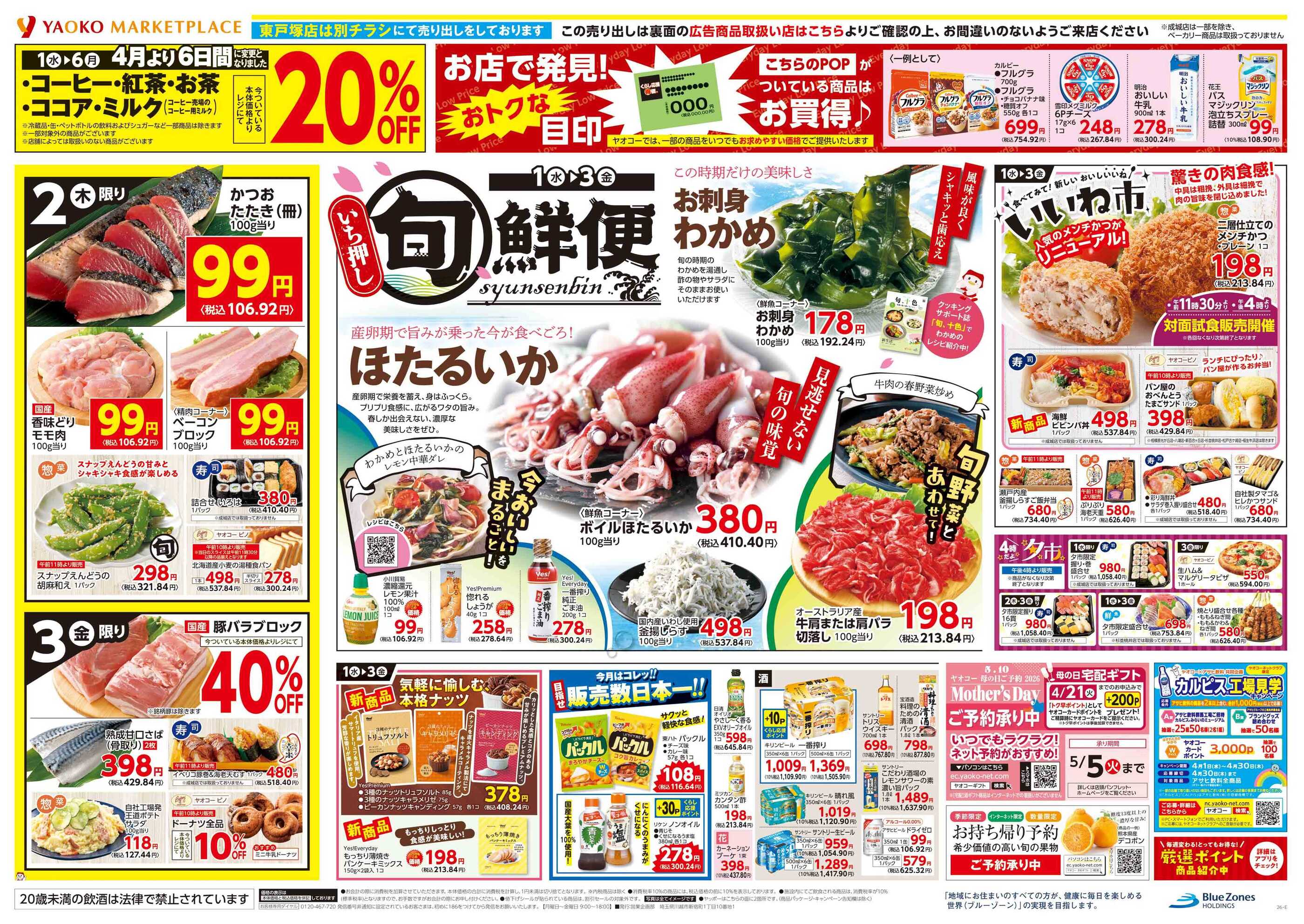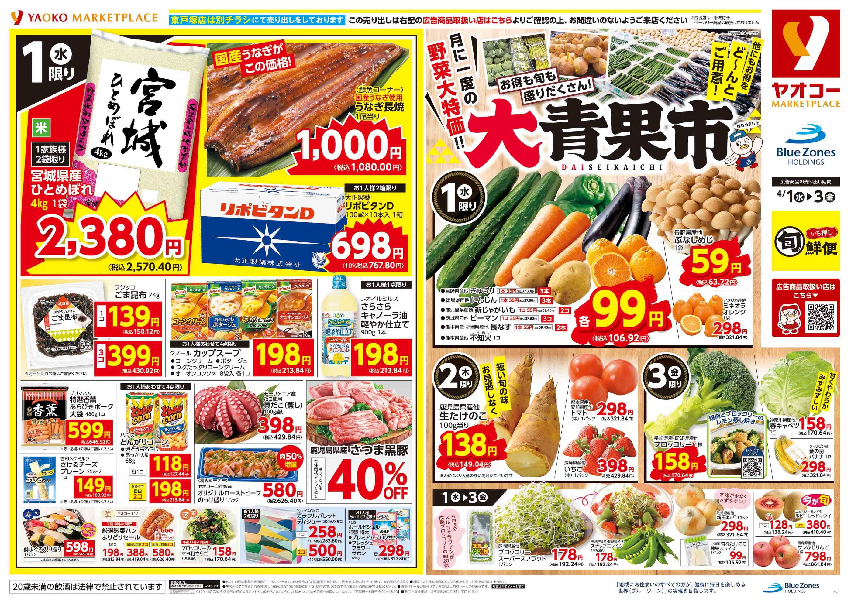 ヤオコー船橋三山店今週のチラシ(2026年3月30日〜4月5日)