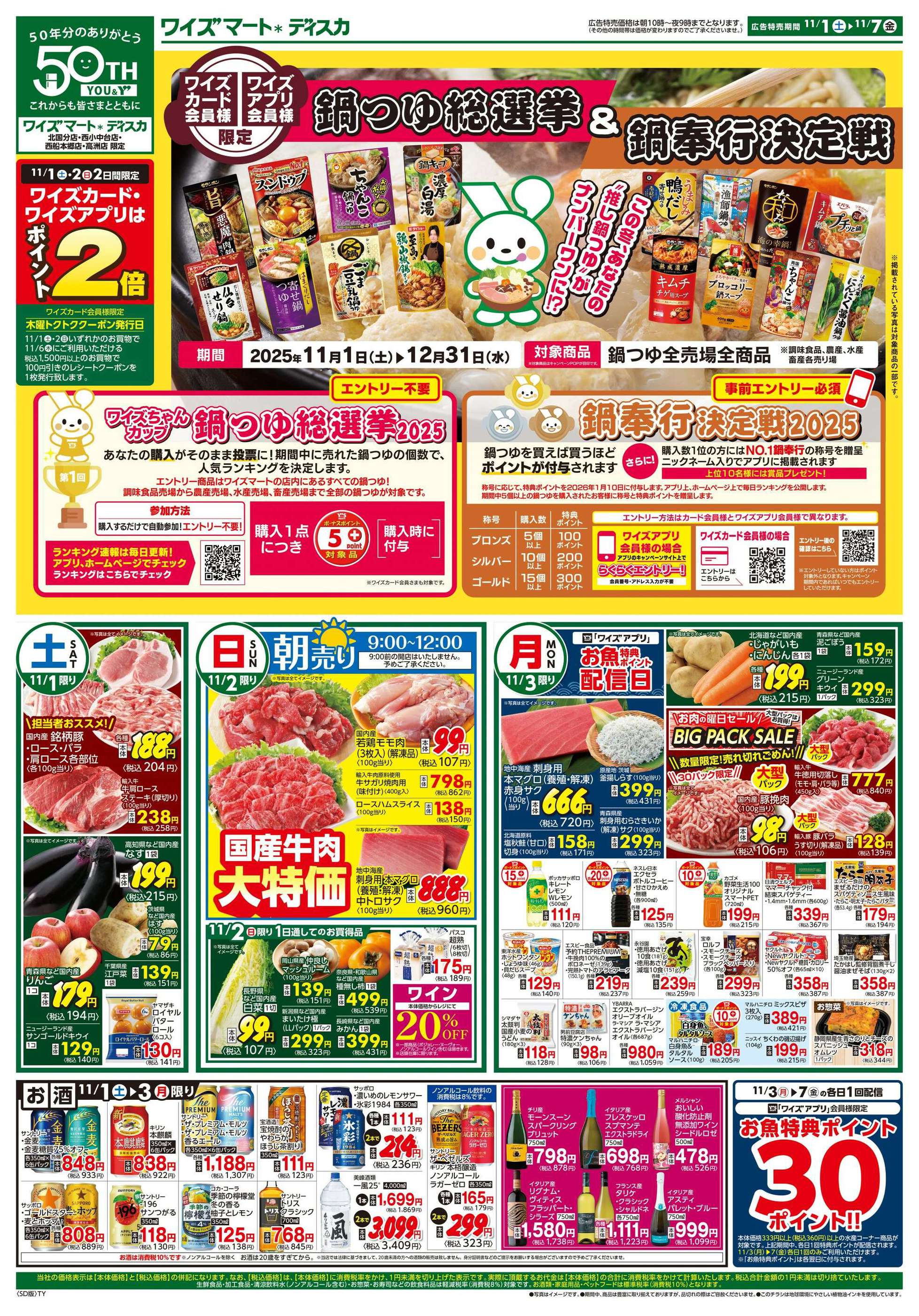 ワイズマートディスカ西船本郷店今週のチラシ(2025年11月3日〜11月9日)