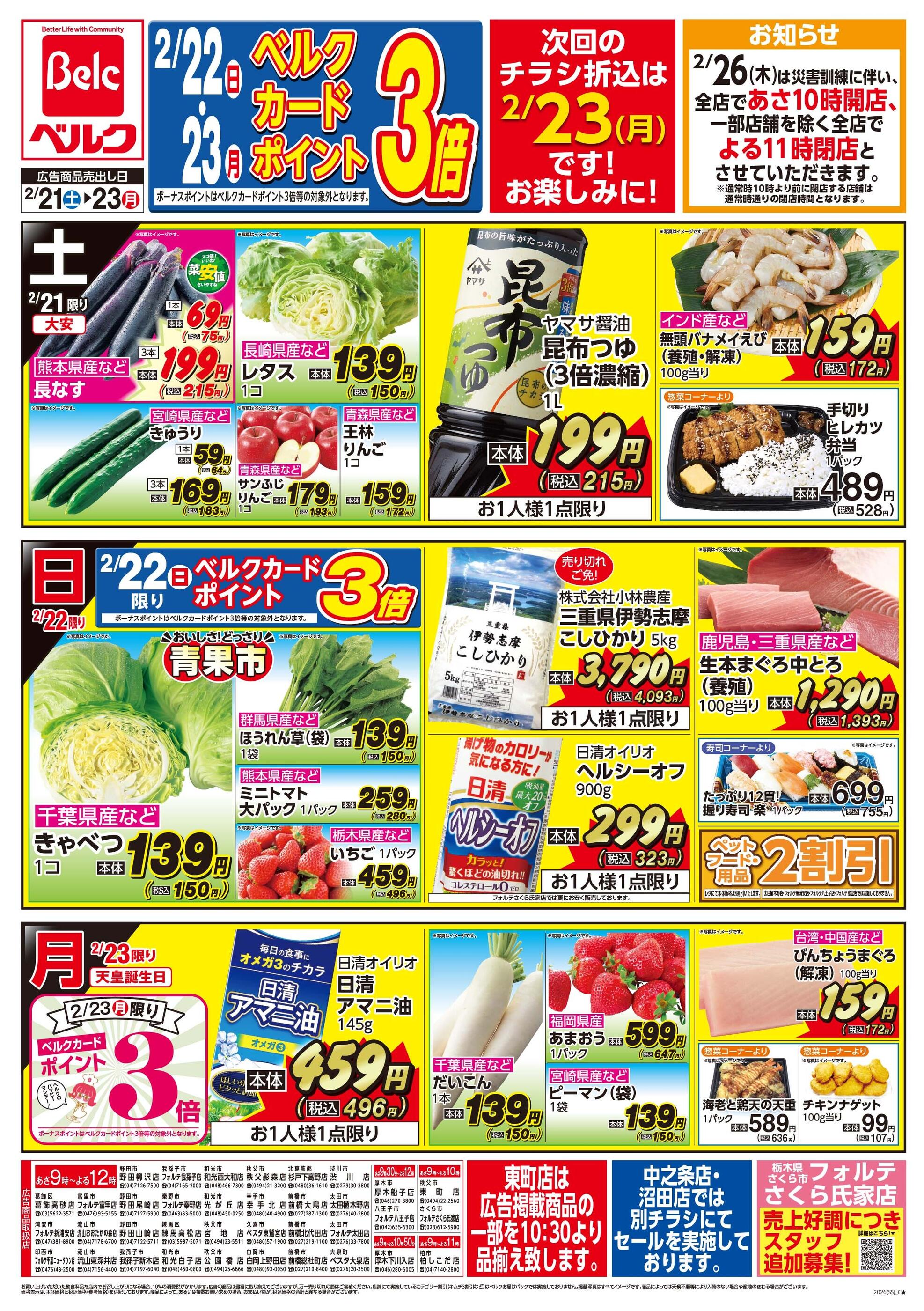 ベルク野田柳沢店今週のチラシ(2026年2月16日〜2月22日)