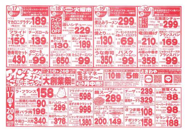 ※「店舗の掲載内容について」チラシガイドに掲載している情報は、独自に調査した内容及びユーザーから頂いた情報を掲載しています。お気づきの点がございましたら「お問い合わせ」よりご連絡ください。また店舗の営業状況、商品に関するお問い合わせは直接店舗事業者にご確認ください。