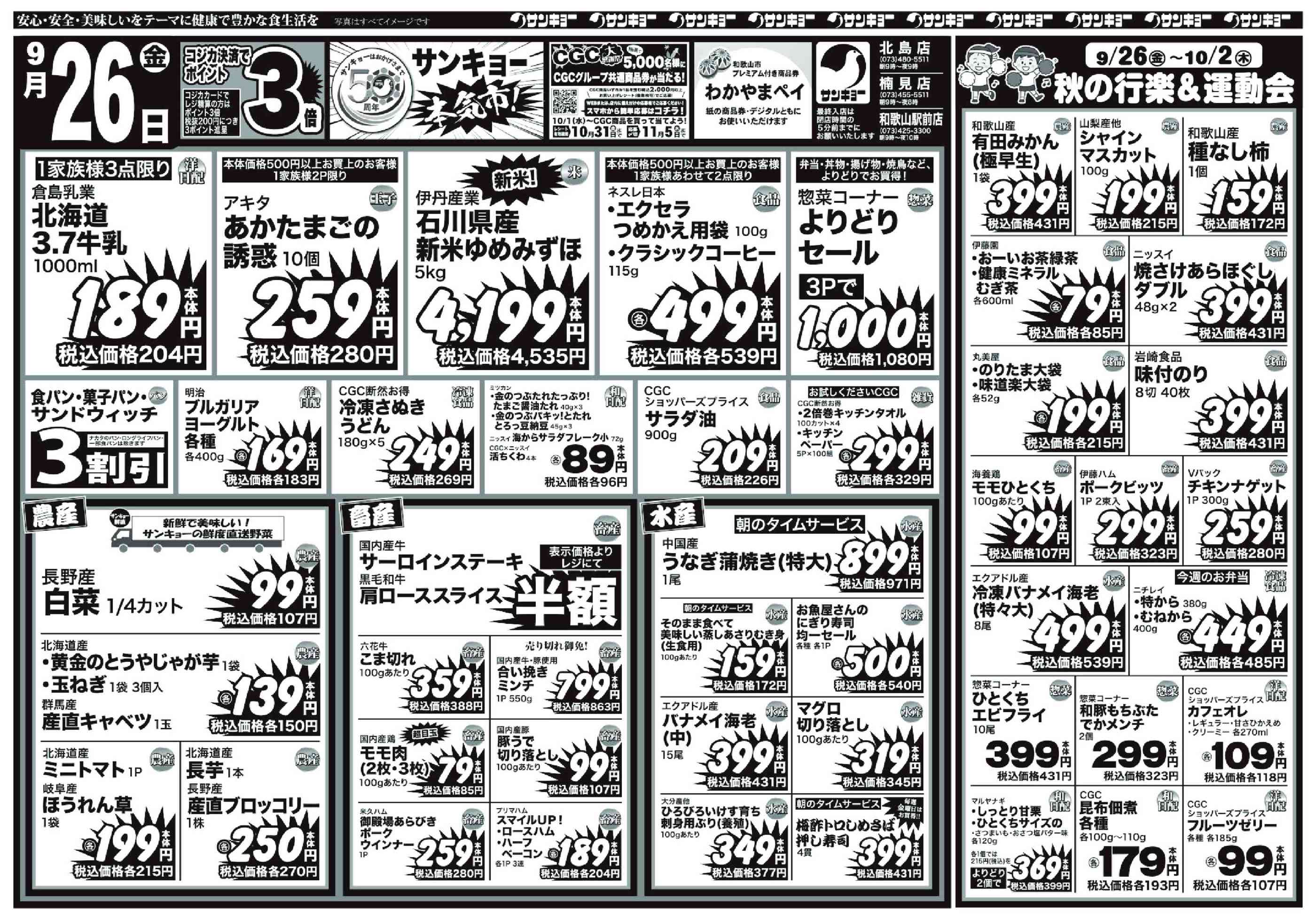 サンキョー楠見店今週のチラシ(2025年9月29日〜10月5日)