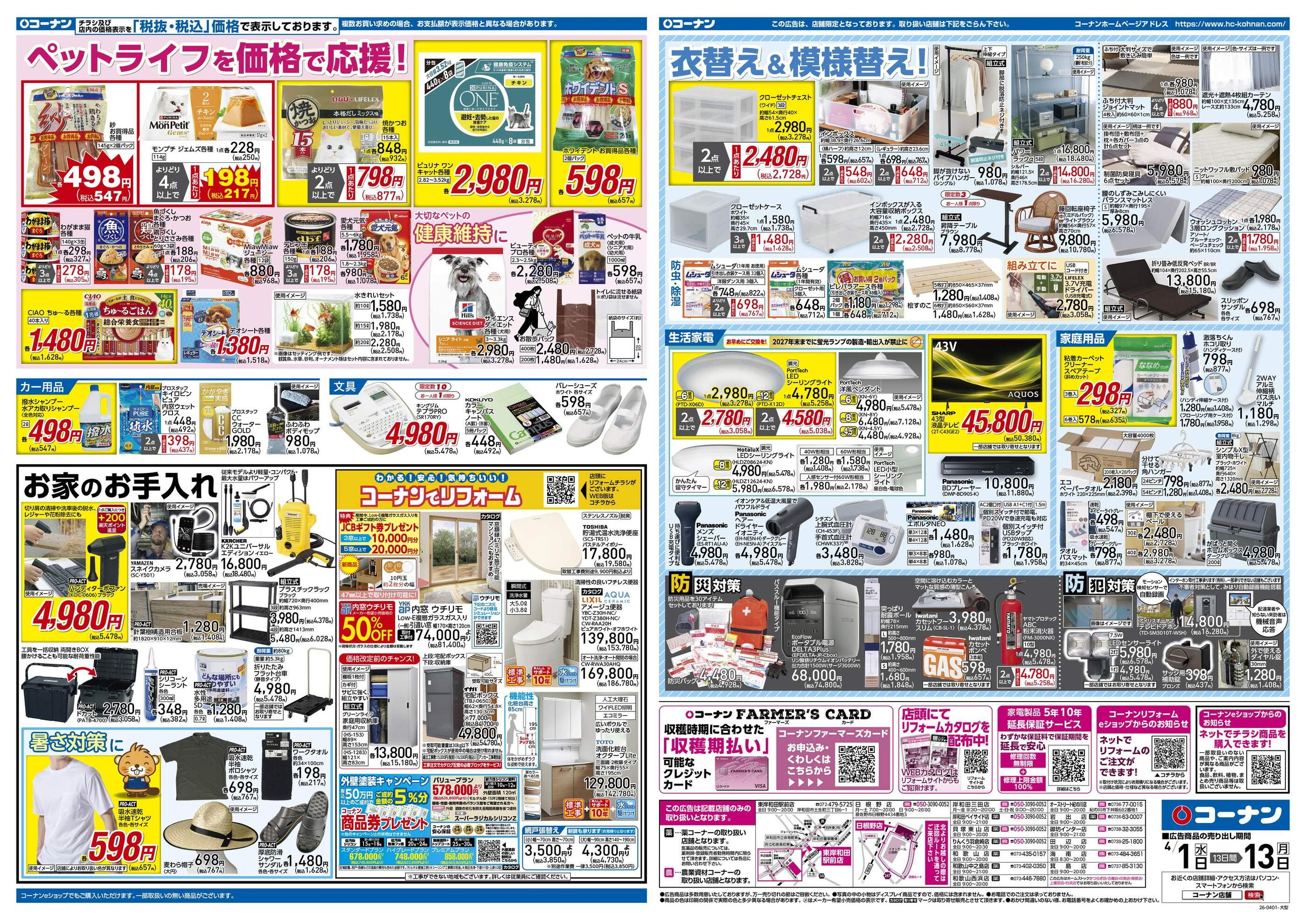 ホームセンターコーナンオーストリート紀の川店今週のチラシ(2026年3月30日〜4月5日)
