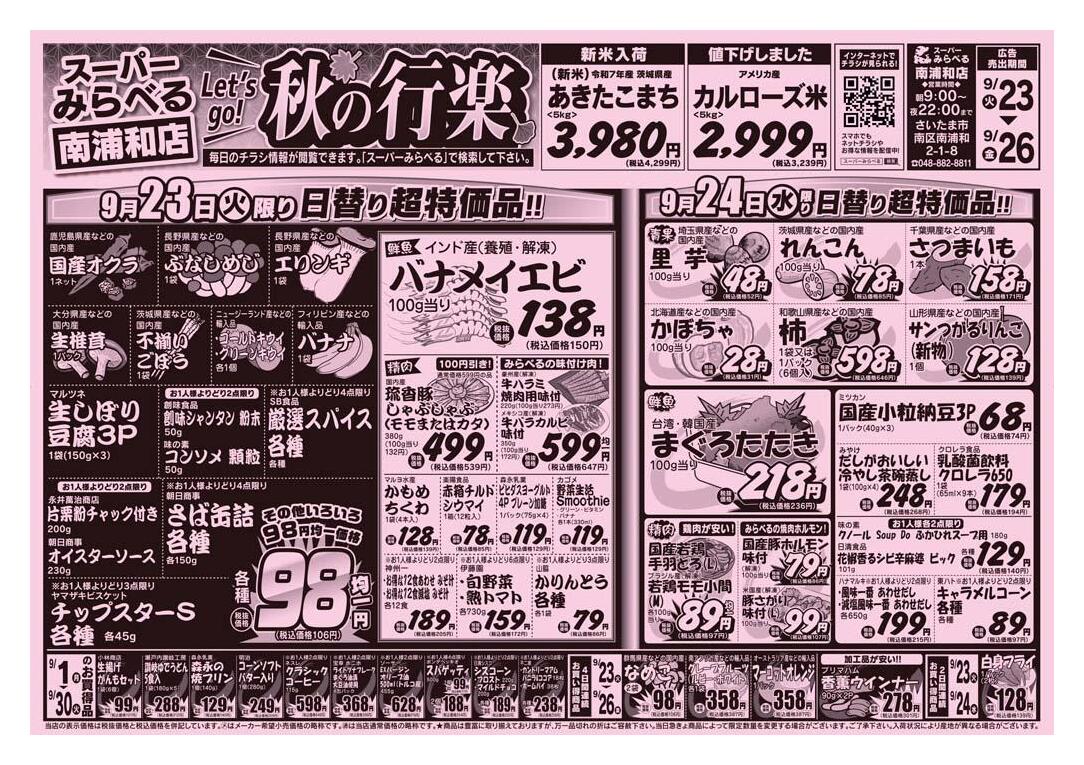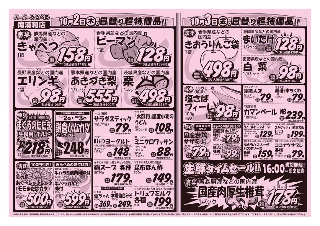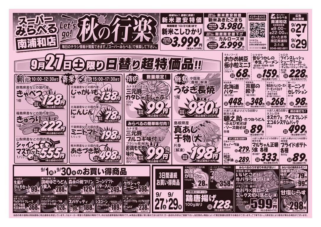スーパーみらべる南浦和店今週のチラシ(2025年9月29日〜10月5日)